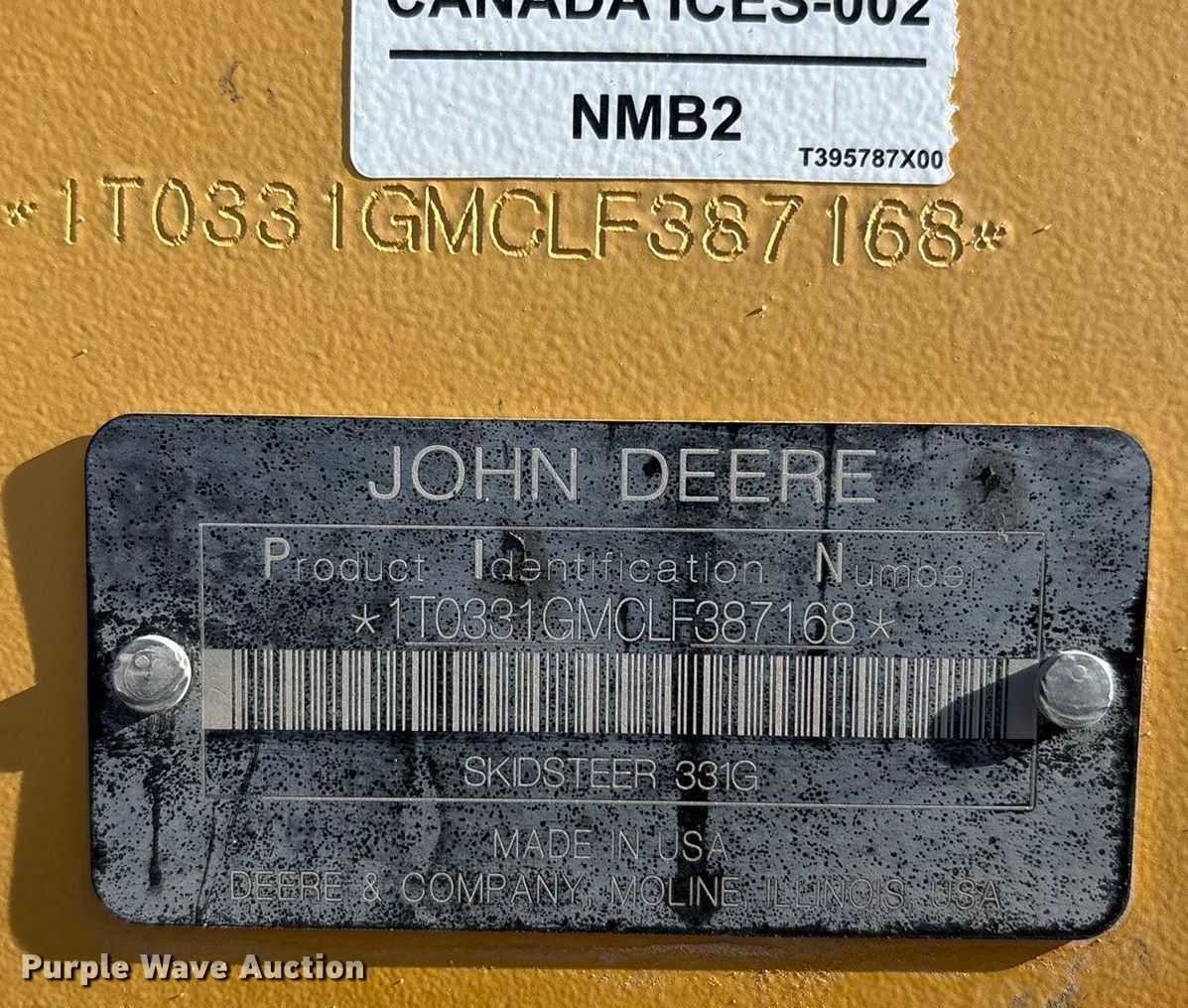 Take a look at this used 2020 John Deere 331G tracked skid steer loader being sold on December 31st, 2025 in the Wednesday December 31 Construction Equipment Auction made by John Deere. Take a look at all of the item information below or take a look at similar auctions for Skid Steer Loaders.