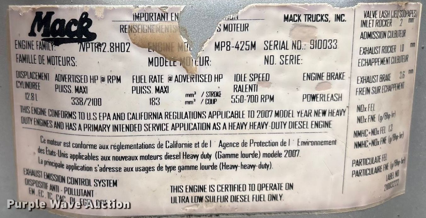 Take a look at this used 2008 Mack GU713 dump truck being sold on December 31st, 2025 in the Wednesday December 31 Construction Equipment Auction made by Mack. Take a look at all of the item information below or take a look at similar auctions for Construction Trucks.
