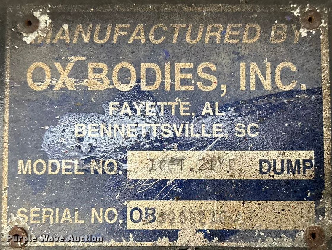 2008 Mack GU713 dump truck. Miles: 207,315 on odometer, VIN: 1M2AX09C48M003769. Engine Mack MP8-425M, Serial: 910033, Displacement: 12.7L, Cylinders: 6, Fuel type: Diesel, Engine brake. Transmission Maxitorque T310M/MLR, Manual, Speed: 10. Chassis Axles: Triple, Pusher axle, Differential lock: Inter-axle, Suspension: Camelback, Brakes: Air, PTO, GVWR: 62,000 lbs FAWR: 18,000 lbs, IAWR: 22,000 lbs, RAWR: 22,000 lbs. Interior AC, Heat, Heated mirrors, Cruise control. Features Bed Dump bed, Ox Bodies, Inc. 16FT.21YD, Serial: S208230A1, Length: 16', Width: 98", Capacity: 21 cu.yd., Side height: 61", Bed type: Steel, Bed vibrator, Roll tarp, Ram: Single, End gate: Air operated. Tires Front: 11R22.5, Rear: 11R24.5, Lift axle: 11R22.5. Notes Windshield chipped or cracked. Cherokee Nation title. Title distribution may be delayed up to 14 days from verification of funds. Crittenden Enterprises, LLC. Cookson, OK 74427