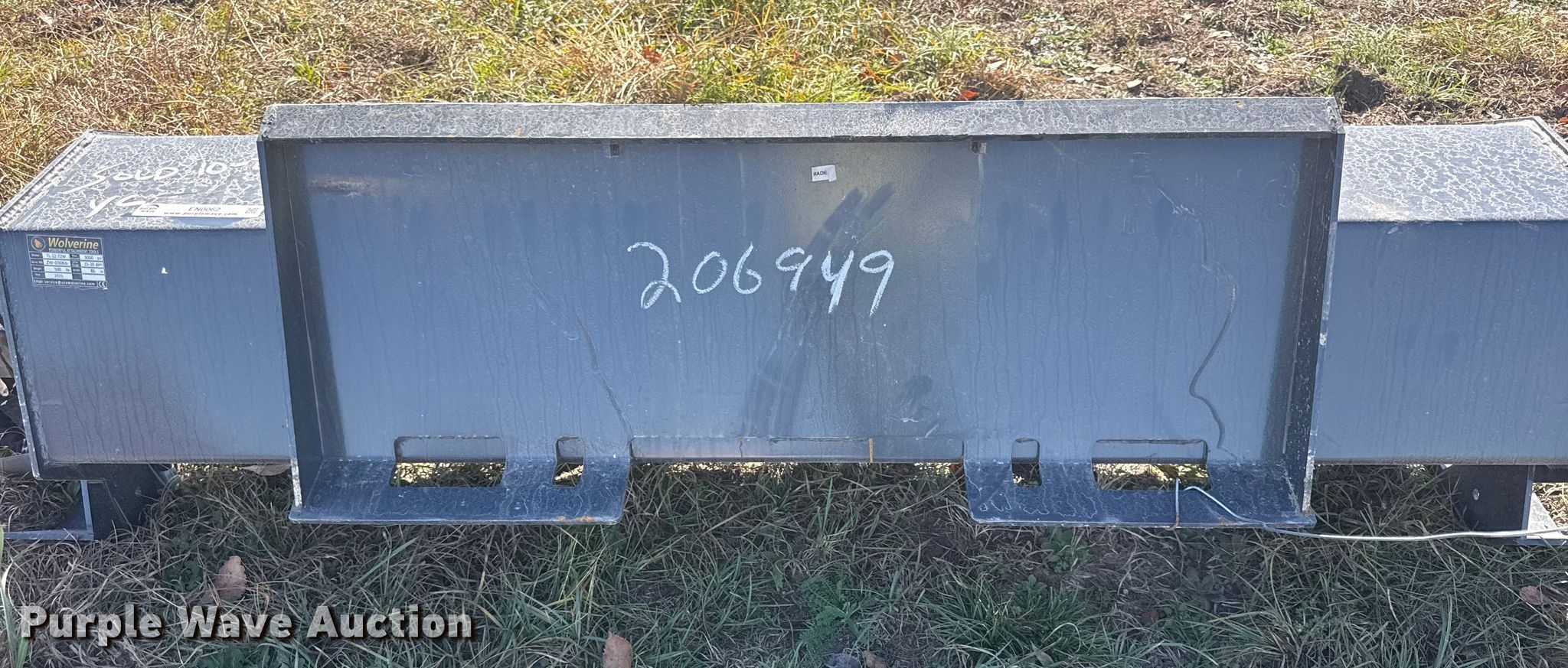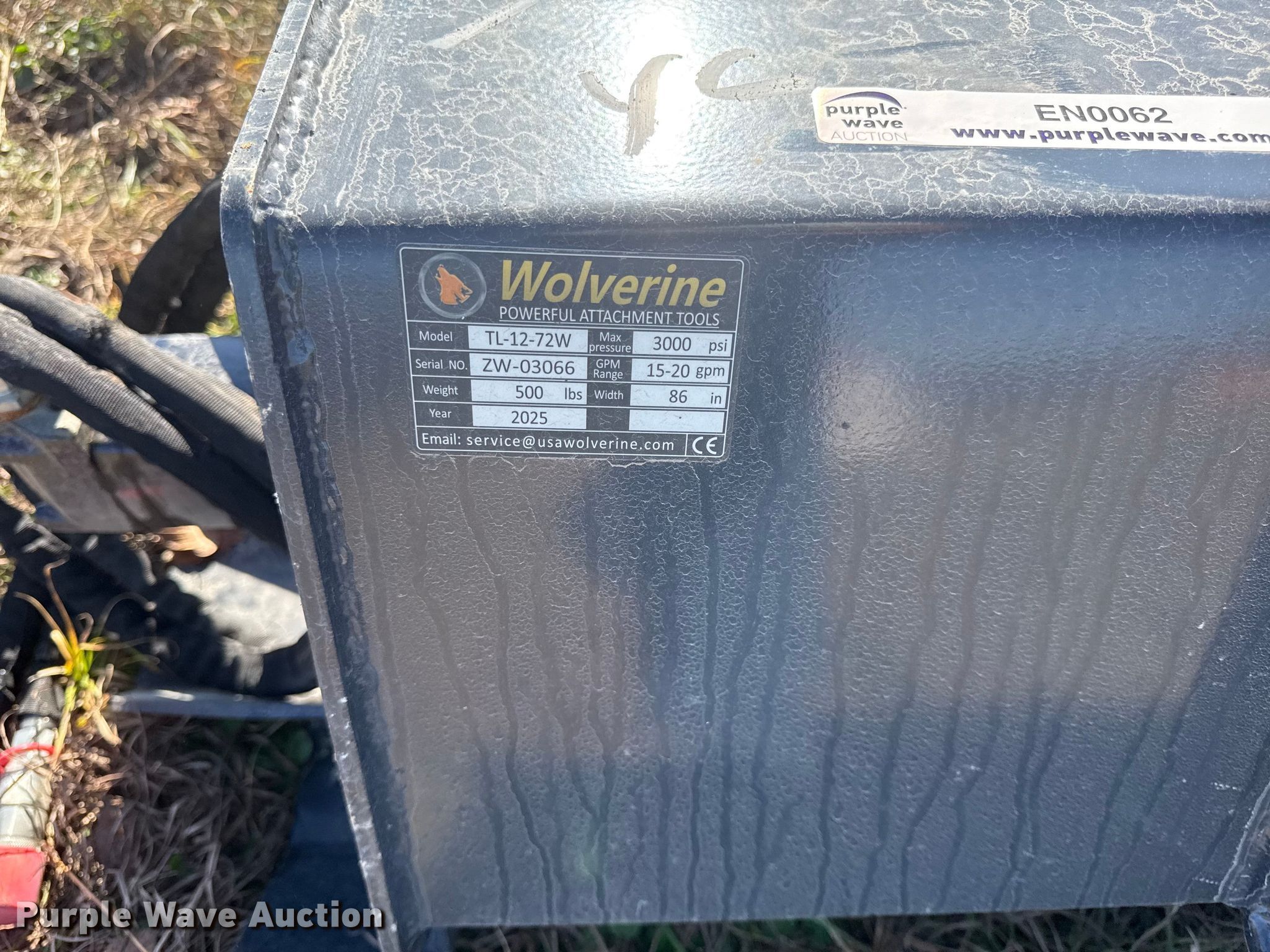Purple Wave is selling a used Skid Steer Attach. in Kansas. This item is a 2025 Wolverine TL-12-72W skid steer tiller with the following: Serial: ZW-03066, Width: 72"