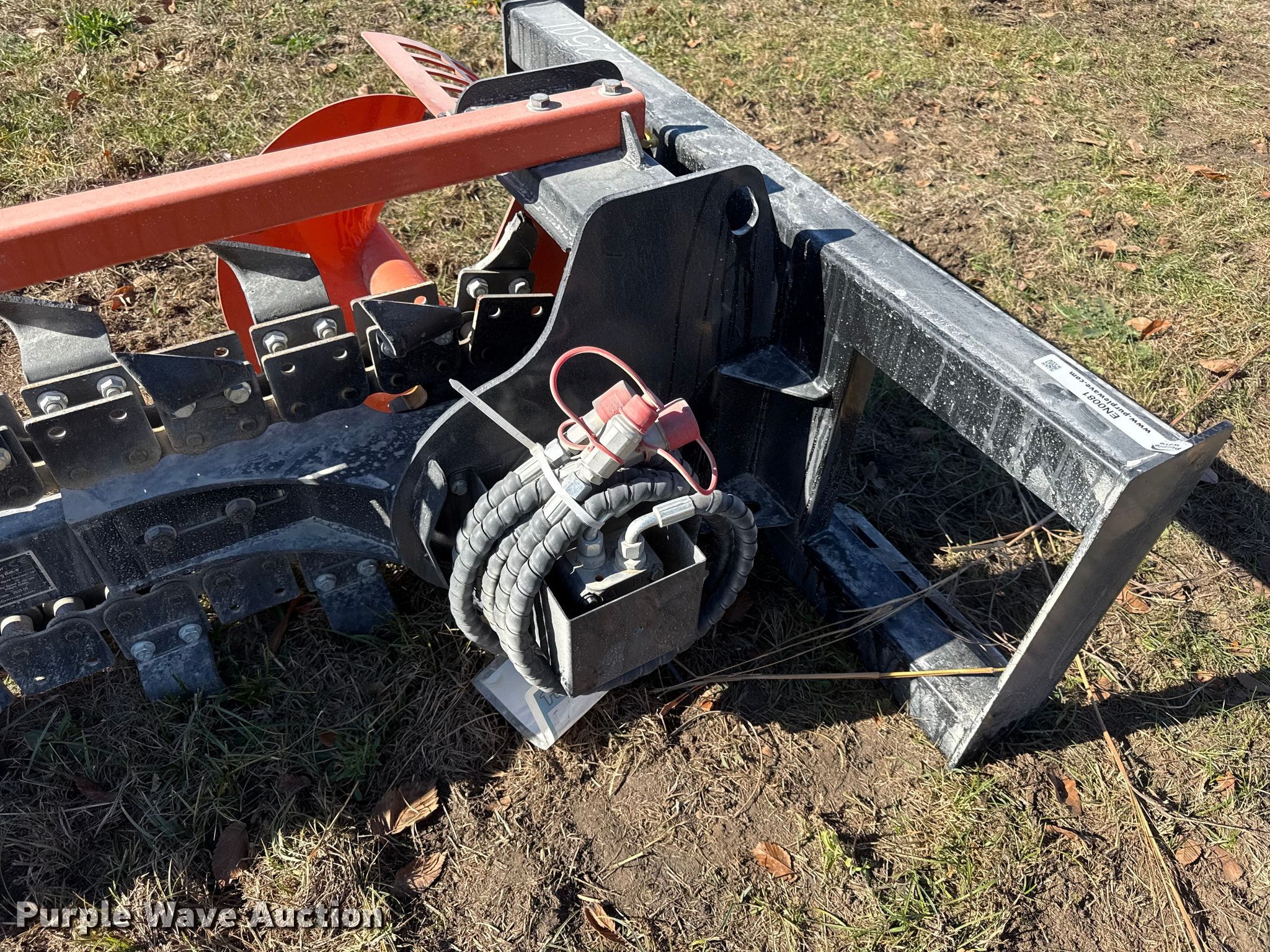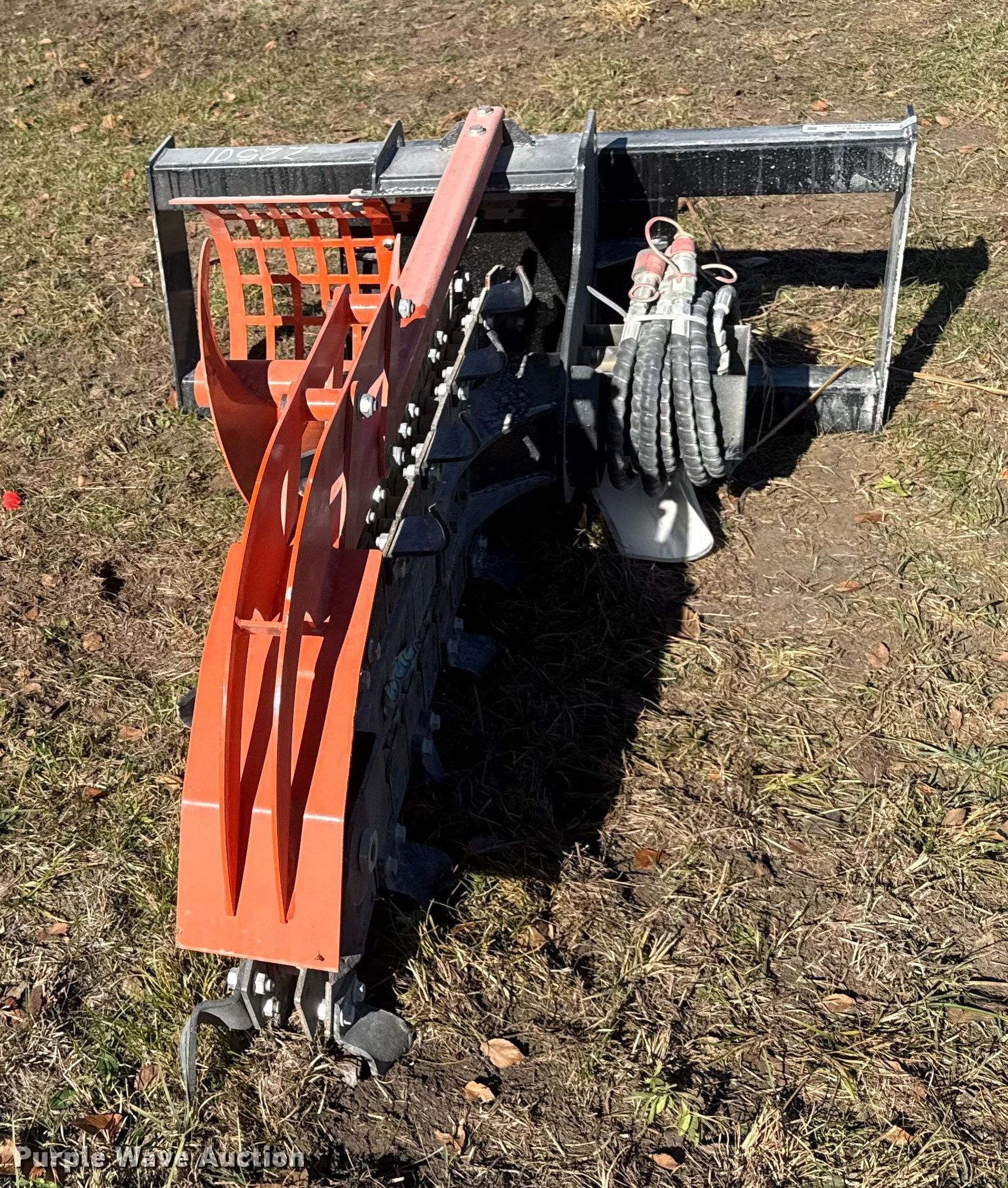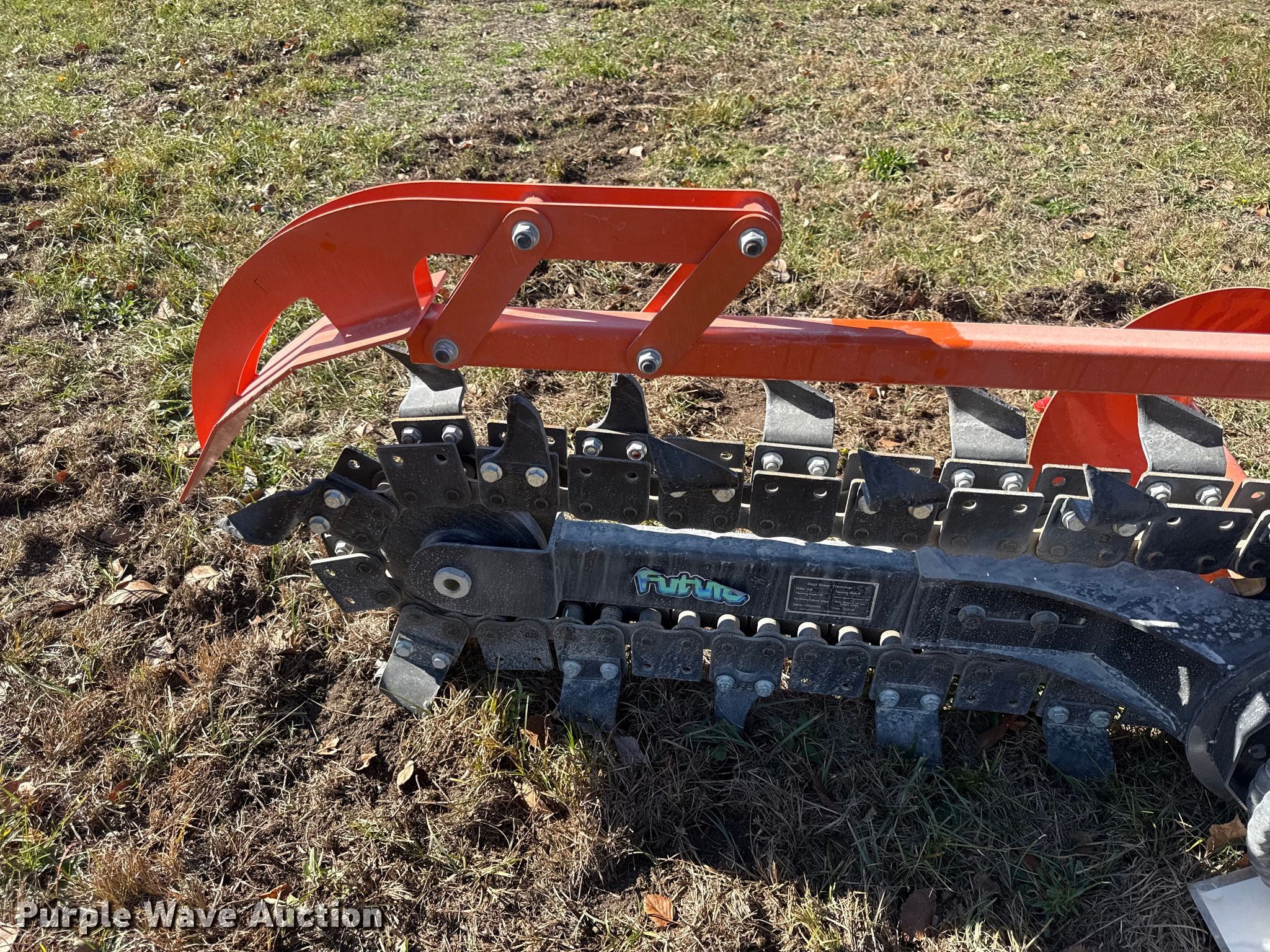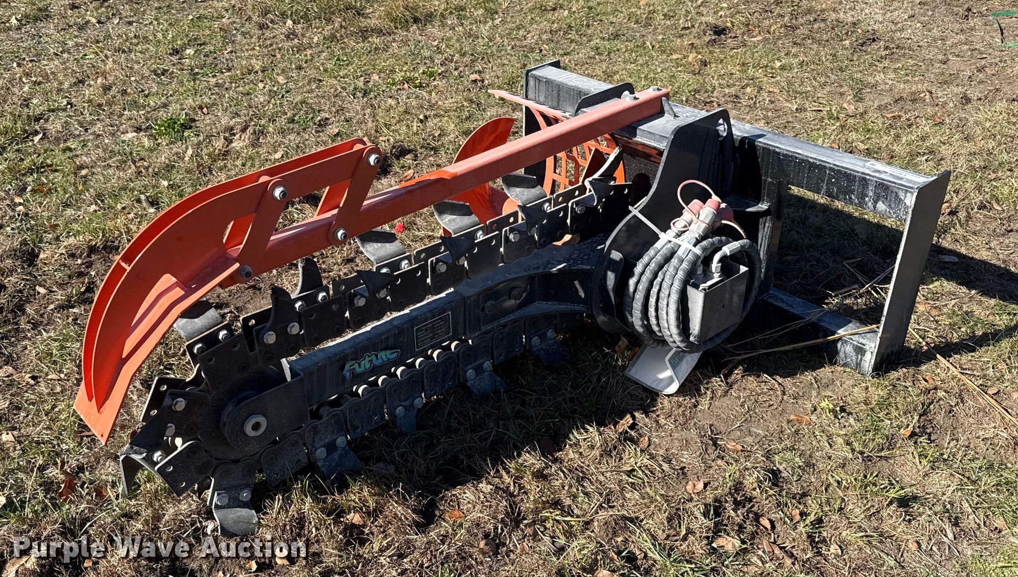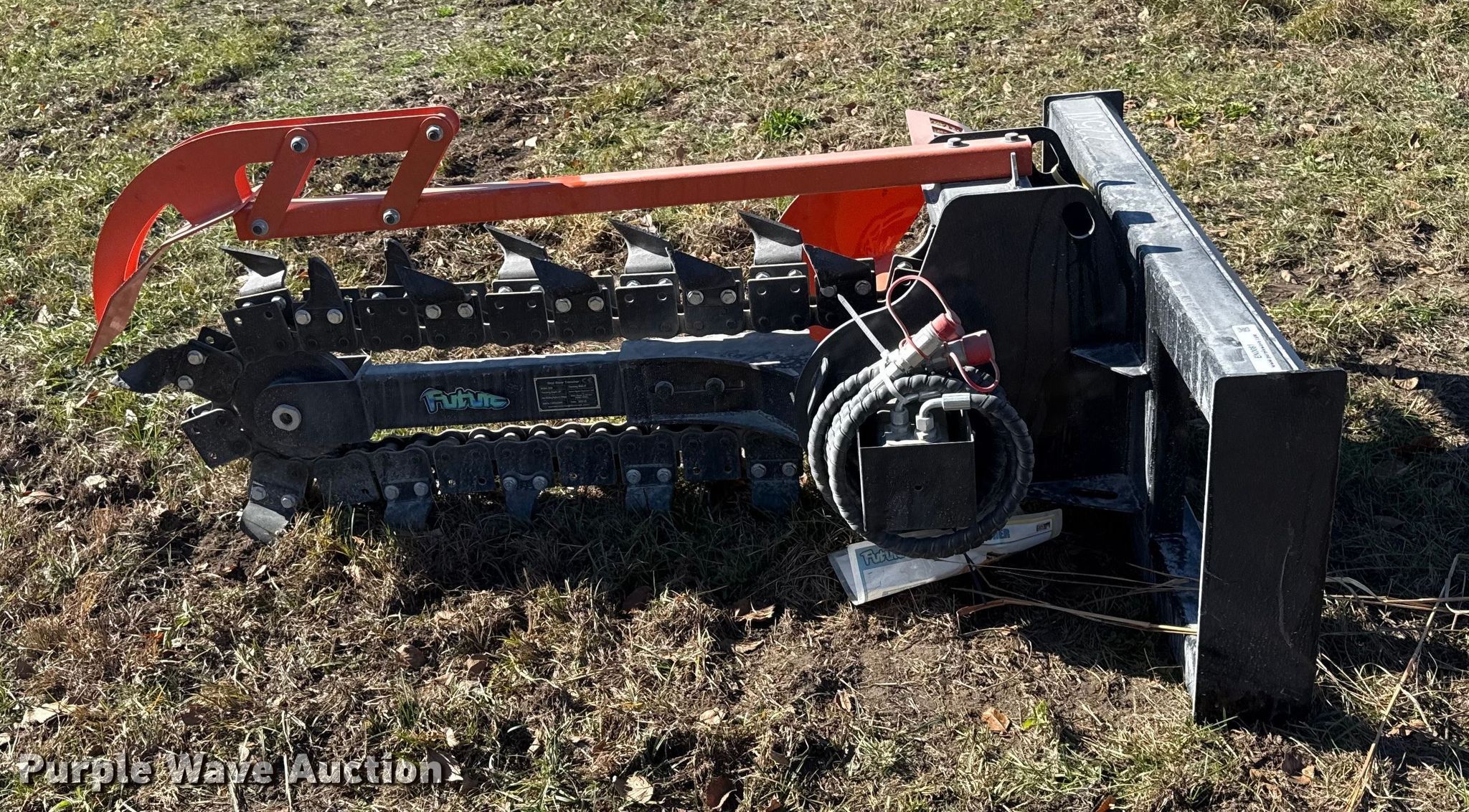 Purple Wave is selling a used Skid Steer Attach. in Kansas. This item is a 2025 Future D39 skid steer trencher with the following: Serial: F-DKGJ39250944, Estimated dig depth: 39", Cutting width: 8", Teeth: Dirt, Crumber