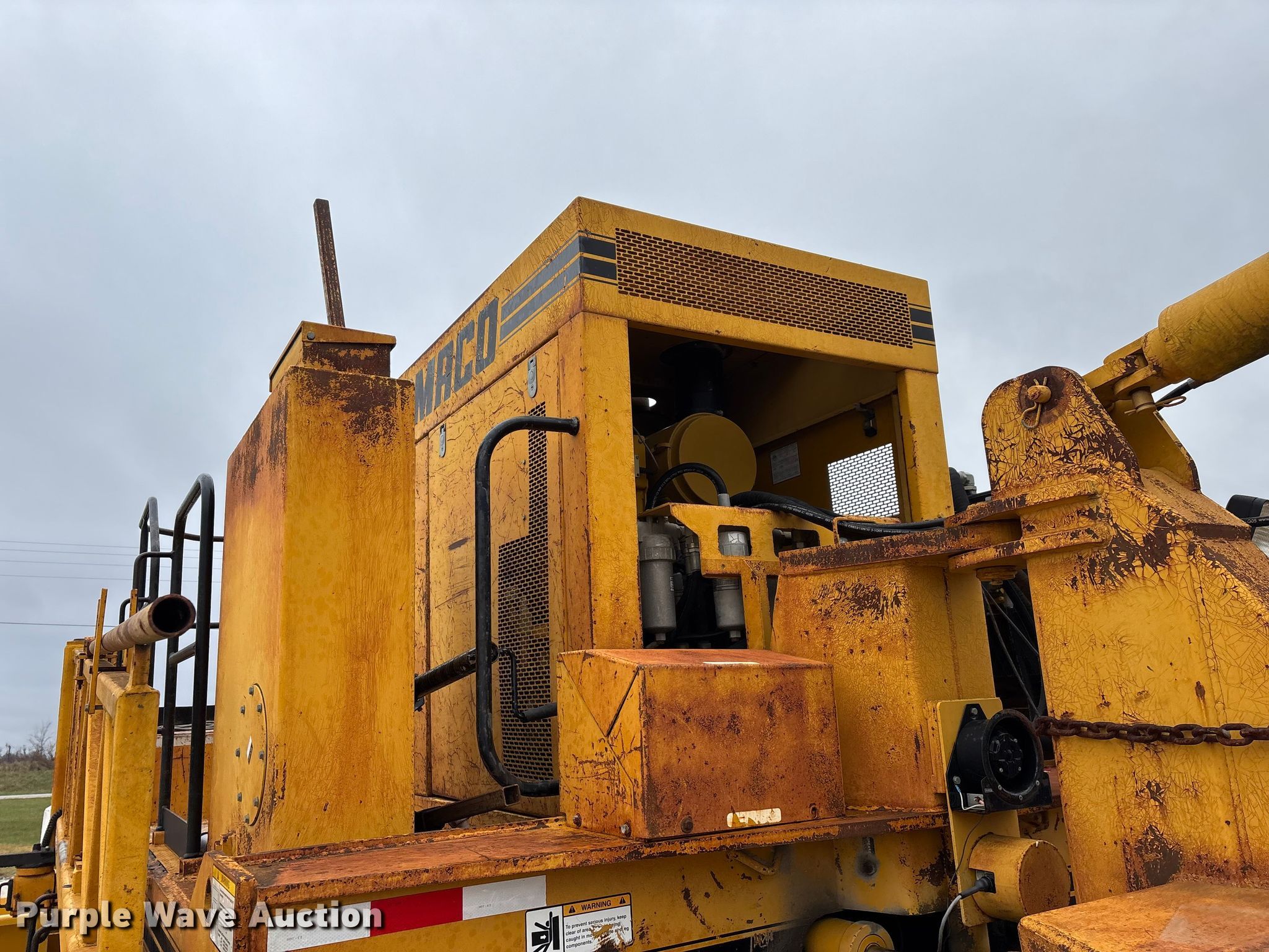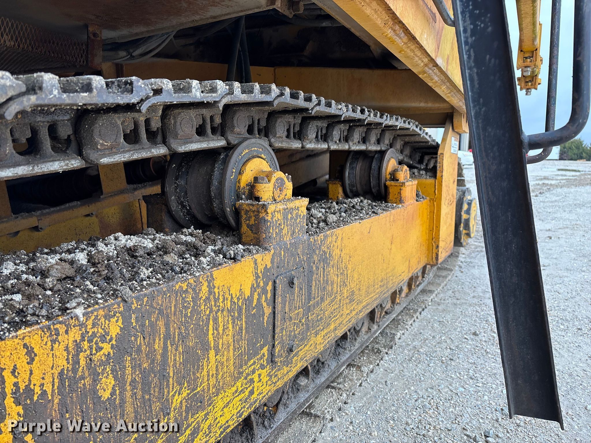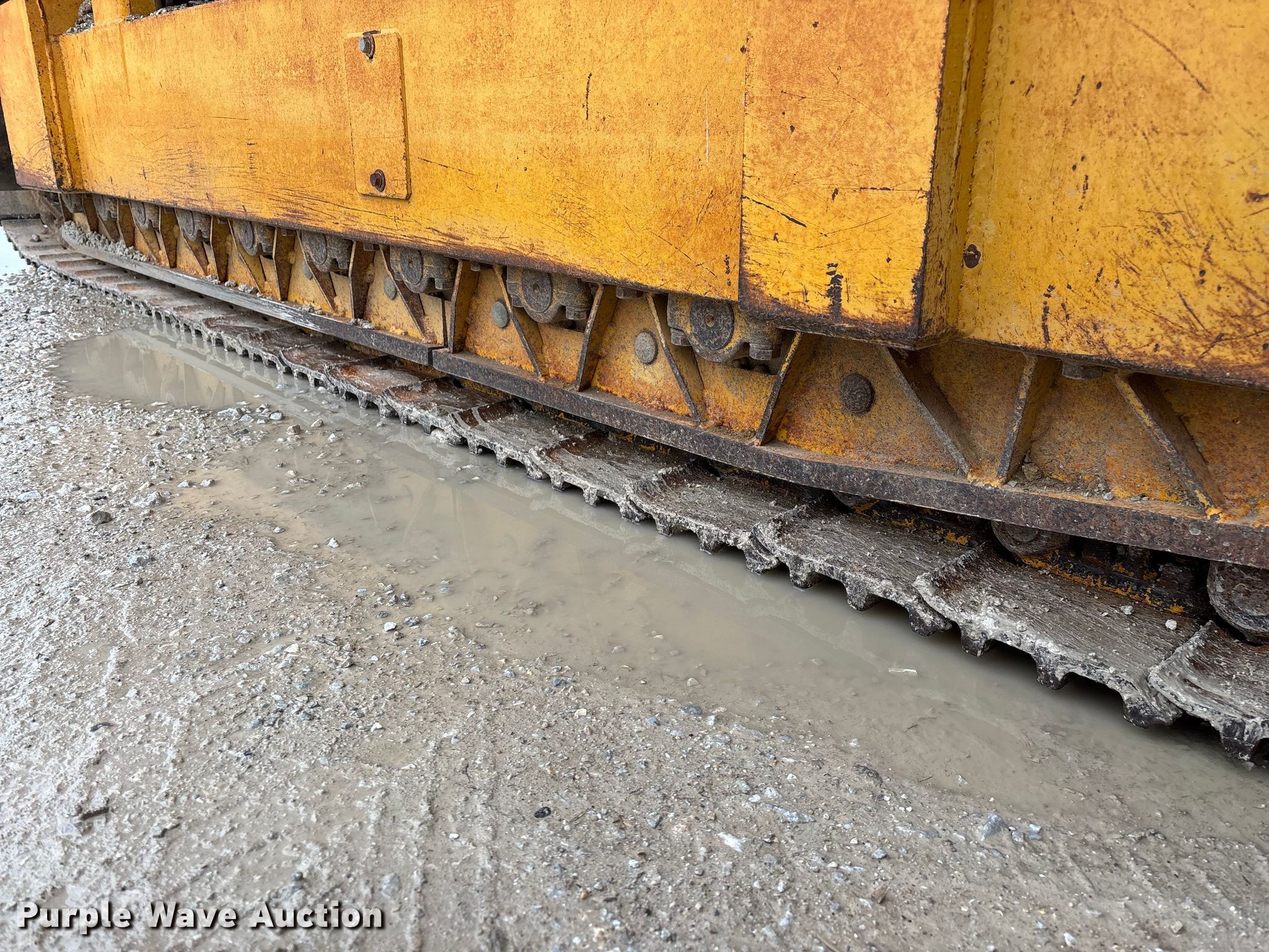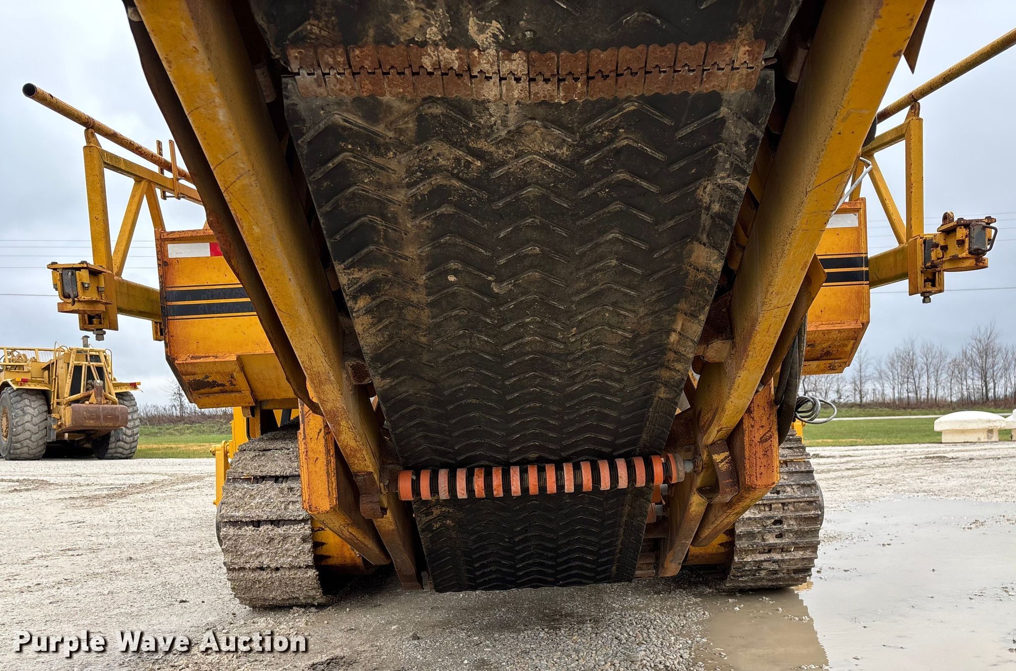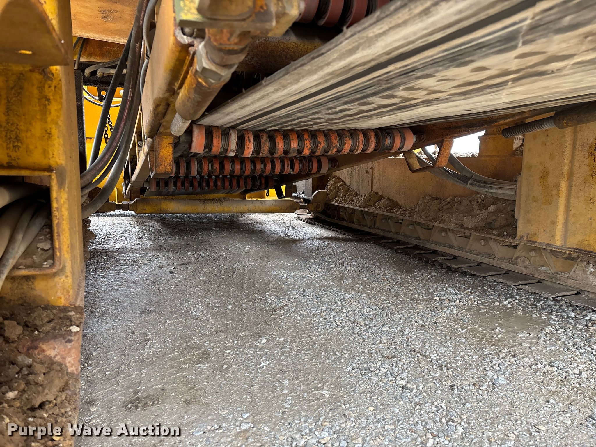 Gomaco 9000 trimmer. Hours: Unknown, Serial: 909000-042. Engine Caterpillar C-10, Serial: BCX02260, Displacement: 10.3L, Cylinders: 6, Fuel type: Diesel, HP: 439, kW: 327. Transmission Hydrostatic. Features 14' trimmer head, Transfer conveyor Size: 12' 2 L x 30" W, Rear conveyor Size: 24' L x 29.5" W. Tracks Width: 13.5", Steel. Notes Hour meter illumination issues, Hydraulic hose issues. Hardy Holding Group. Pilot Grove, MO 65276