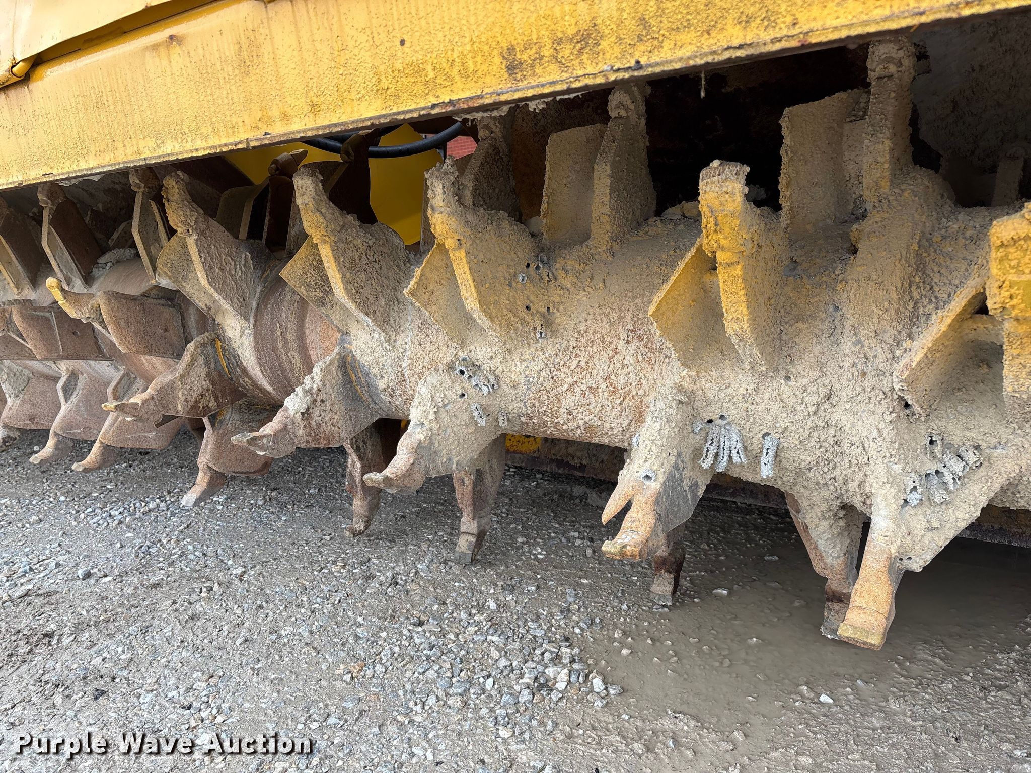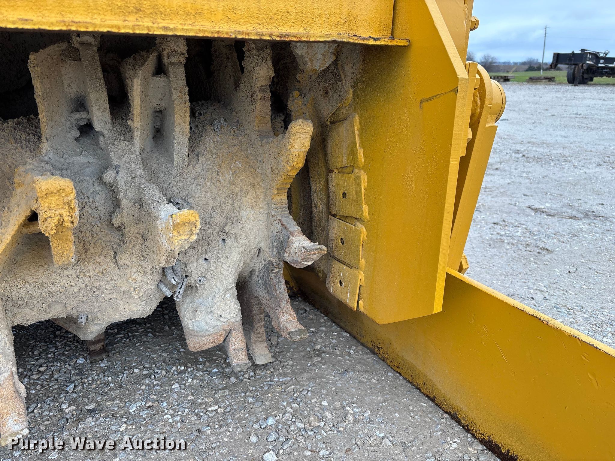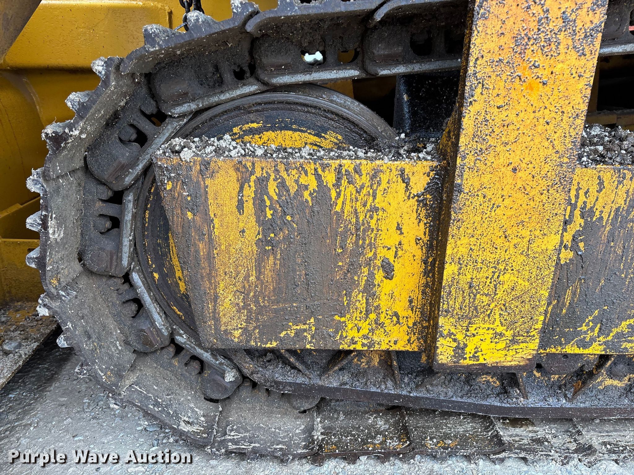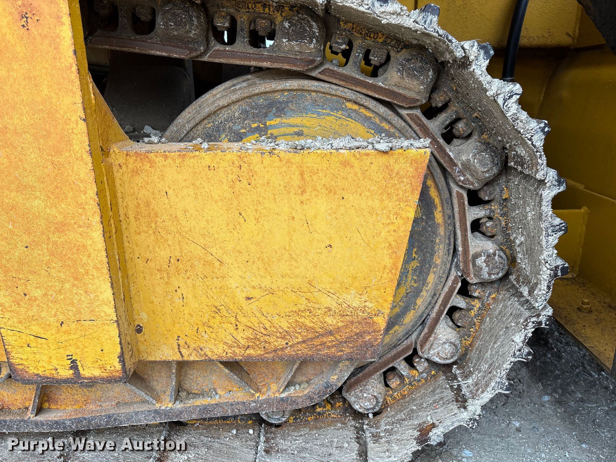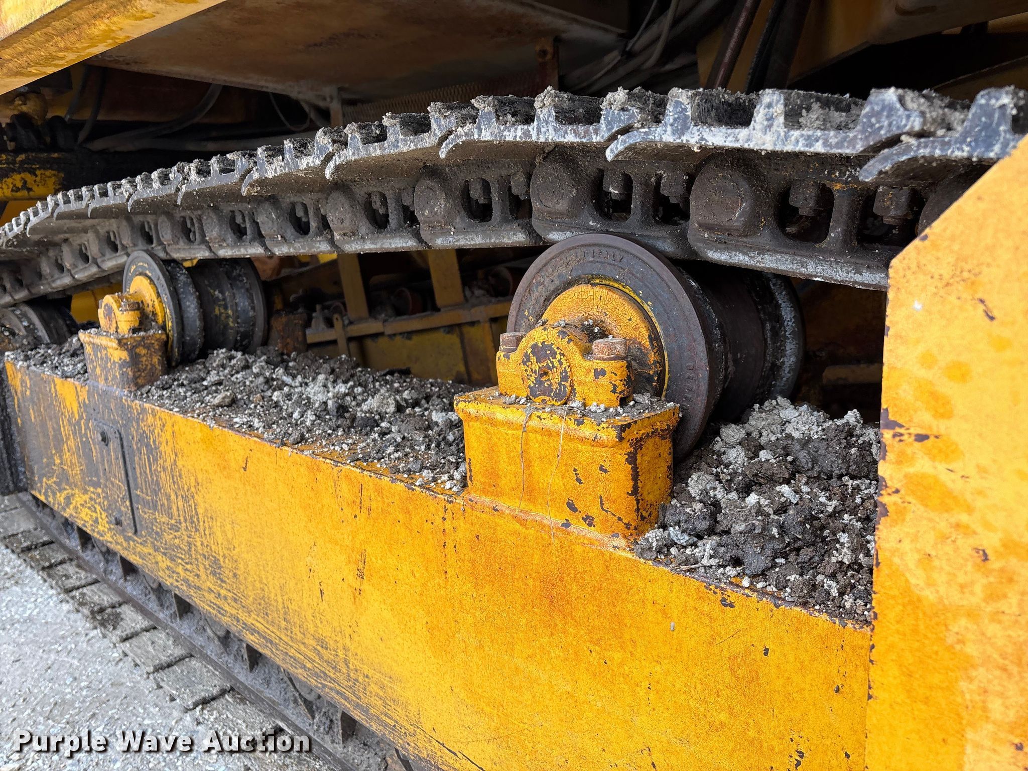 Gomaco 9000 trimmer. Hours: Unknown, Serial: 909000-042. Engine Caterpillar C-10, Serial: BCX02260, Displacement: 10.3L, Cylinders: 6, Fuel type: Diesel, HP: 439, kW: 327. Transmission Hydrostatic. Features 14' trimmer head, Transfer conveyor Size: 12' 2 L x 30" W, Rear conveyor Size: 24' L x 29.5" W. Tracks Width: 13.5", Steel. Notes Hour meter illumination issues, Hydraulic hose issues. Hardy Holding Group. Pilot Grove, MO 65276