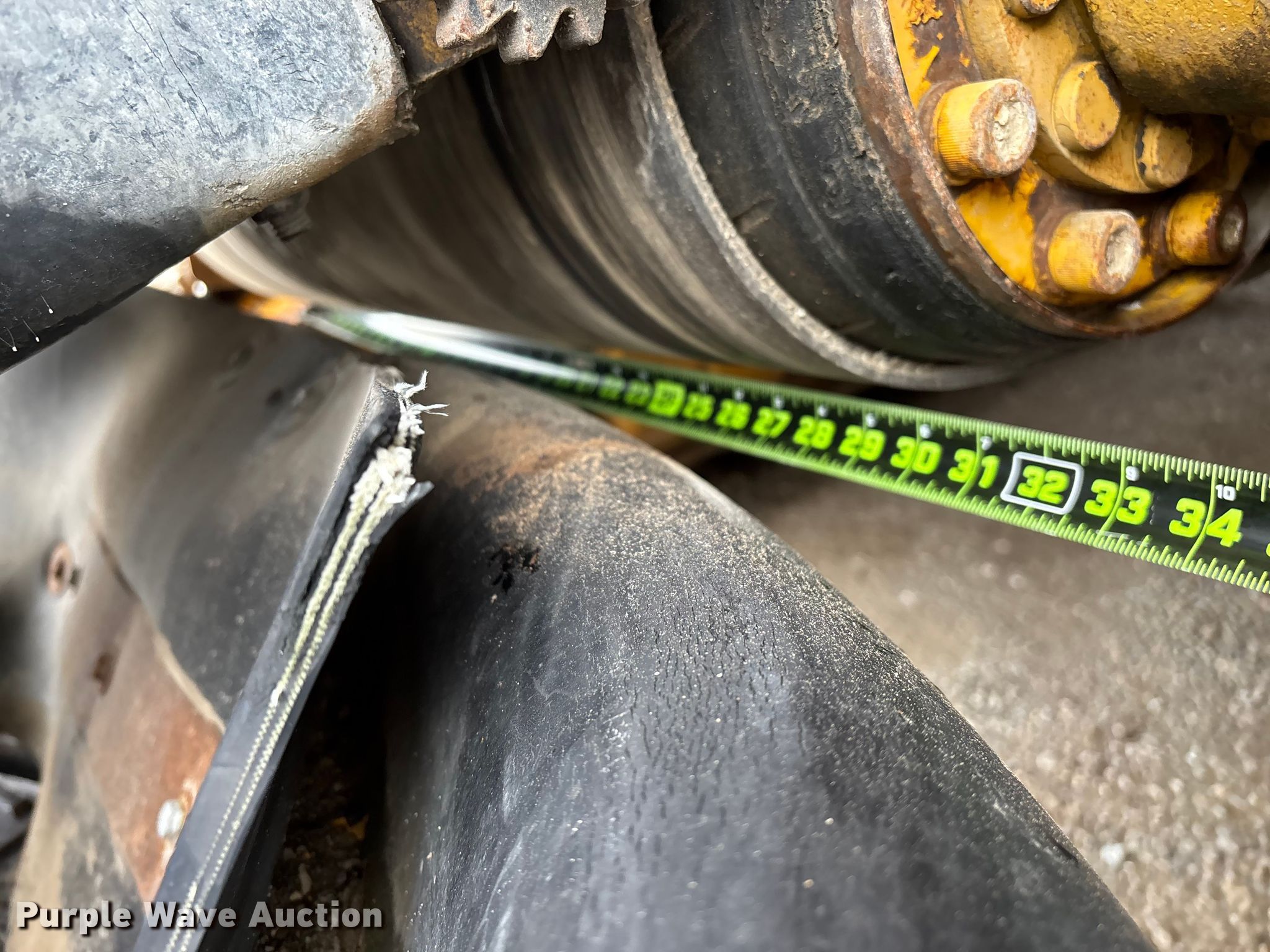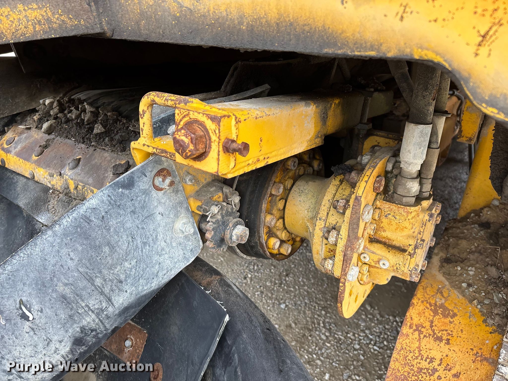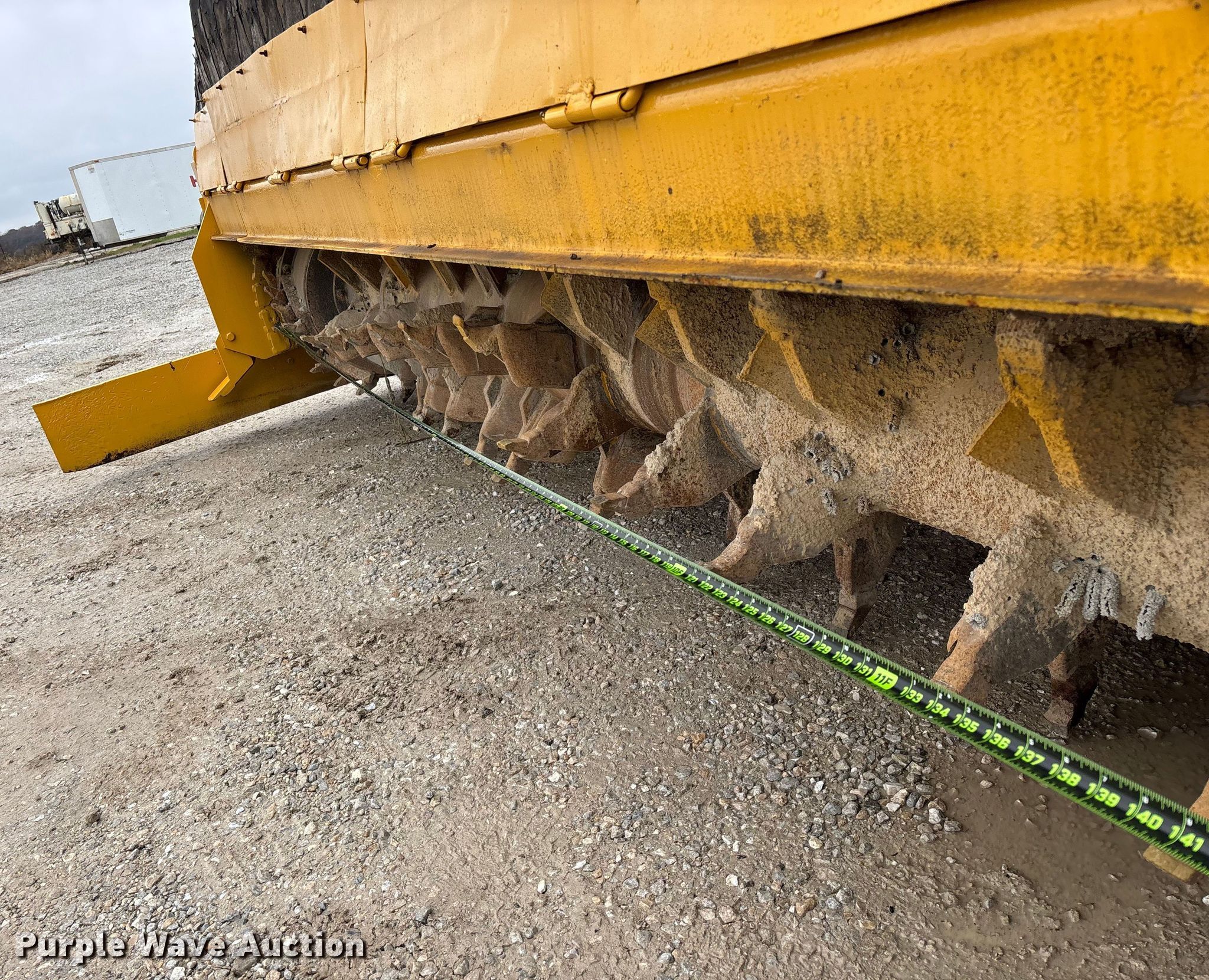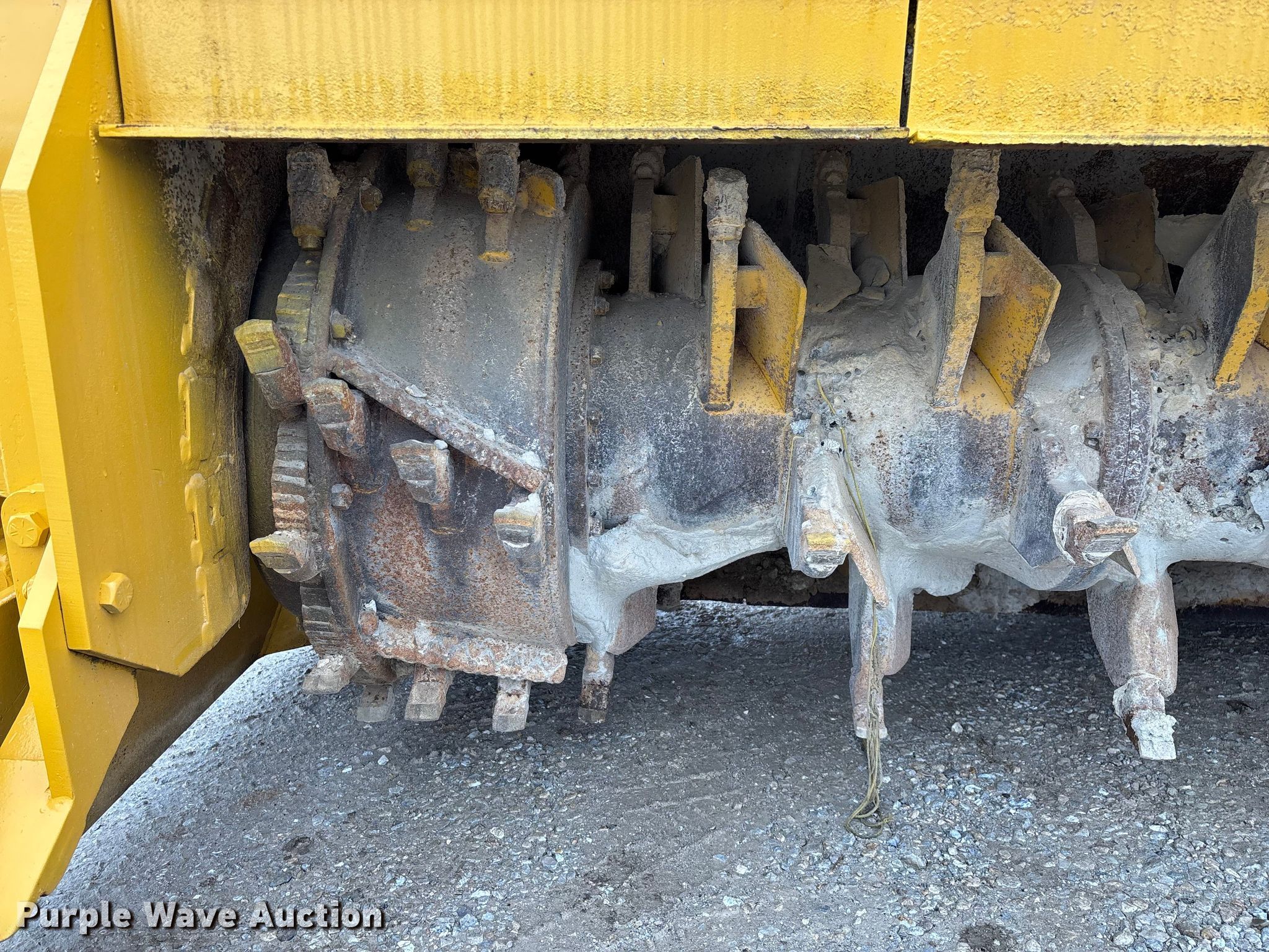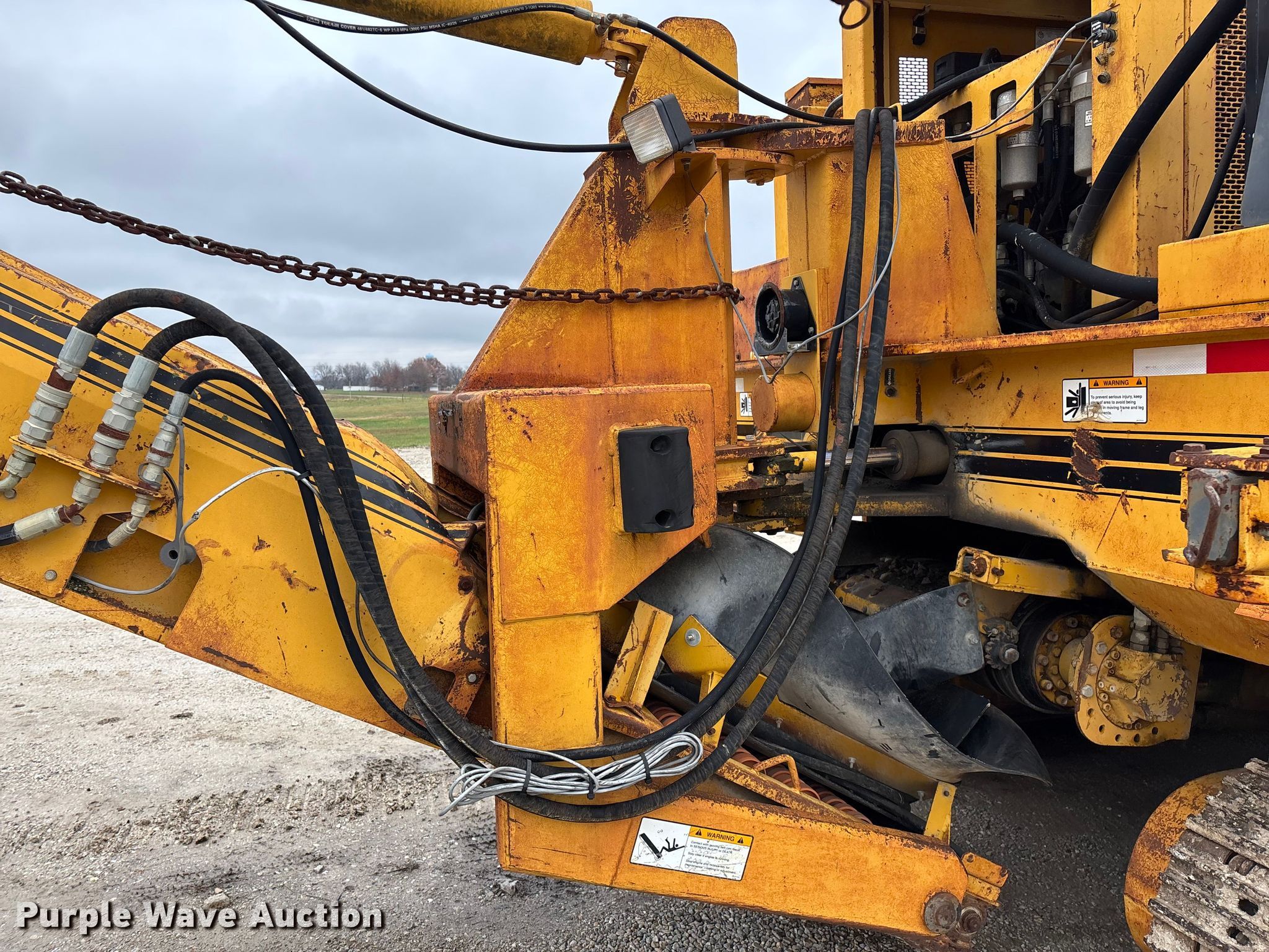 Gomaco 9000 trimmer. Hours: Unknown, Serial: 909000-042. Engine Caterpillar C-10, Serial: BCX02260, Displacement: 10.3L, Cylinders: 6, Fuel type: Diesel, HP: 439, kW: 327. Transmission Hydrostatic. Features 14' trimmer head, Transfer conveyor Size: 12' 2 L x 30" W, Rear conveyor Size: 24' L x 29.5" W. Tracks Width: 13.5", Steel. Notes Hour meter illumination issues, Hydraulic hose issues. Hardy Holding Group. Pilot Grove, MO 65276