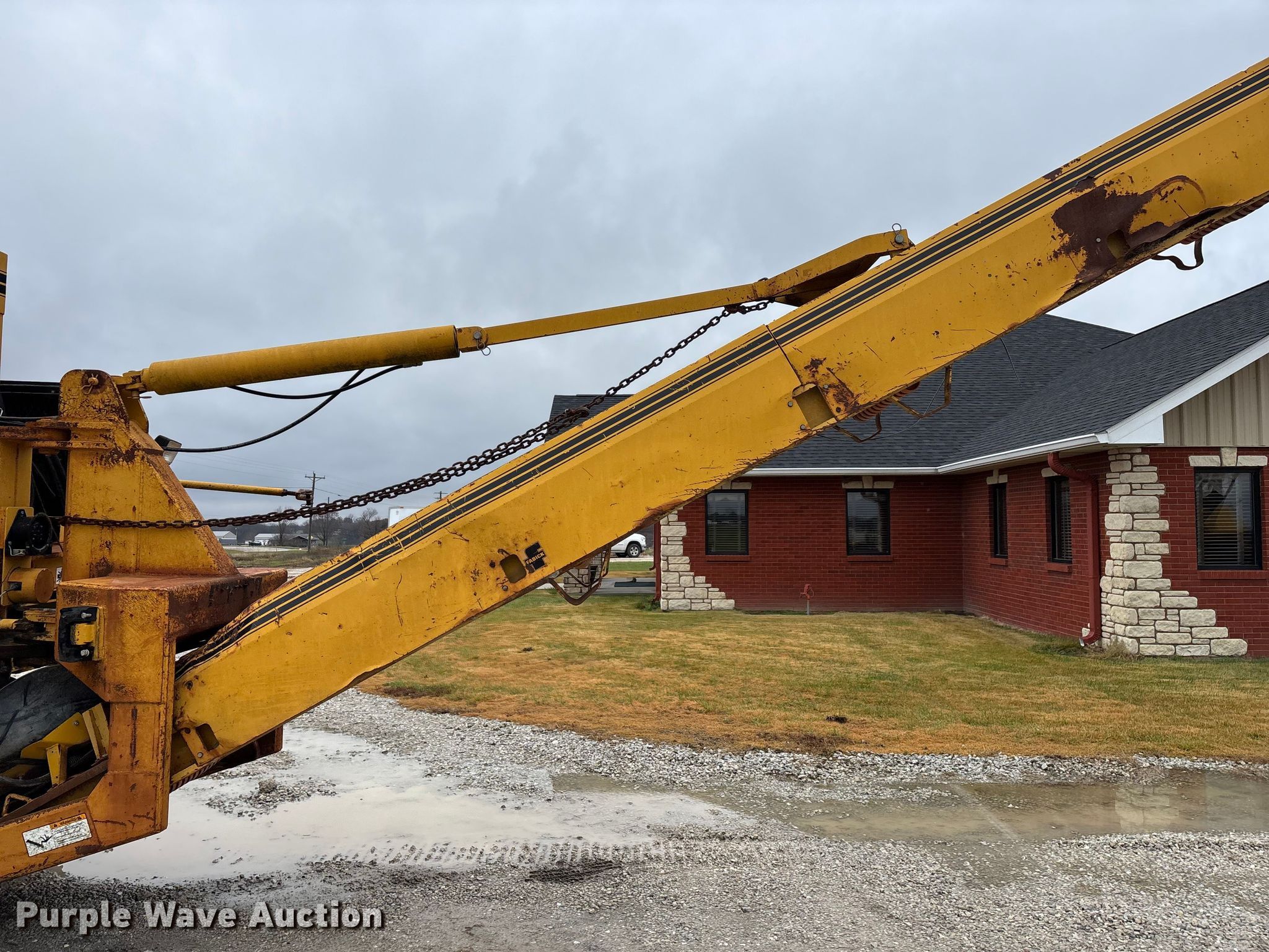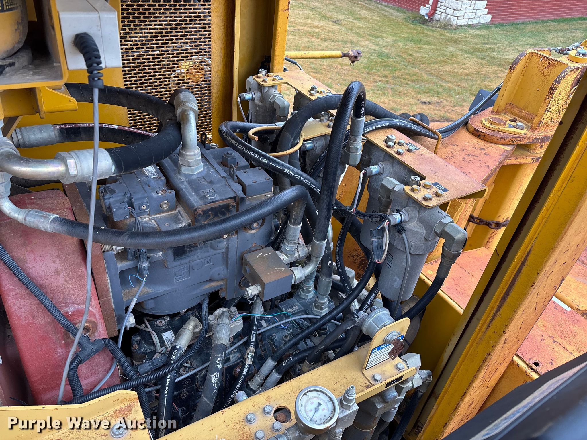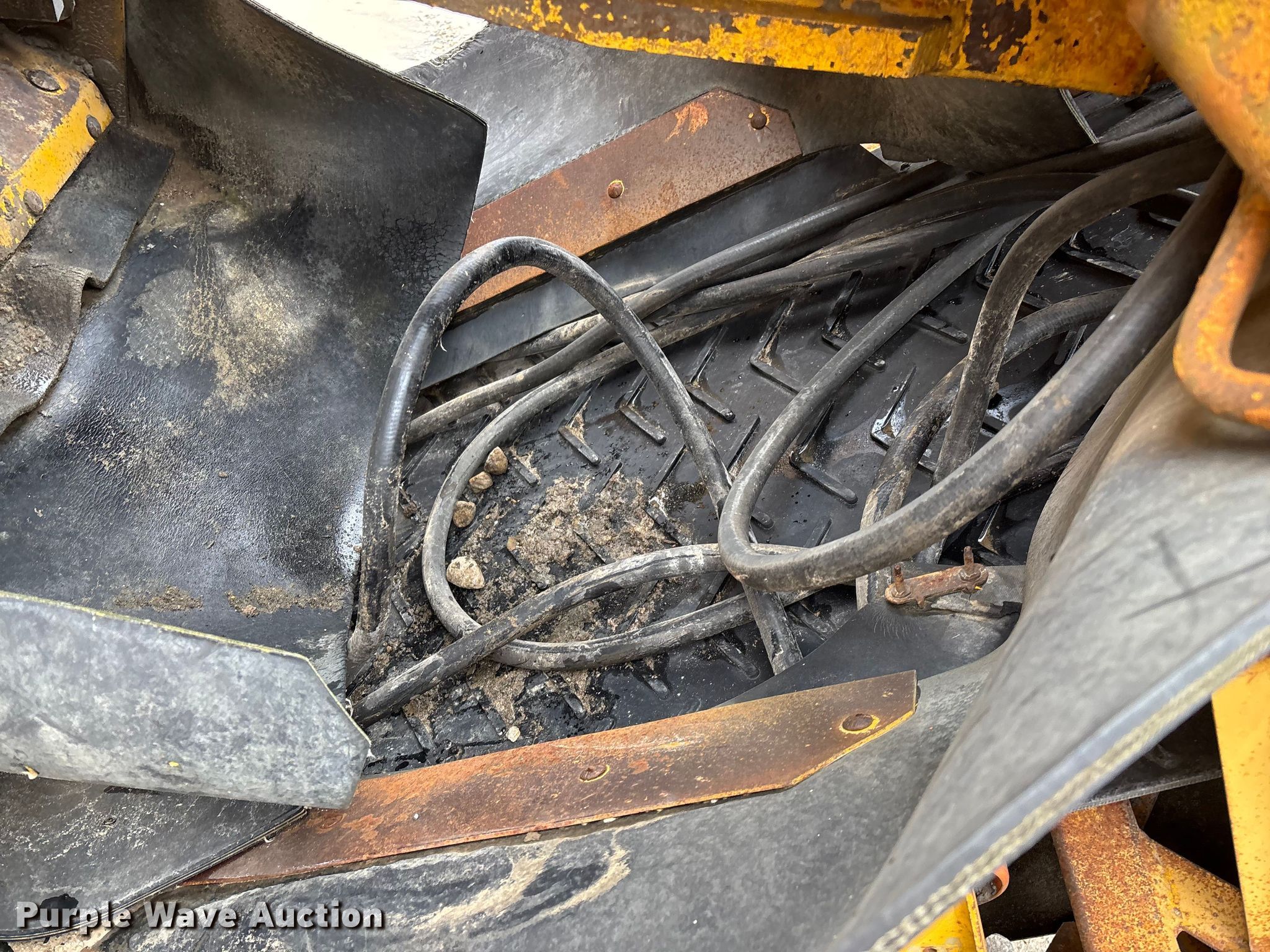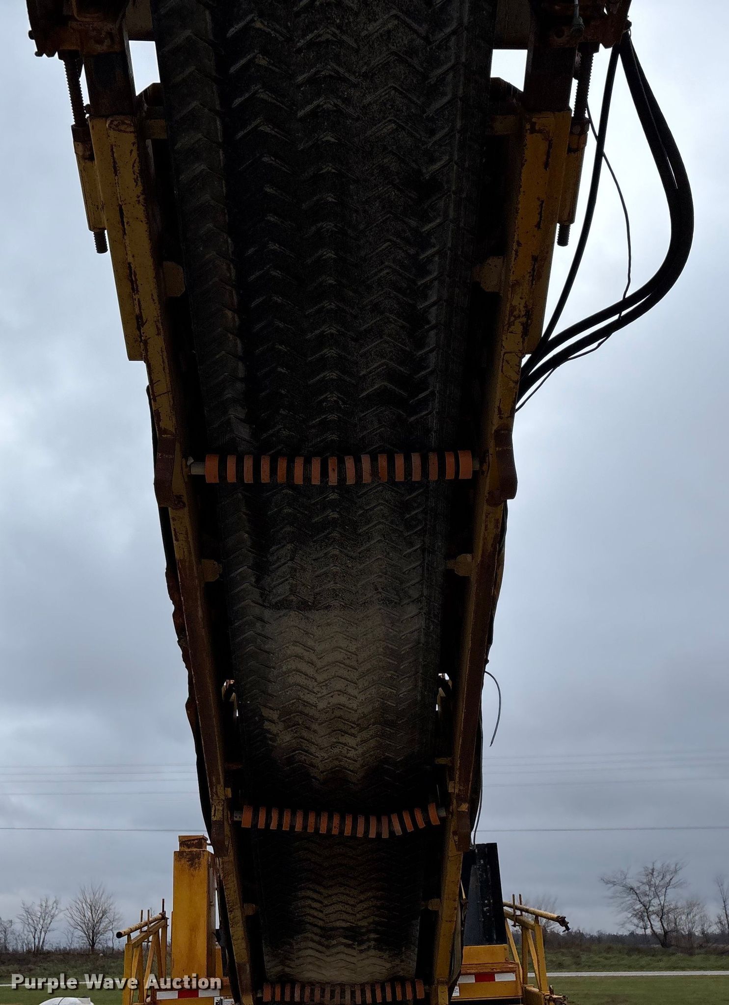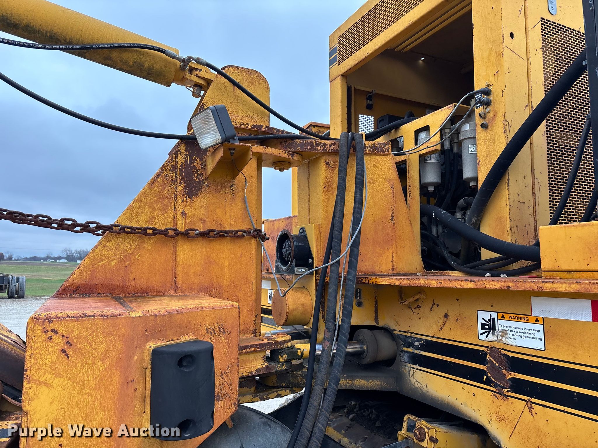 Gomaco 9000 trimmer. Hours: Unknown, Serial: 909000-042. Engine Caterpillar C-10, Serial: BCX02260, Displacement: 10.3L, Cylinders: 6, Fuel type: Diesel, HP: 439, kW: 327. Transmission Hydrostatic. Features 14' trimmer head, Transfer conveyor Size: 12' 2 L x 30" W, Rear conveyor Size: 24' L x 29.5" W. Tracks Width: 13.5", Steel. Notes Hour meter illumination issues, Hydraulic hose issues. Hardy Holding Group. Pilot Grove, MO 65276