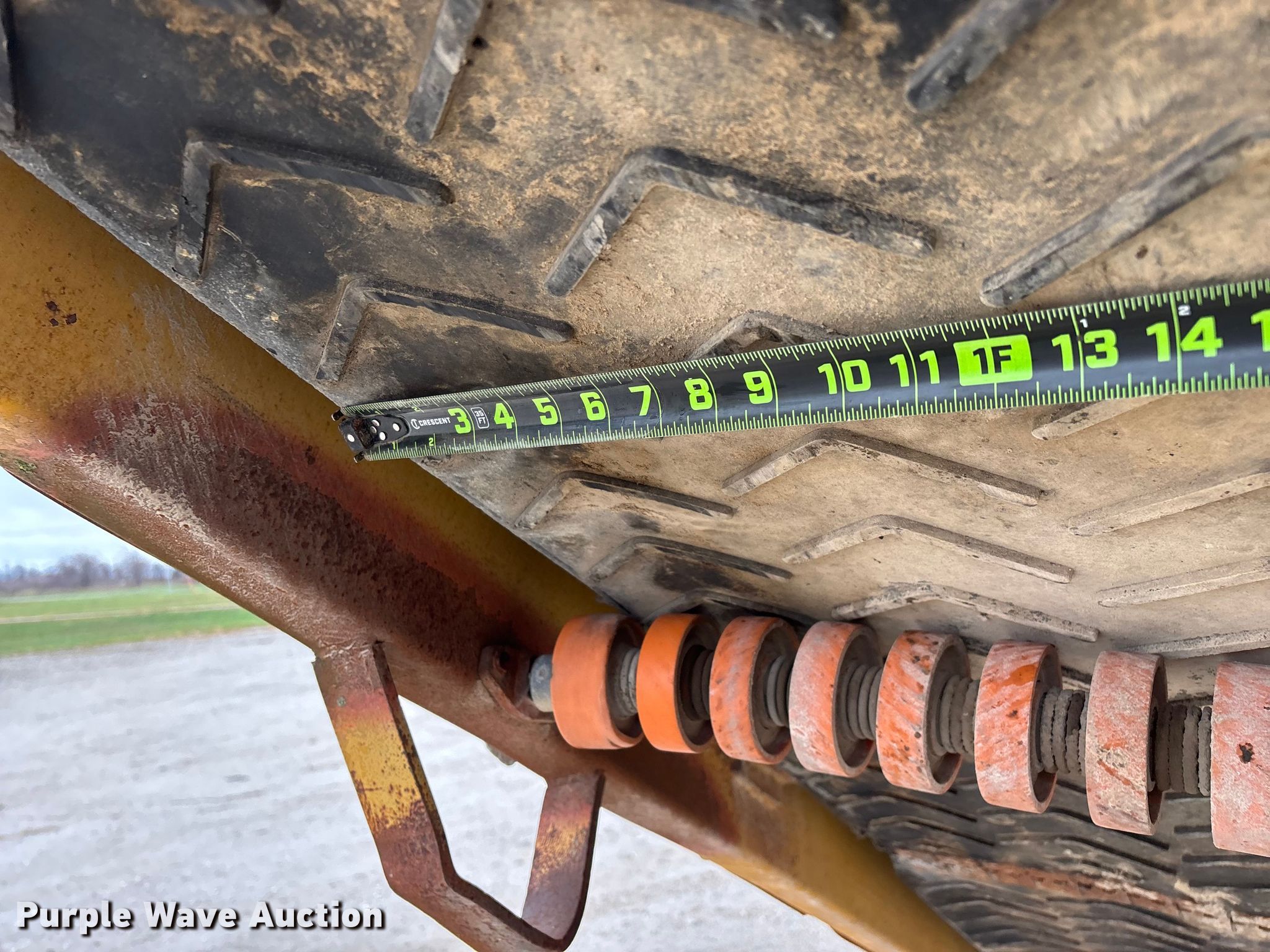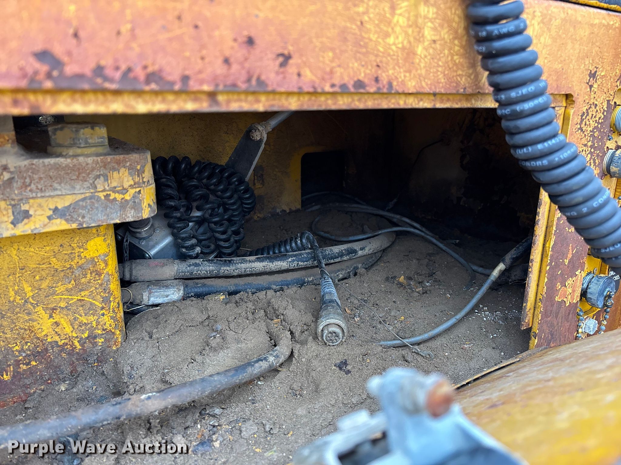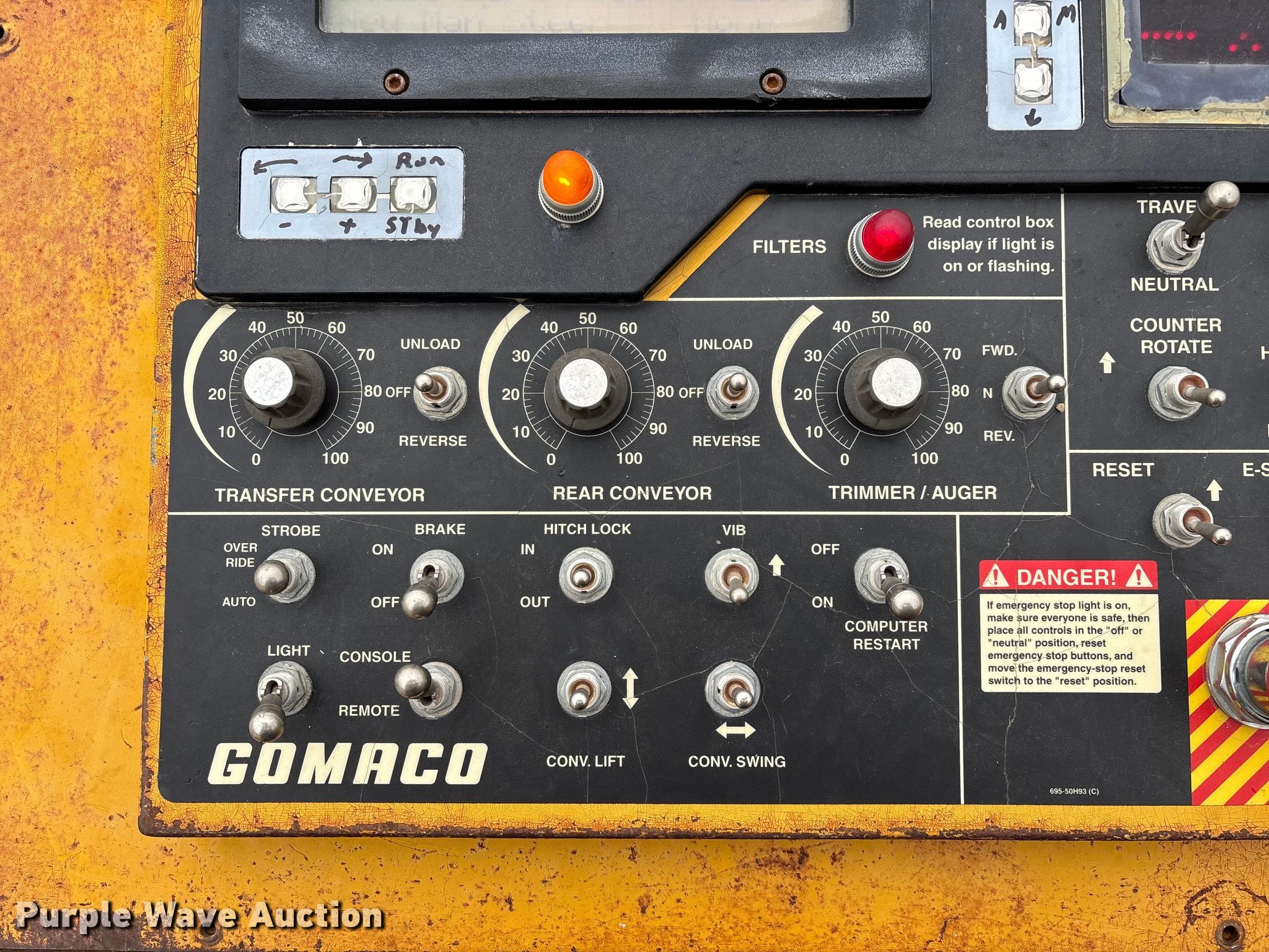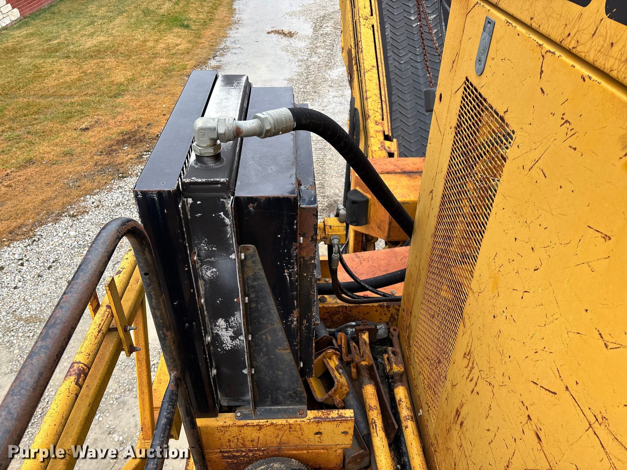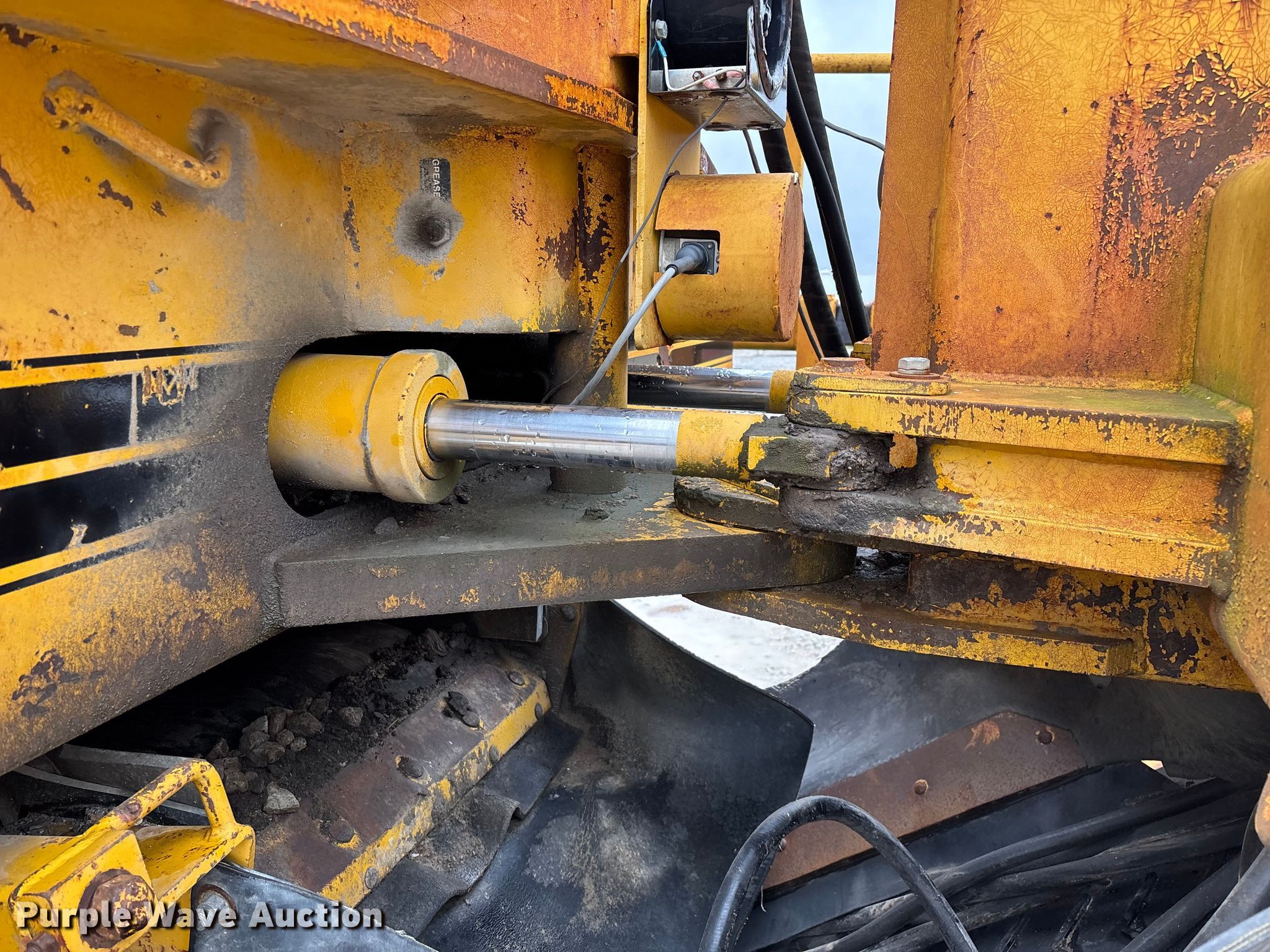 Gomaco 9000 trimmer. Hours: Unknown, Serial: 909000-042. Engine Caterpillar C-10, Serial: BCX02260, Displacement: 10.3L, Cylinders: 6, Fuel type: Diesel, HP: 439, kW: 327. Transmission Hydrostatic. Features 14' trimmer head, Transfer conveyor Size: 12' 2 L x 30" W, Rear conveyor Size: 24' L x 29.5" W. Tracks Width: 13.5", Steel. Notes Hour meter illumination issues, Hydraulic hose issues. Hardy Holding Group. Pilot Grove, MO 65276