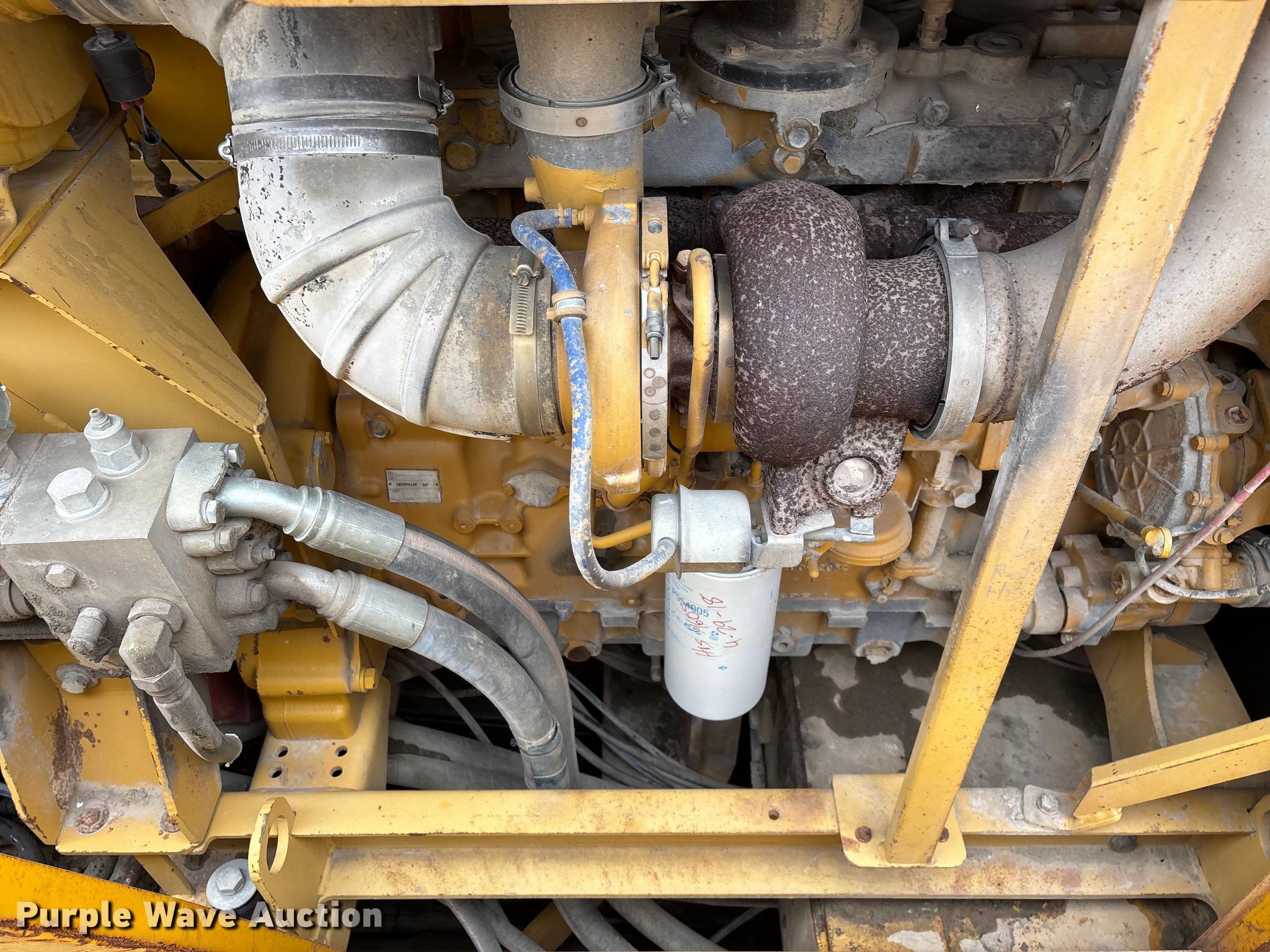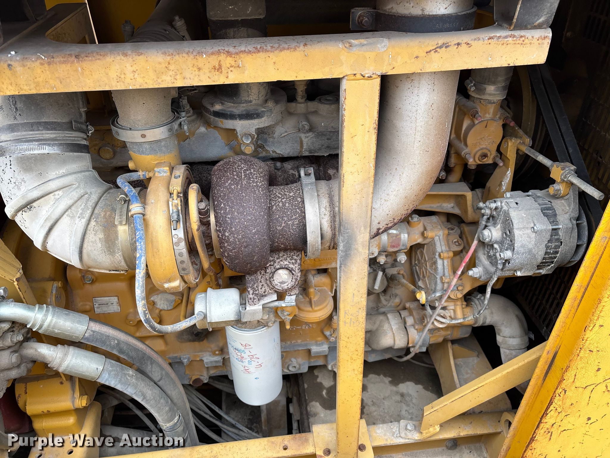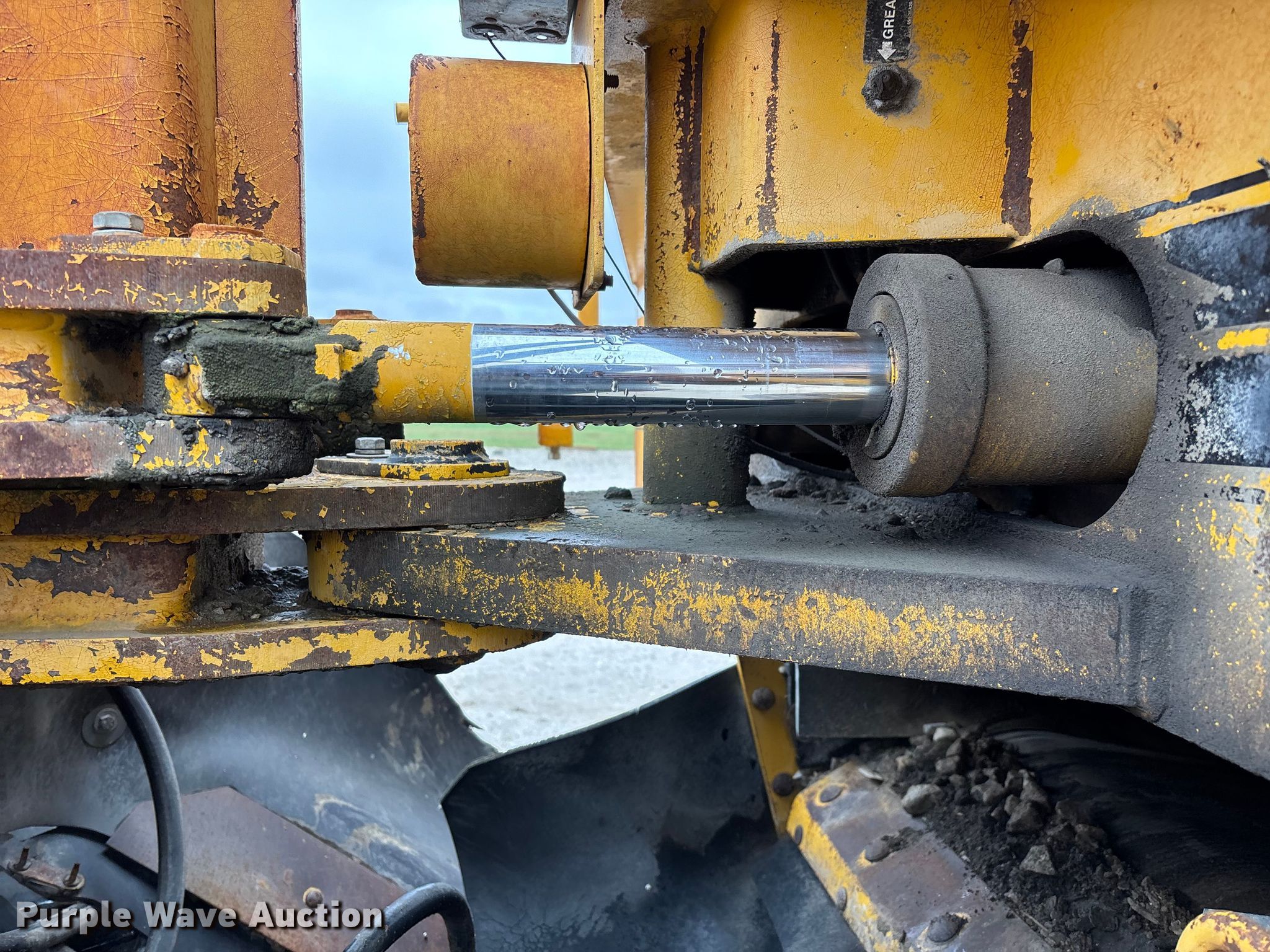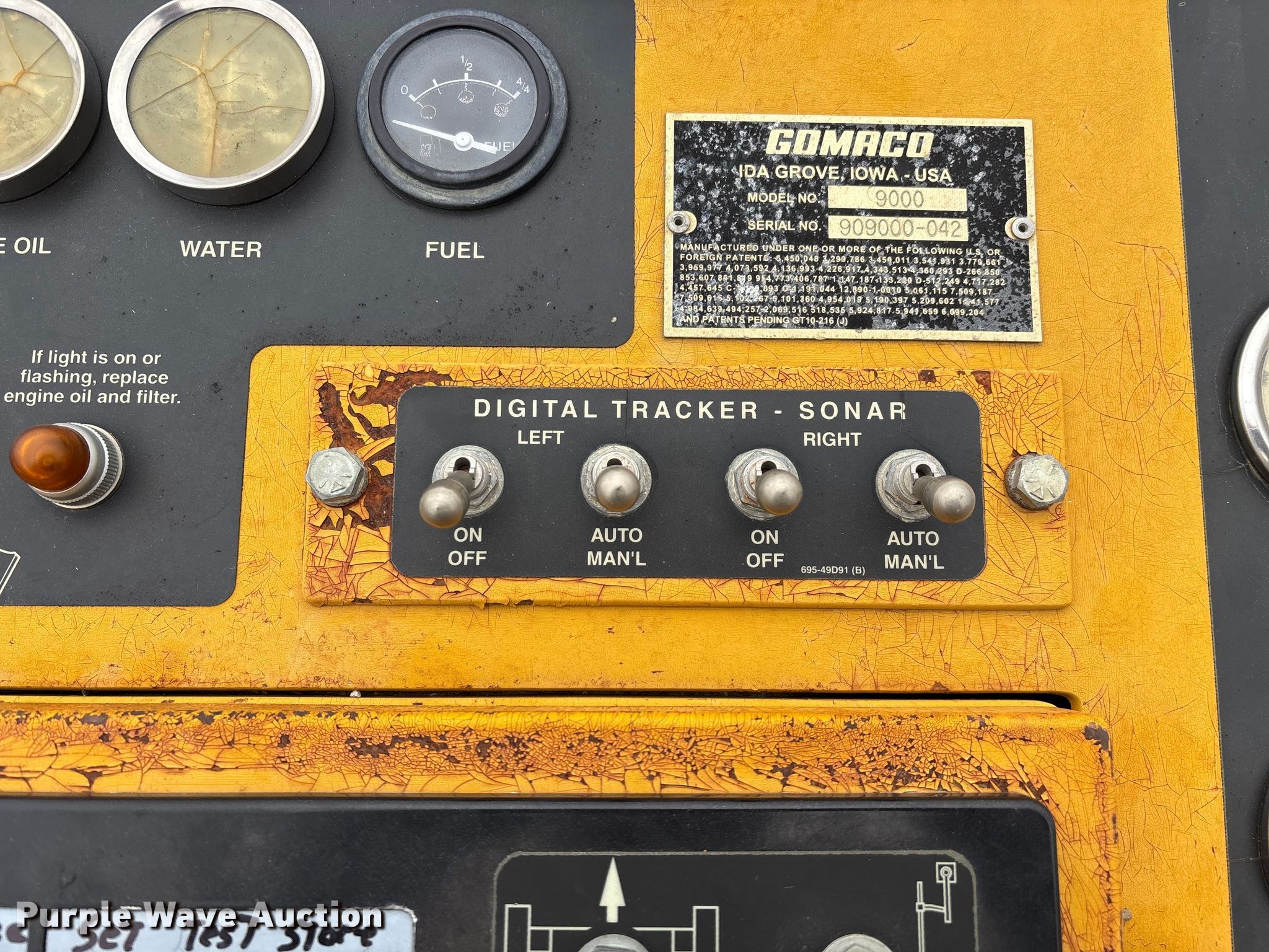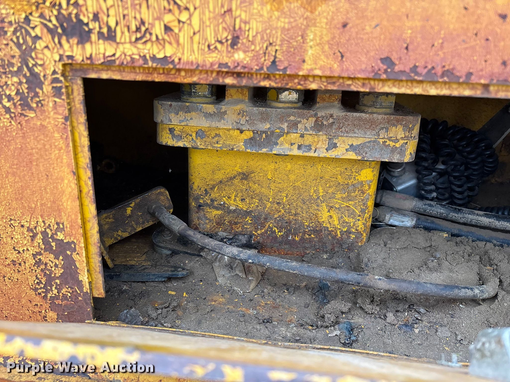 Gomaco 9000 trimmer. Hours: Unknown, Serial: 909000-042. Engine Caterpillar C-10, Serial: BCX02260, Displacement: 10.3L, Cylinders: 6, Fuel type: Diesel, HP: 439, kW: 327. Transmission Hydrostatic. Features 14' trimmer head, Transfer conveyor Size: 12' 2 L x 30" W, Rear conveyor Size: 24' L x 29.5" W. Tracks Width: 13.5", Steel. Notes Hour meter illumination issues, Hydraulic hose issues. Hardy Holding Group. Pilot Grove, MO 65276