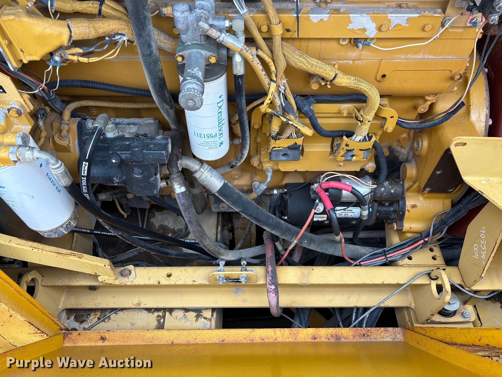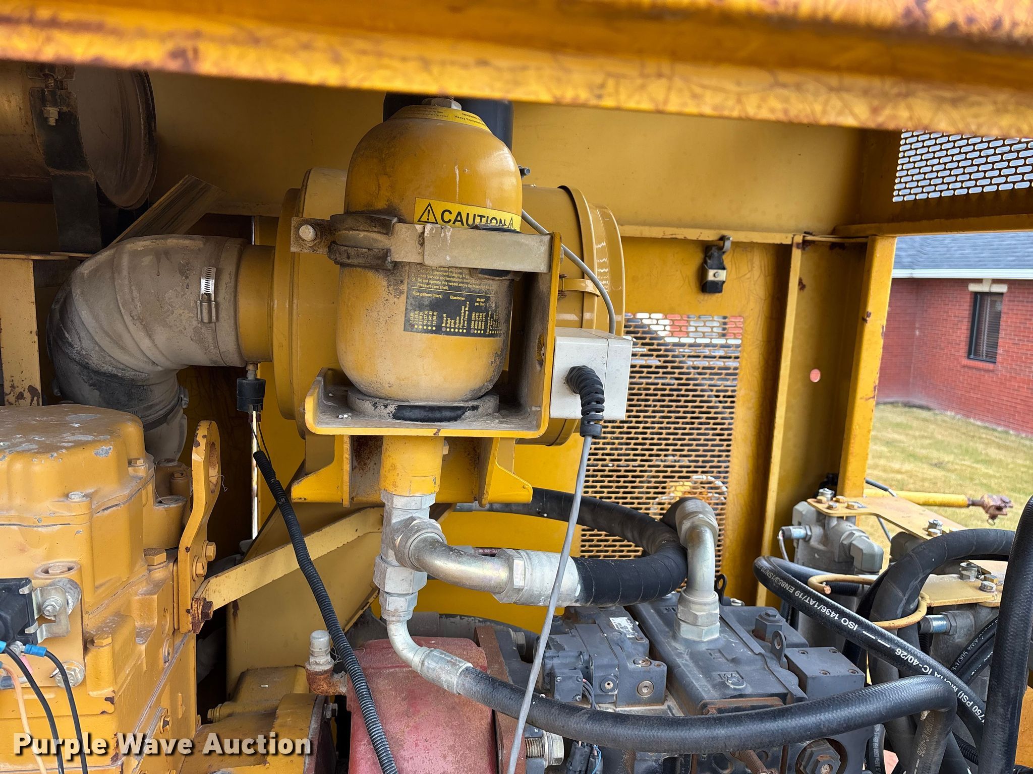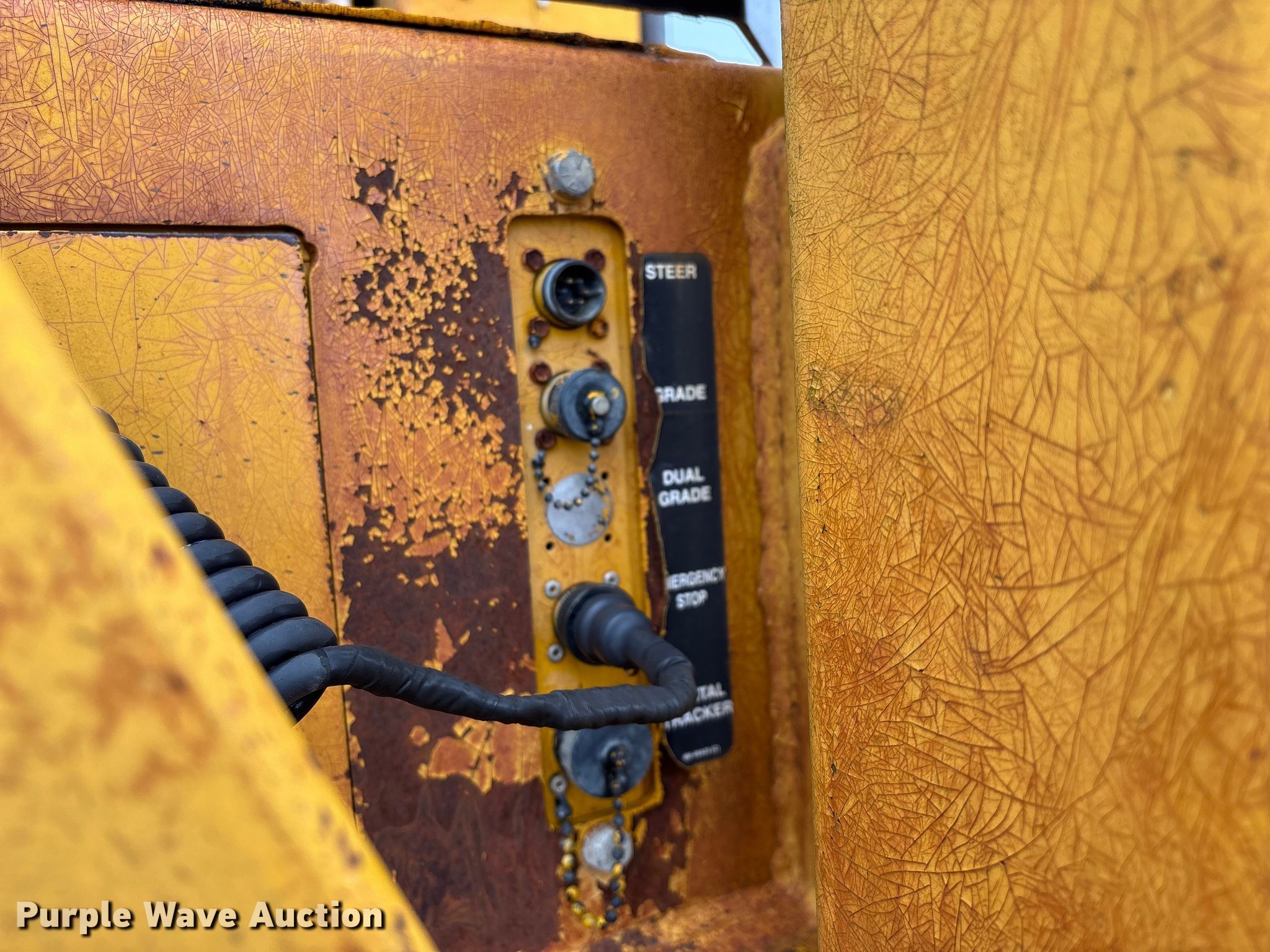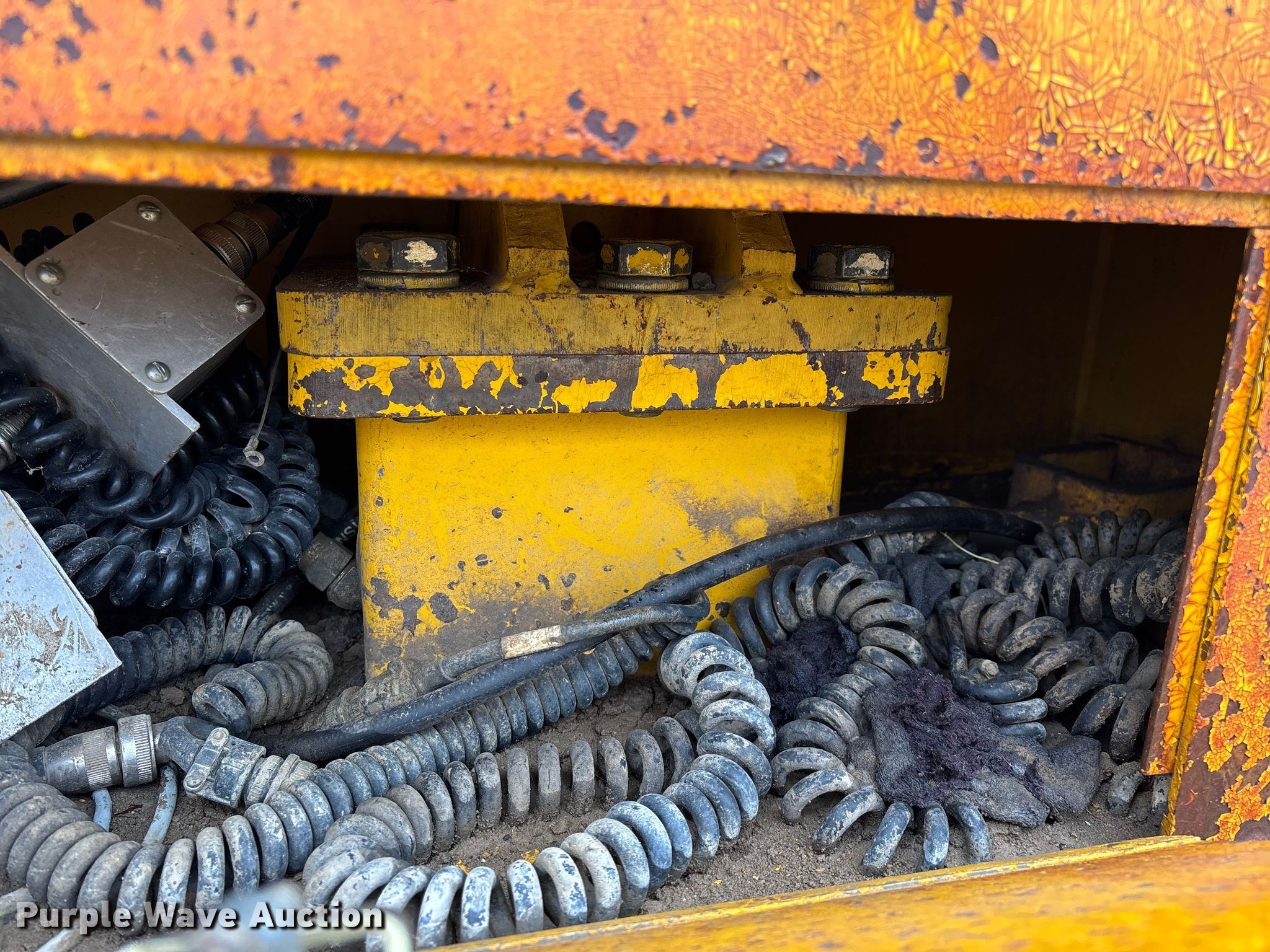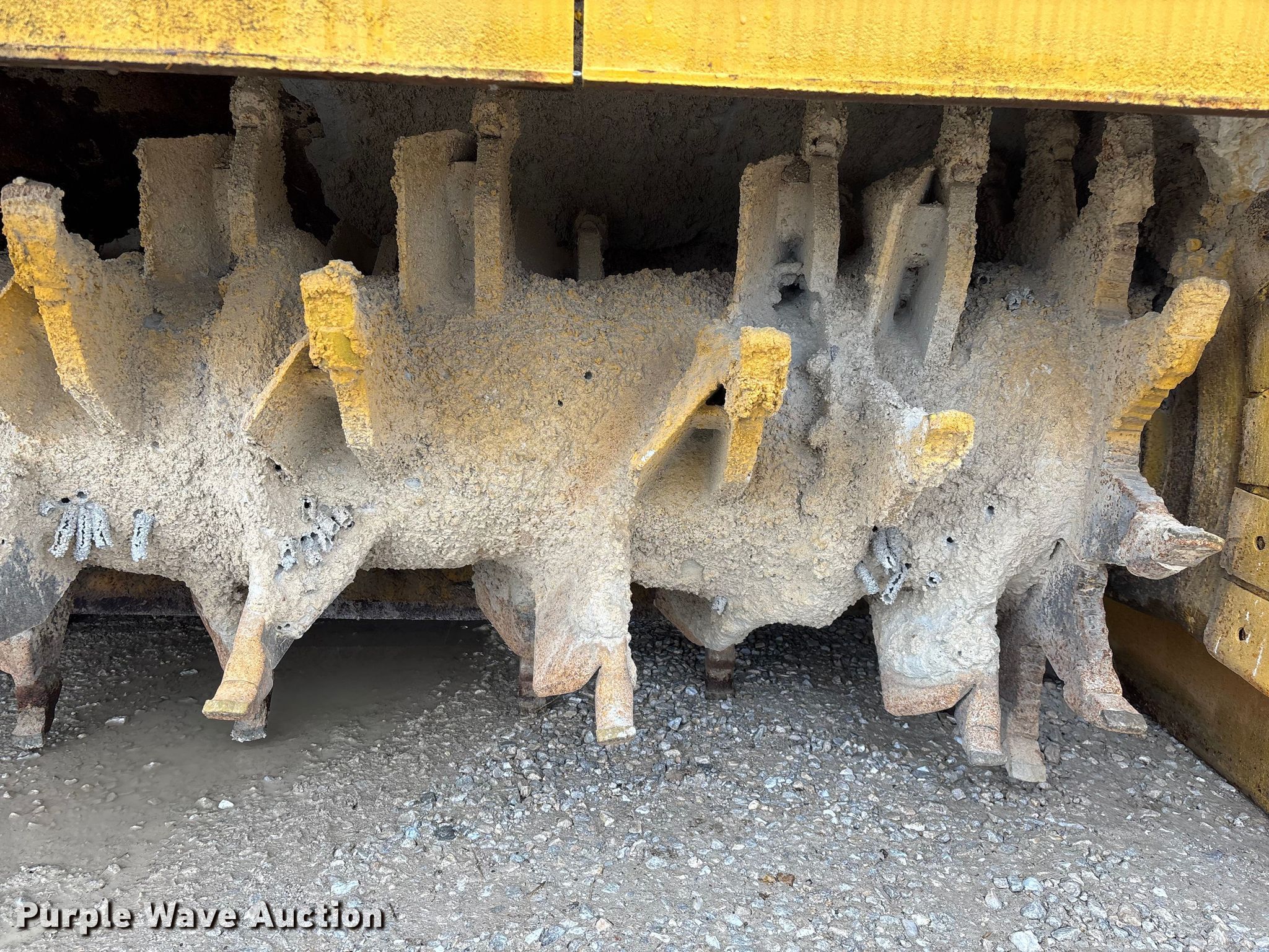 Gomaco 9000 trimmer. Hours: Unknown, Serial: 909000-042. Engine Caterpillar C-10, Serial: BCX02260, Displacement: 10.3L, Cylinders: 6, Fuel type: Diesel, HP: 439, kW: 327. Transmission Hydrostatic. Features 14' trimmer head, Transfer conveyor Size: 12' 2 L x 30" W, Rear conveyor Size: 24' L x 29.5" W. Tracks Width: 13.5", Steel. Notes Hour meter illumination issues, Hydraulic hose issues. Hardy Holding Group. Pilot Grove, MO 65276