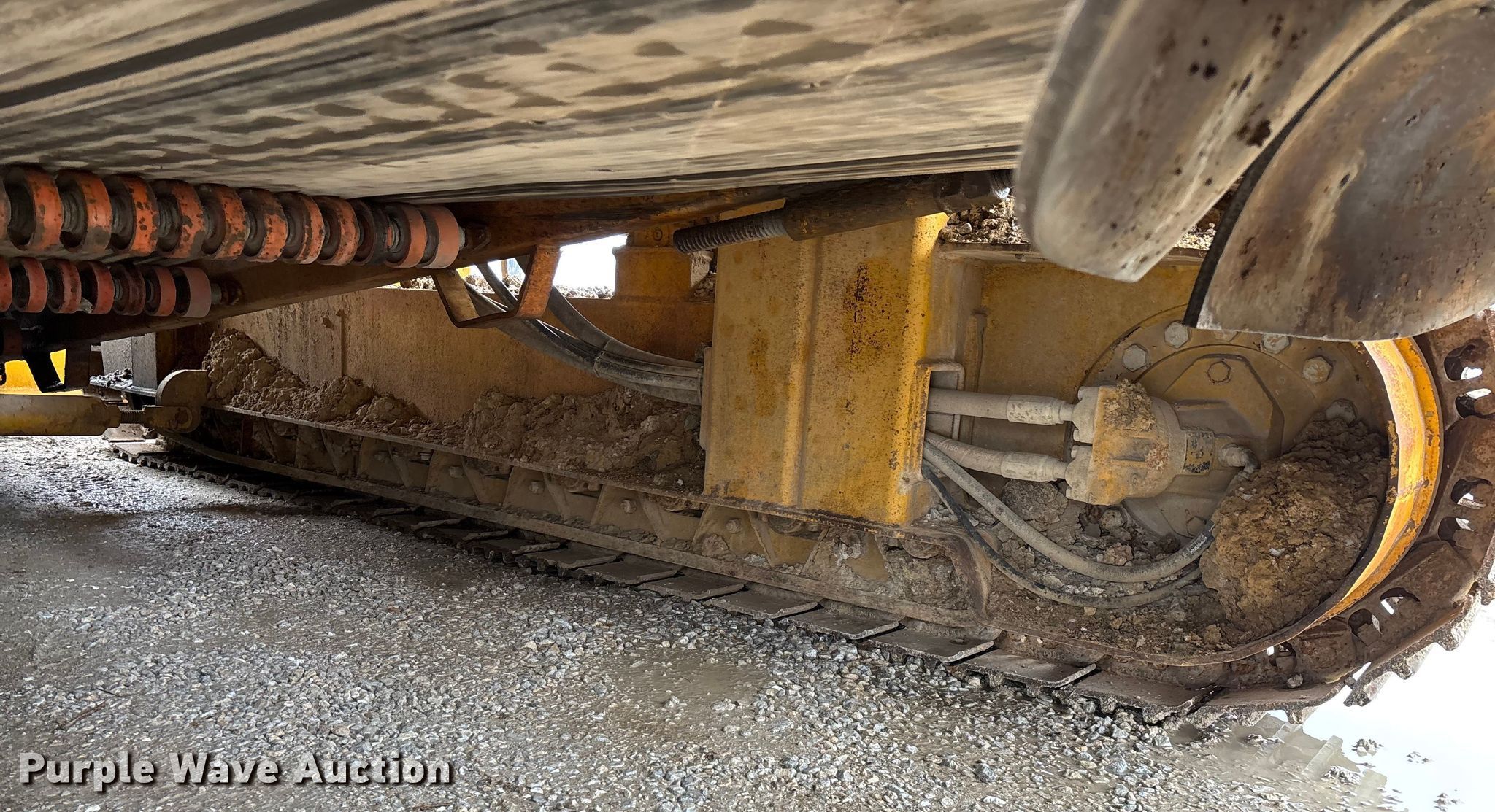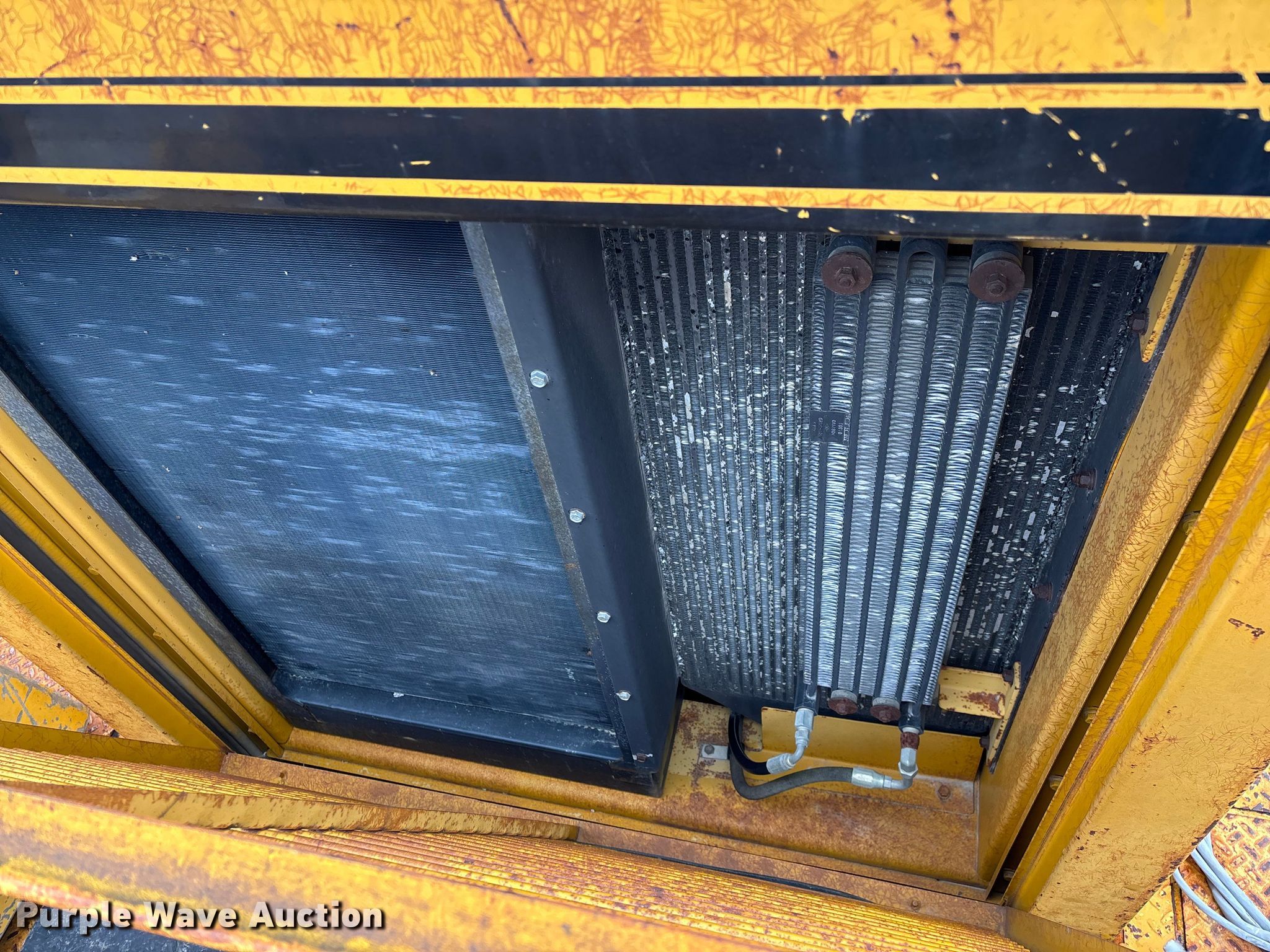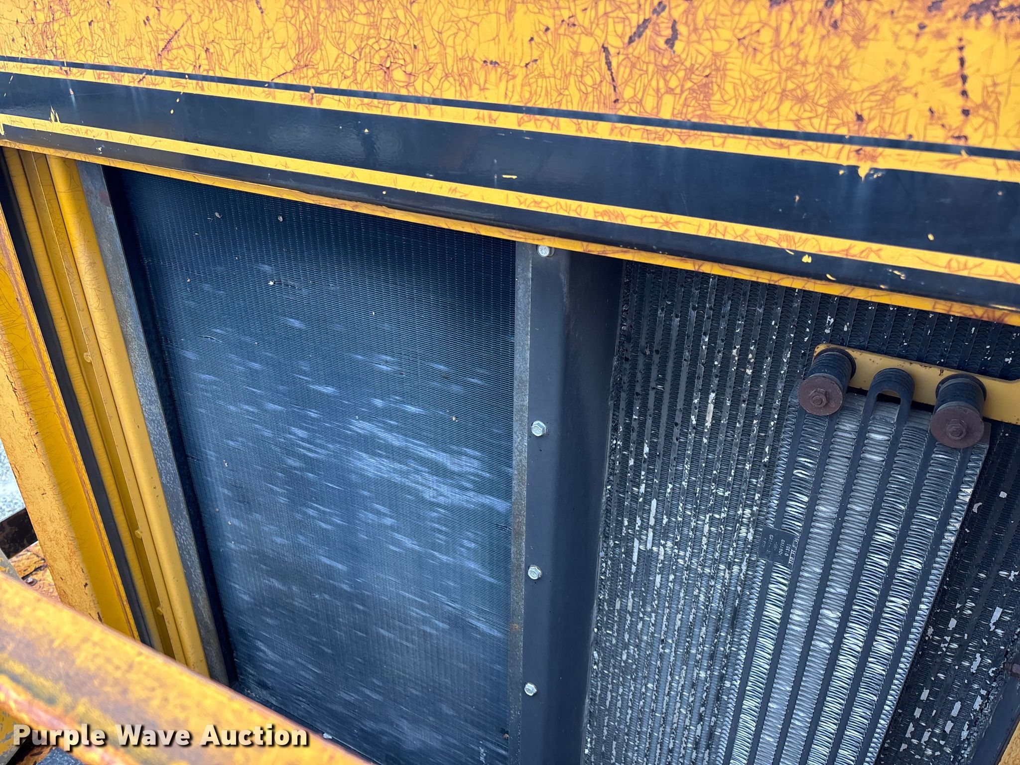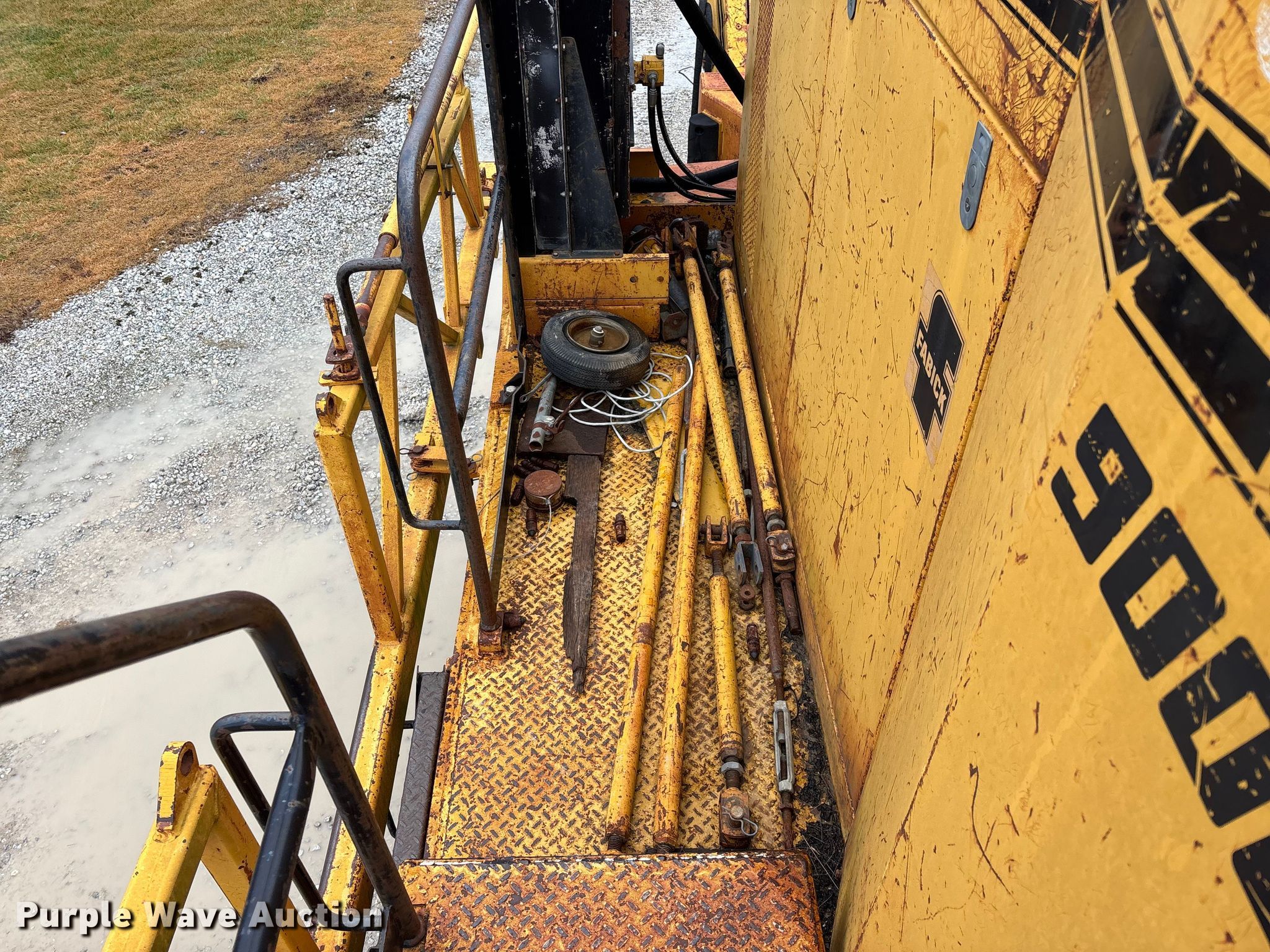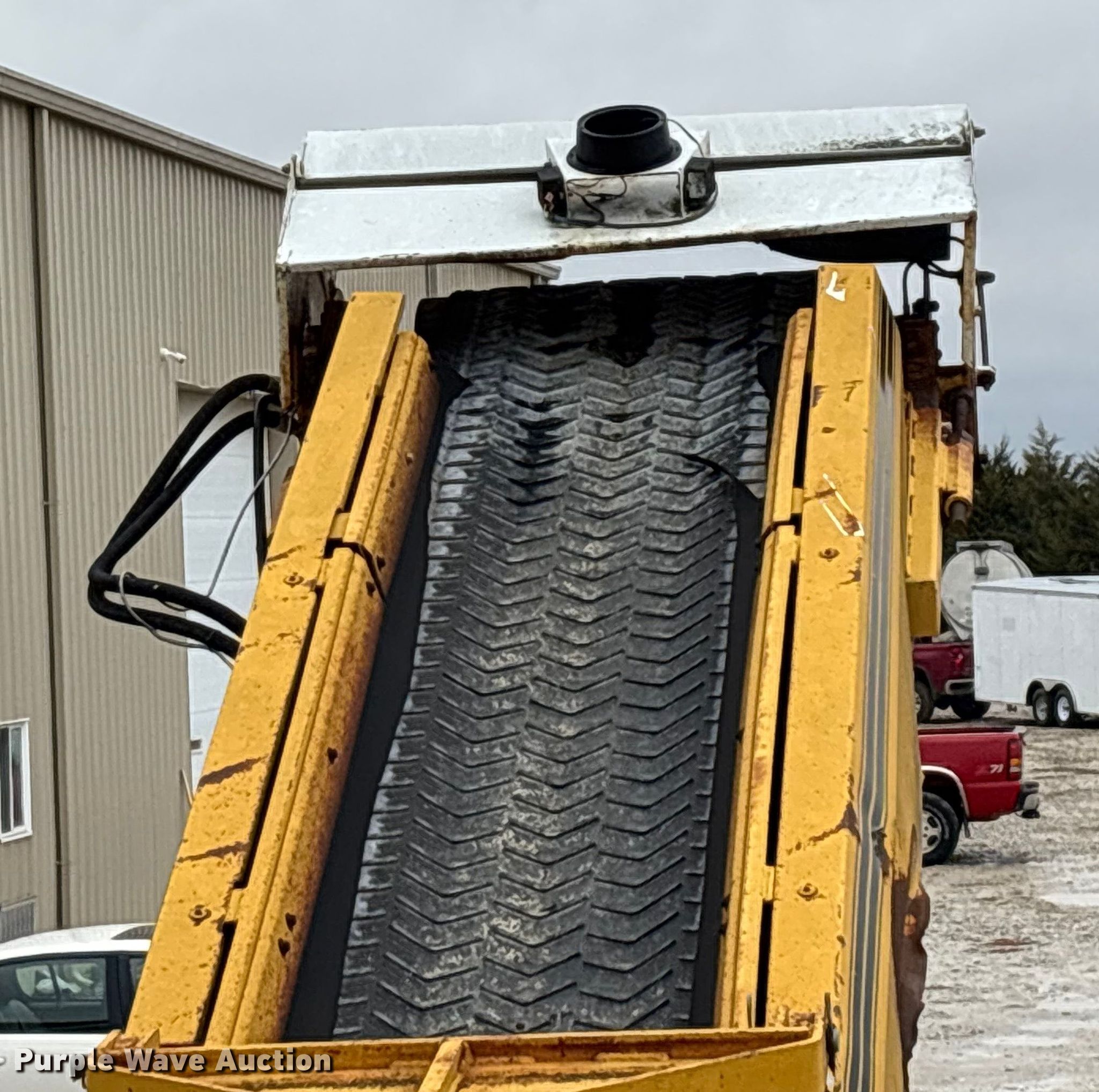Gomaco 9000 trimmer. Hours: Unknown, Serial: 909000-042. Engine Caterpillar C-10, Serial: BCX02260, Displacement: 10.3L, Cylinders: 6, Fuel type: Diesel, HP: 439, kW: 327. Transmission Hydrostatic. Features 14' trimmer head, Transfer conveyor Size: 12' 2 L x 30" W, Rear conveyor Size: 24' L x 29.5" W. Tracks Width: 13.5", Steel. Notes Hour meter illumination issues, Hydraulic hose issues. Hardy Holding Group. Pilot Grove, MO 65276