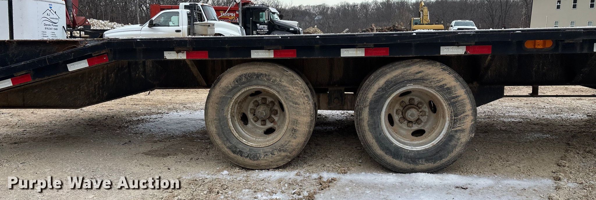 2016 PJTM equipment trailer. VIN: 4P5FD3028G1239906. Dimensions Overall Length: 39' 6", Width: 8' 5", Deck Length: 24' 9", Width: 8' 5", Deck height: 37", Tail length: 66", Ramps: Manual Length: 58". Features Deck type: Wood. Chassis Hitch: Gooseneck, Landing gear: Dual, Suspension: Spring, Brakes: Electric, Axles: Tandem. Tires Steel wheels, Size: ST235/85R16. Notes Contents not included. Missouri title. Title distribution may be delayed up to 14 days from verification of funds. Pat Turpin Excavating. Lake Ozark, MO 65049