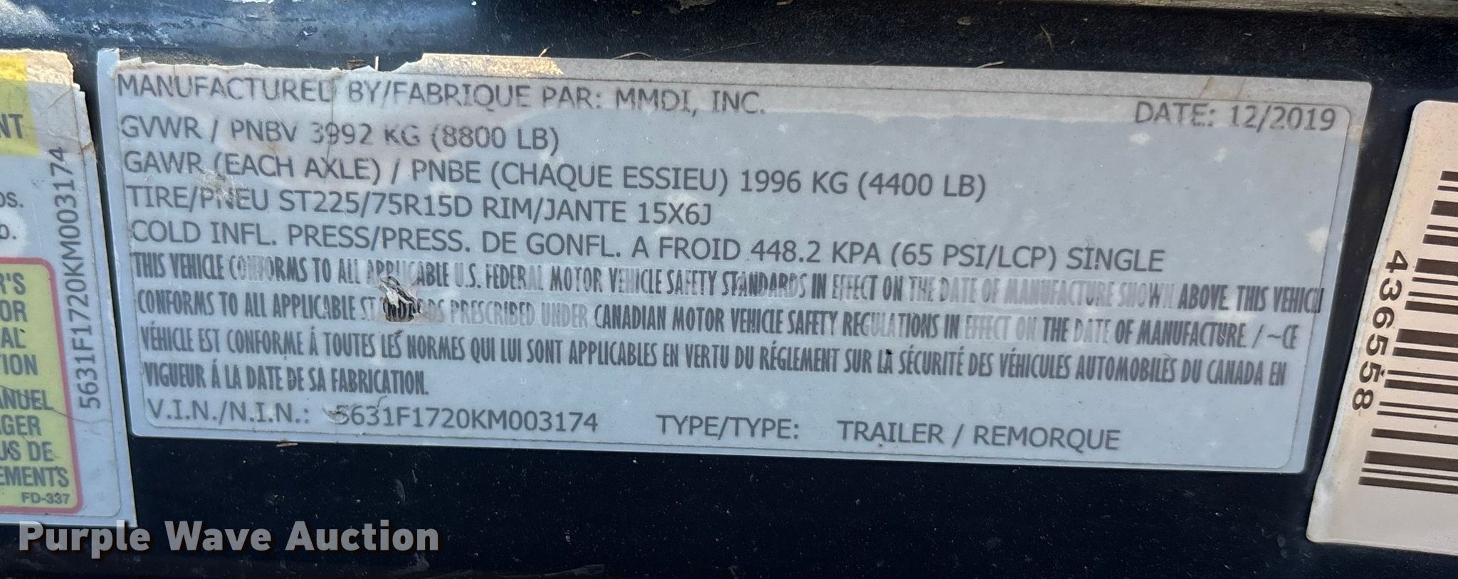 Purple Wave is selling a used Car or Utility Trailer in Nebraska. This item is a 2019 MMDI Equipment Trailer with the following: VIN: 5631F1720KM003174