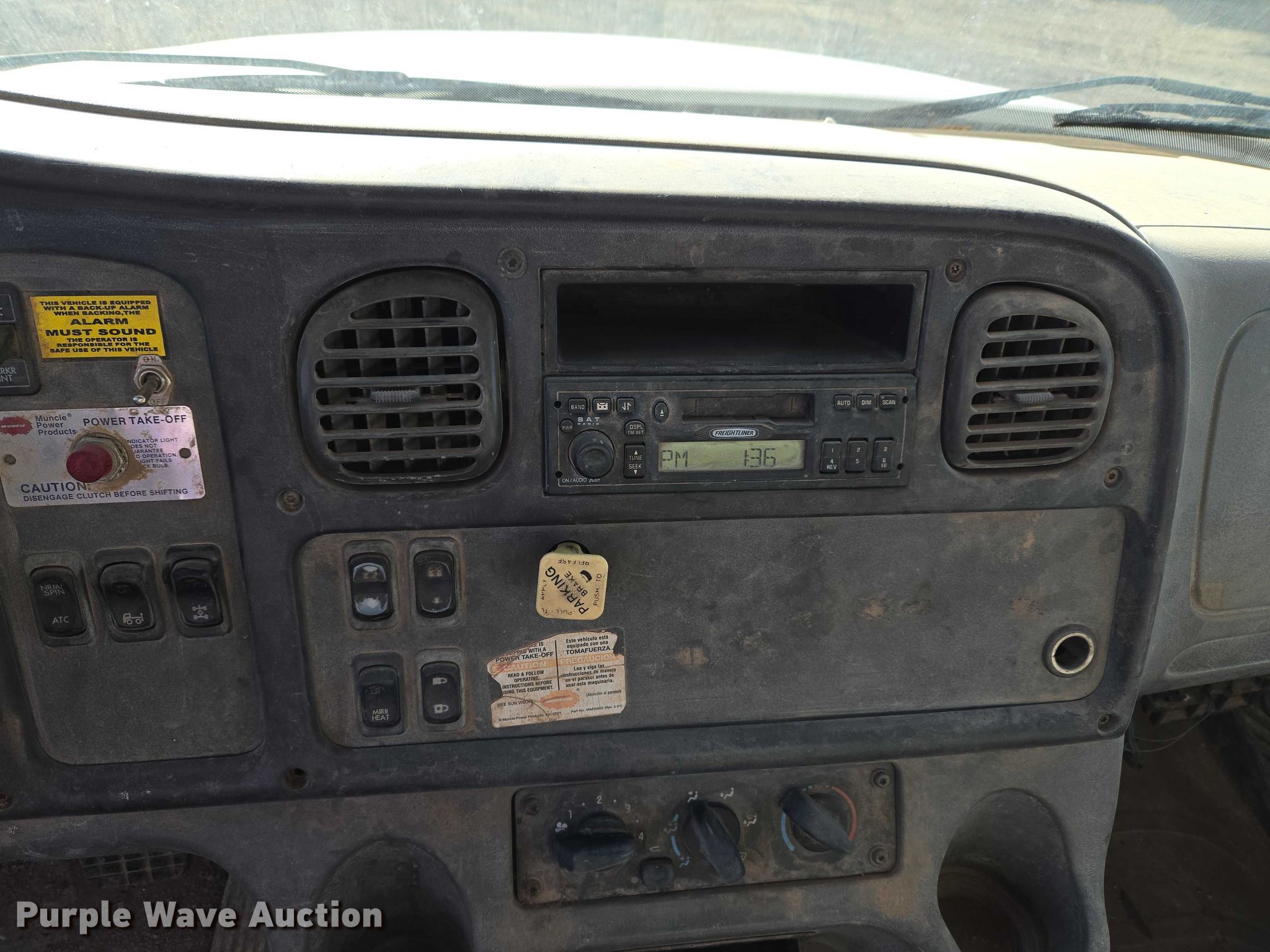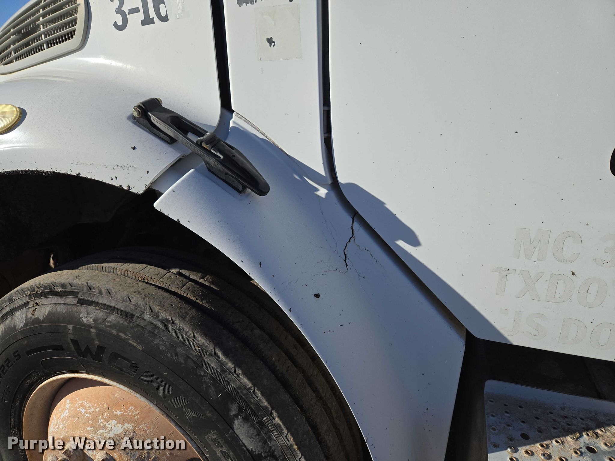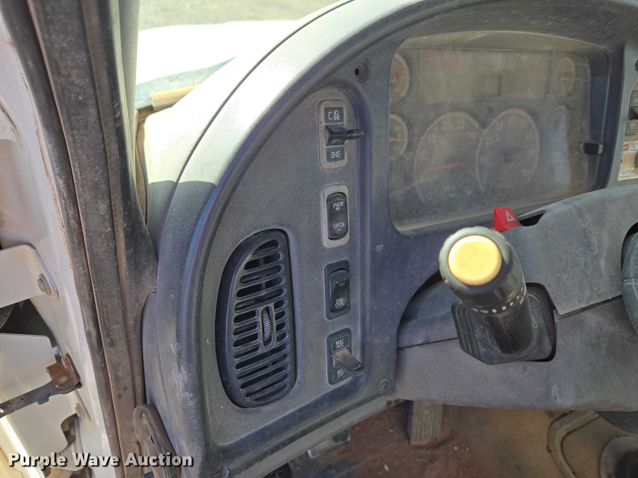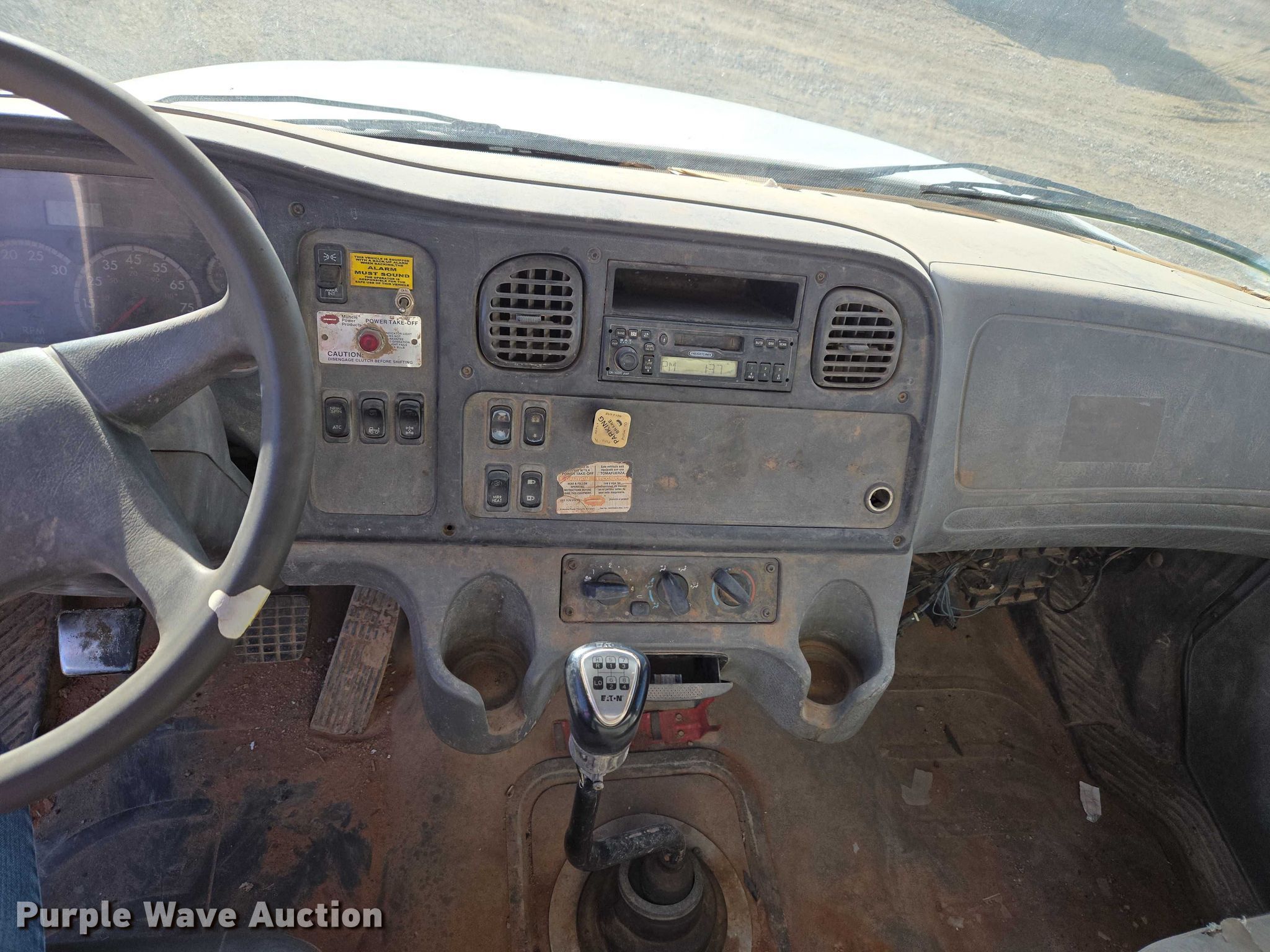 2004 Freightliner M2 water truck. Miles: 51,575 on odometer, Hours: 322 on meter, VIN: 1FVHCYDC94HM94514. Engine Caterpillar C7, Displacement: 7.2L, Cylinders: 6, Fuel type: Diesel. Transmission Eaton Fuller, Manual, Speed: 8. Chassis Axles: Tandem, Differential lock: Inter-axle, Suspension: Spring Dump valves, Brakes: Air, Hydraulic, PTO, GVWR: 53,880 lbs. Interior AC, Heat, Heated mirrors, Power windows, Power locks, Cruise control. Features Bed Tank bed, Length: 15', Width: 7' 8", Spray bar: Front, Rear, Hose reel, Top fill, Sight tube, Rear drain: 4". Tires Size: 295/75R22.5. Notes Hood latch missing. Oklahoma title. Title distribution may be delayed up to 14 days from verification of funds. Overland Corporation. 534 U.S. 77. Ardmore, OK 73401