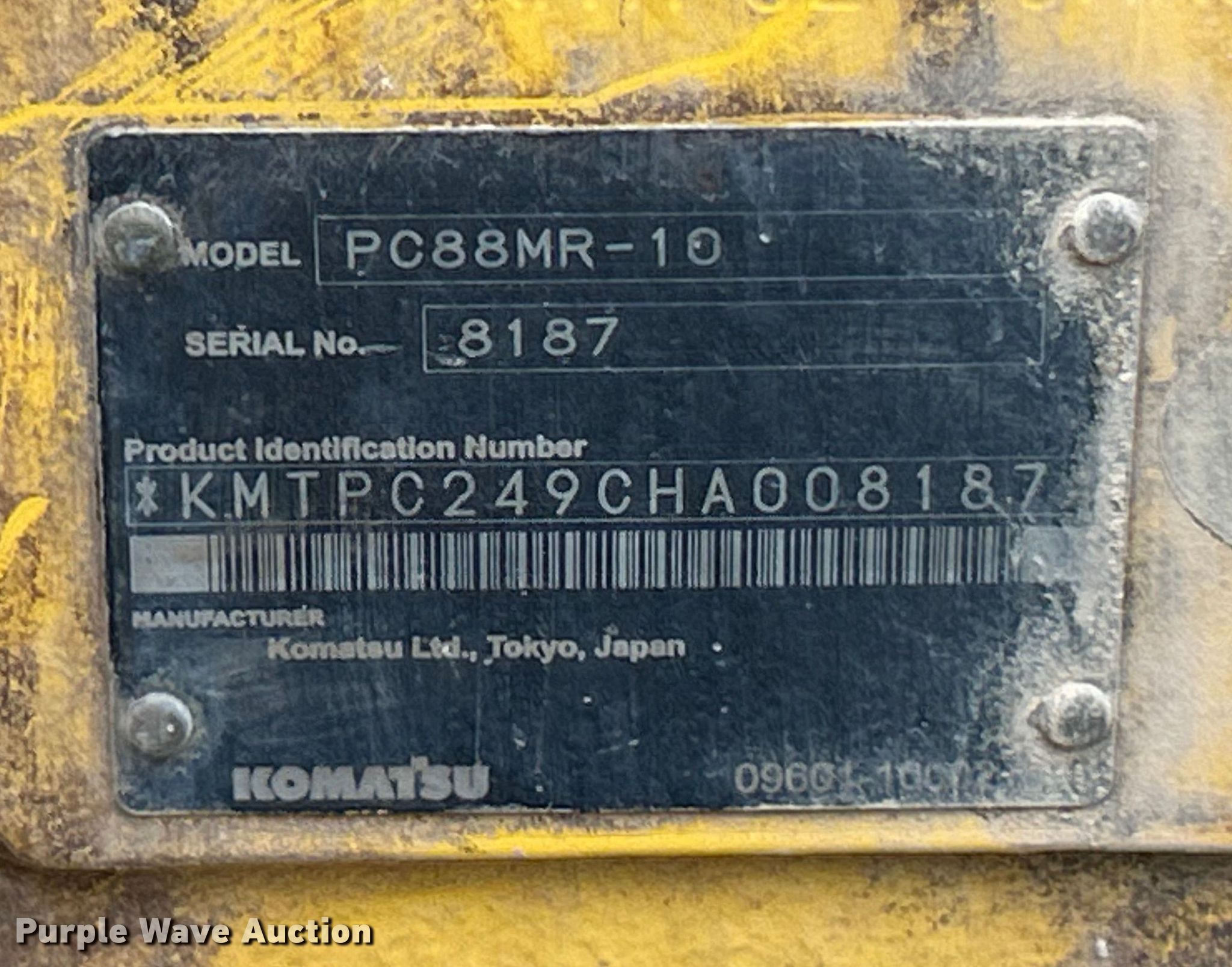 Purple Wave is selling a used Mini Excavator in Missouri. This item is a 2018 Komatsu PC88MR-10 mini excavator with the following: Hours: 8,484 on meter, Miles or hours may vary, unit still in use, Serial: KMTPC249CHA008187