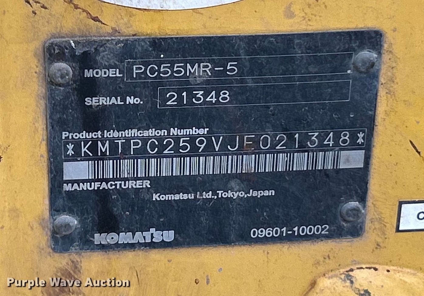 Purple Wave is selling a used Mini Excavator in Missouri. This item is a 2020 Komatsu PC55MR-5 mini excavator with the following: Hours: 4,502 on meter, Miles or hours may vary, unit still in use, Serial: KMTPC259VJE021348