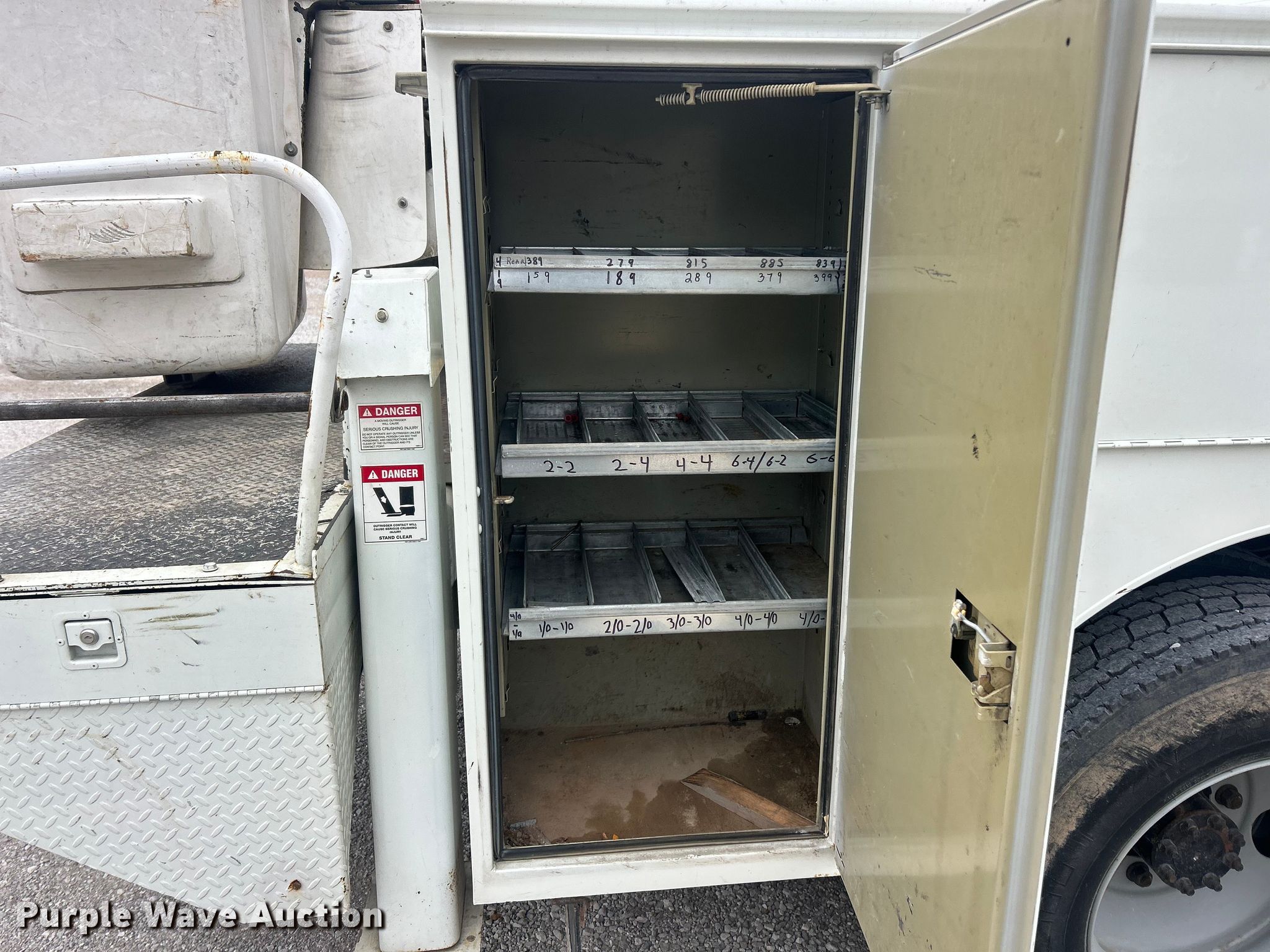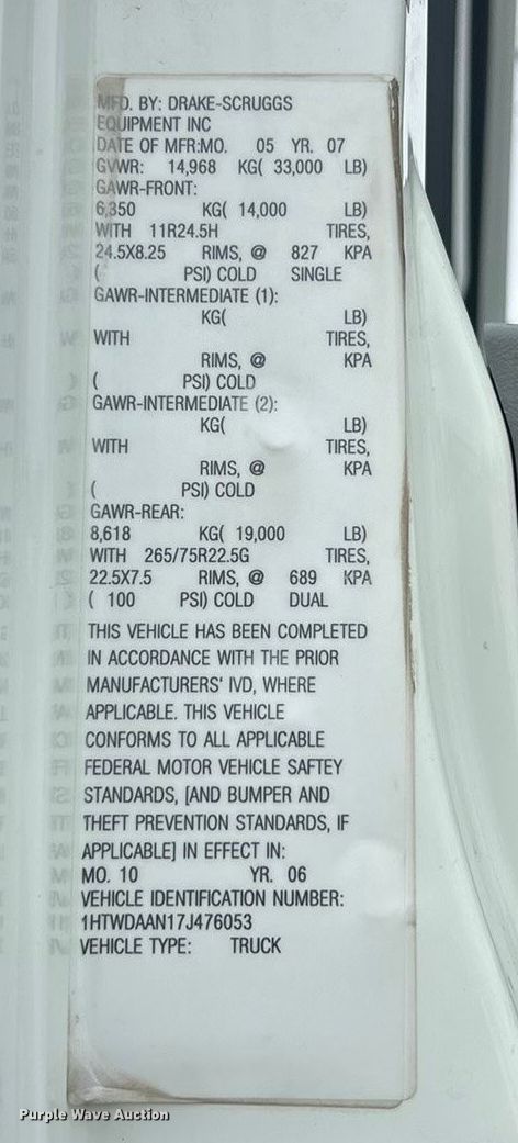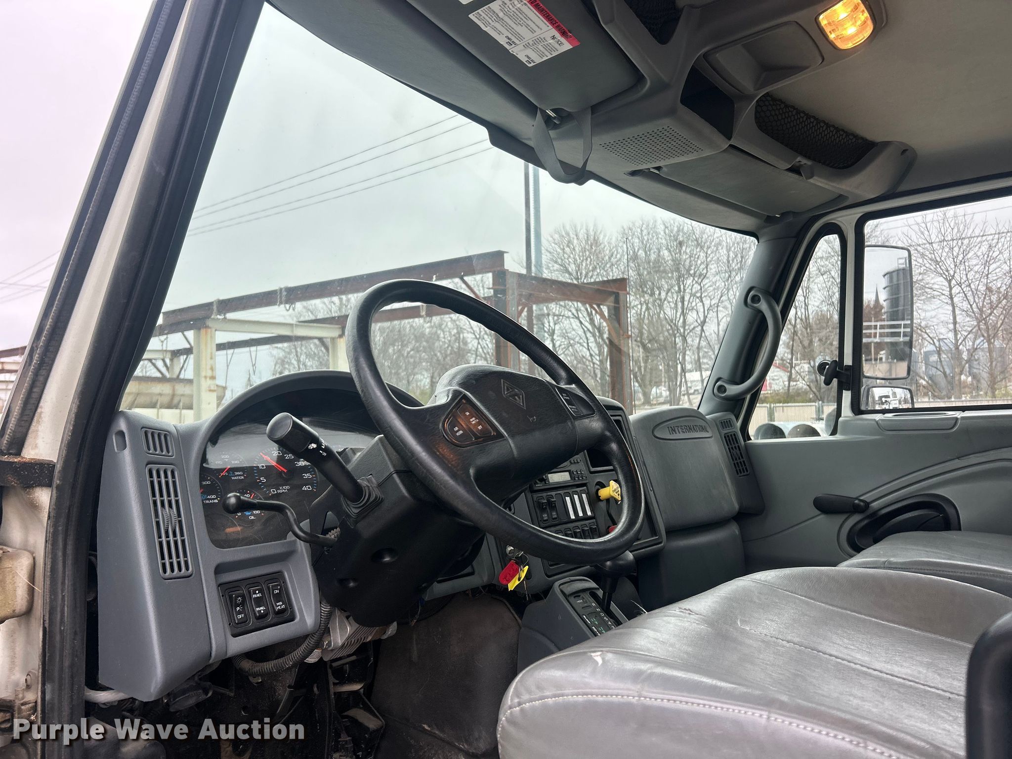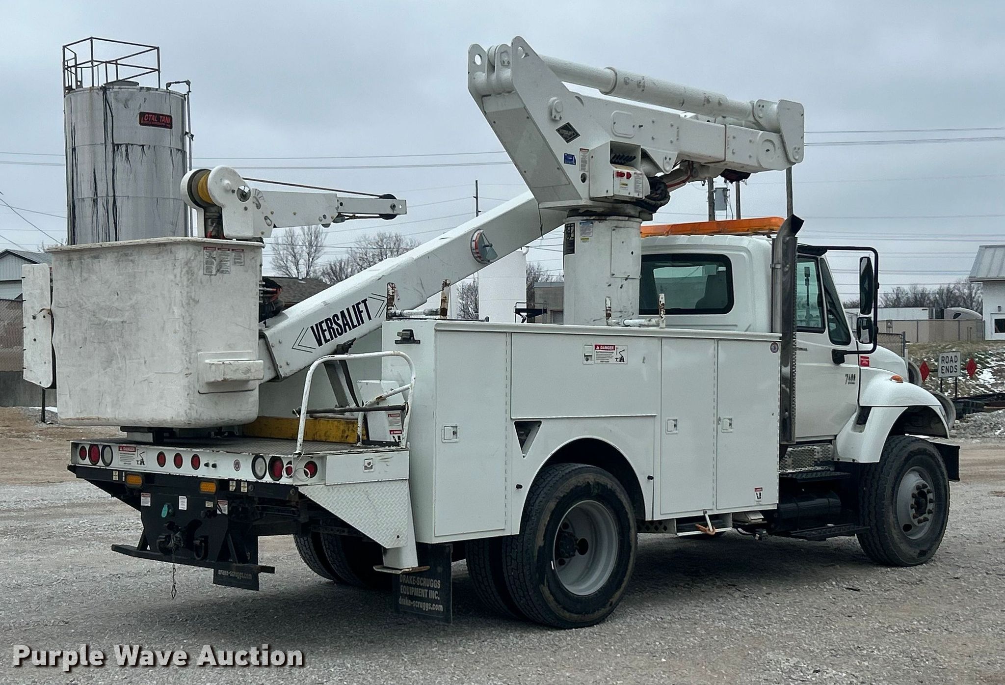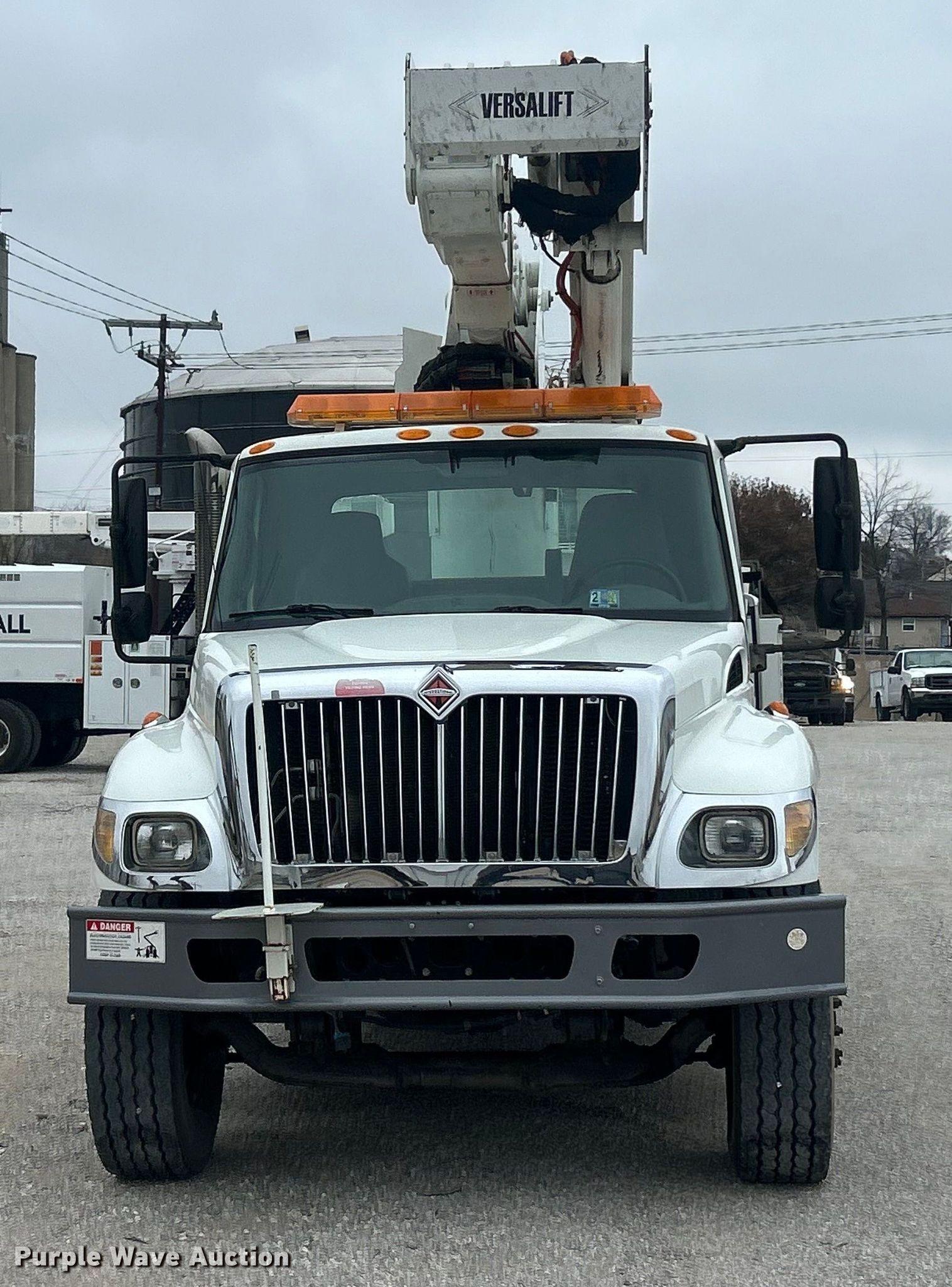 2007 International 7400 bucket truck. Miles: 23,333 on odometer, Hours: 4,571 on meter, VIN: 1HTWDAAN17J476053. Engine International DT466, Displacement: 7.64L, Cylinders: 6, Fuel type: Diesel. Transmission Allison, Automatic. Chassis Axles: Single, Suspension: Spring, Brakes: Air, PTO, GVWR: 33,000 lbs. Interior AC, Heat, Heated mirrors, Cruise control. Features Bed Utility bed, Knapheide, Length: 11', Width: 94", Boom 2006 Versalift VST-5000I01, Serial: GG060076, Maximum lift capacity: 500 lbs, Maximum lift height: 50', Boom type: Articulating, Insulated, Telescopic, Man basket, Boom controls Ground, Platform/ basket, Material handler. Tires Front: 315/80R22.5, Rear: 11R22.5. Illinois title. Title distribution may be delayed up to 14 days from verification of funds. Waterloo, IL 62298
