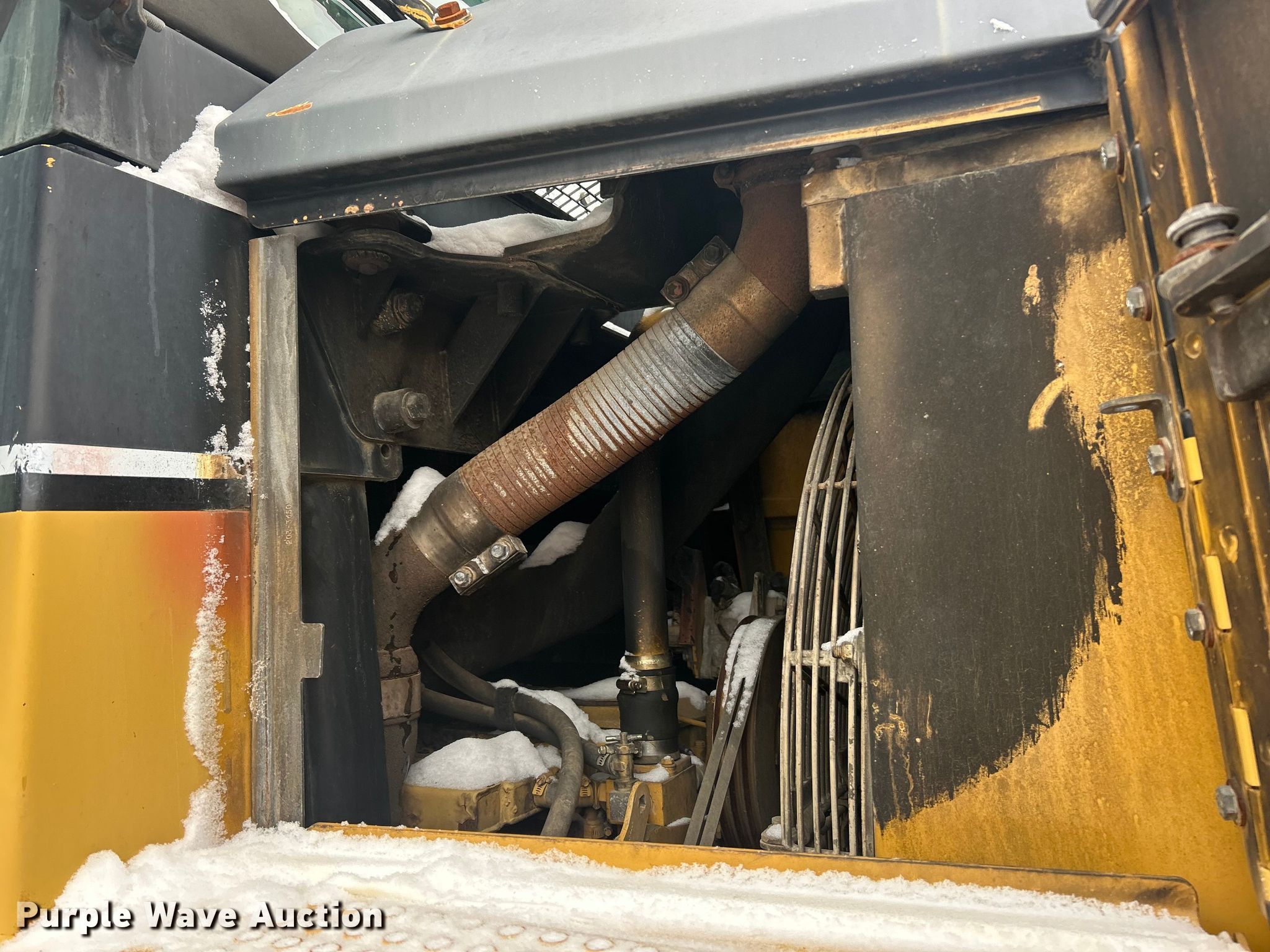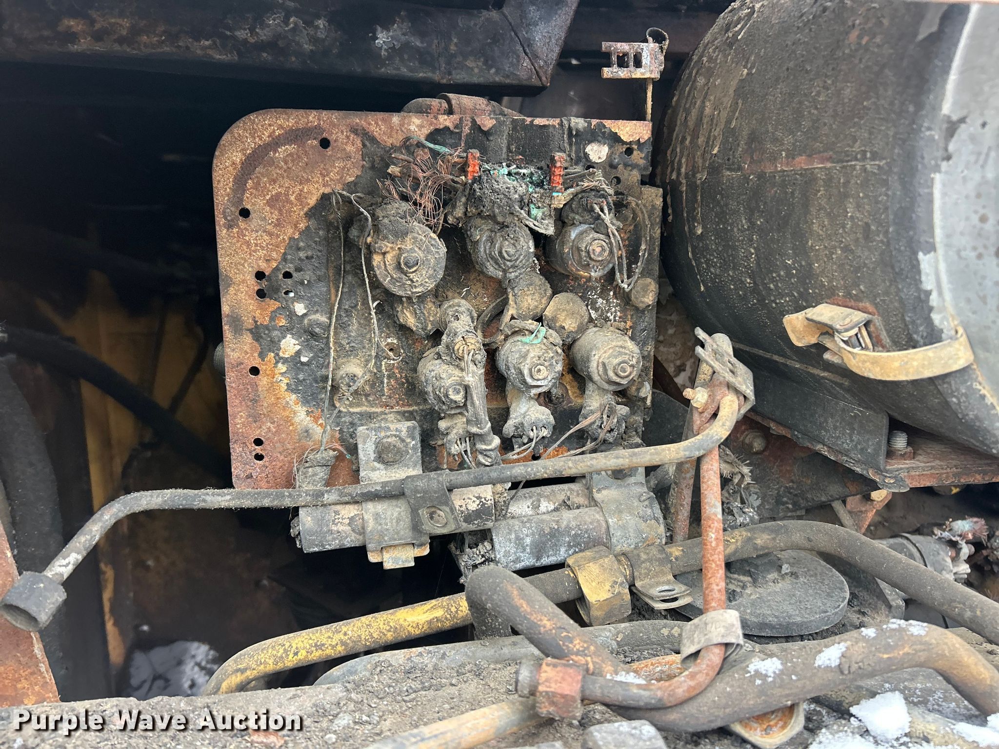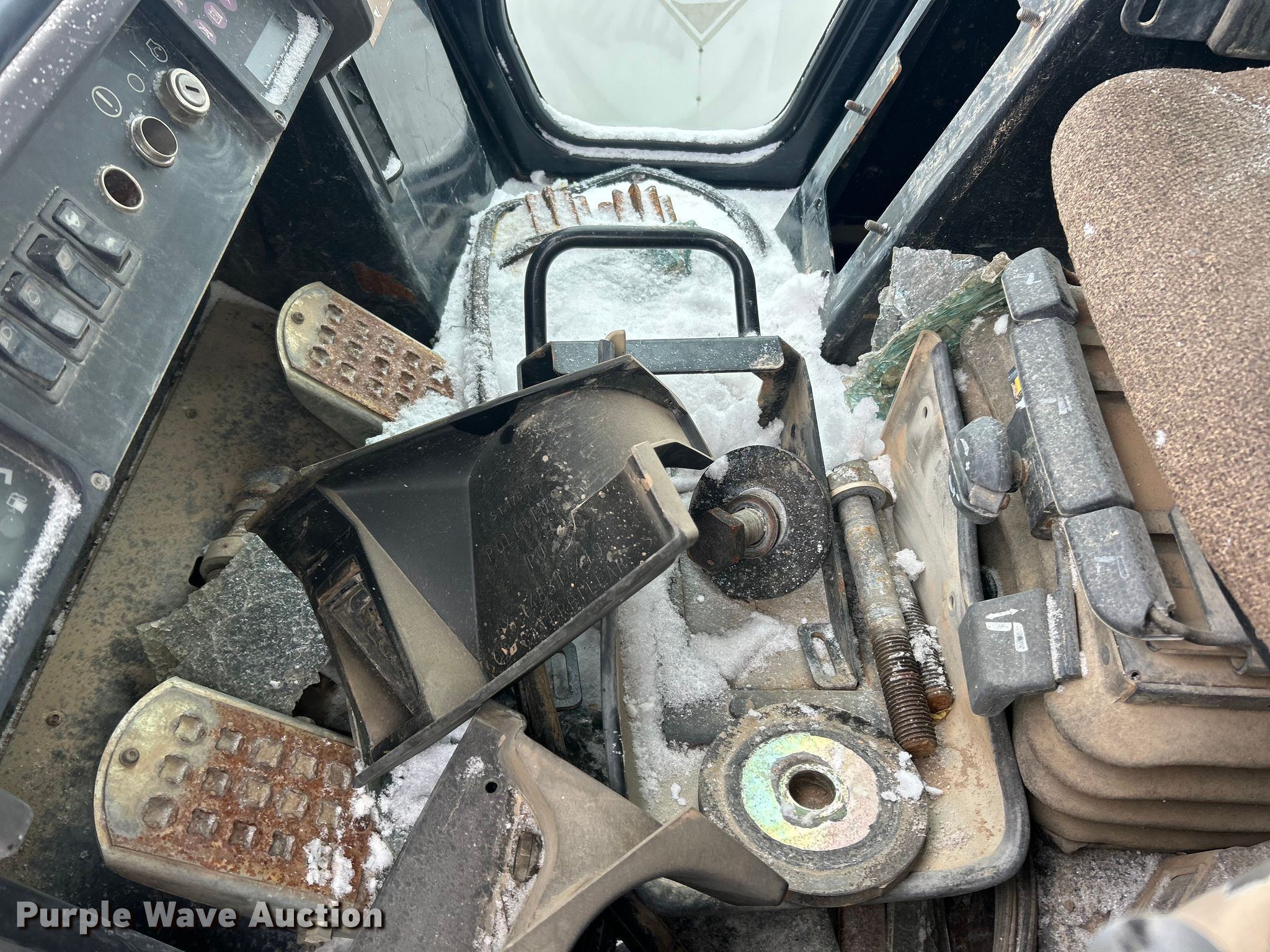 Caterpillar 963C track loader. Hours: Unknown, Serial: CAT0963CK2DS02086. Engine Caterpillar, Cylinders: 6, Fuel type: Diesel. Transmission Hydrostatic, Two speed travel. Operators station Enclosed cab, AC, Heat. Features Bucket Width: 97". Tracks Width: 21.4", Grouser pads: Double. Notes Burn damaged, Drive motors missing, Glass missing, Non-operational unit. Kuesel Excavating Company. O'Fallon, MO 63366