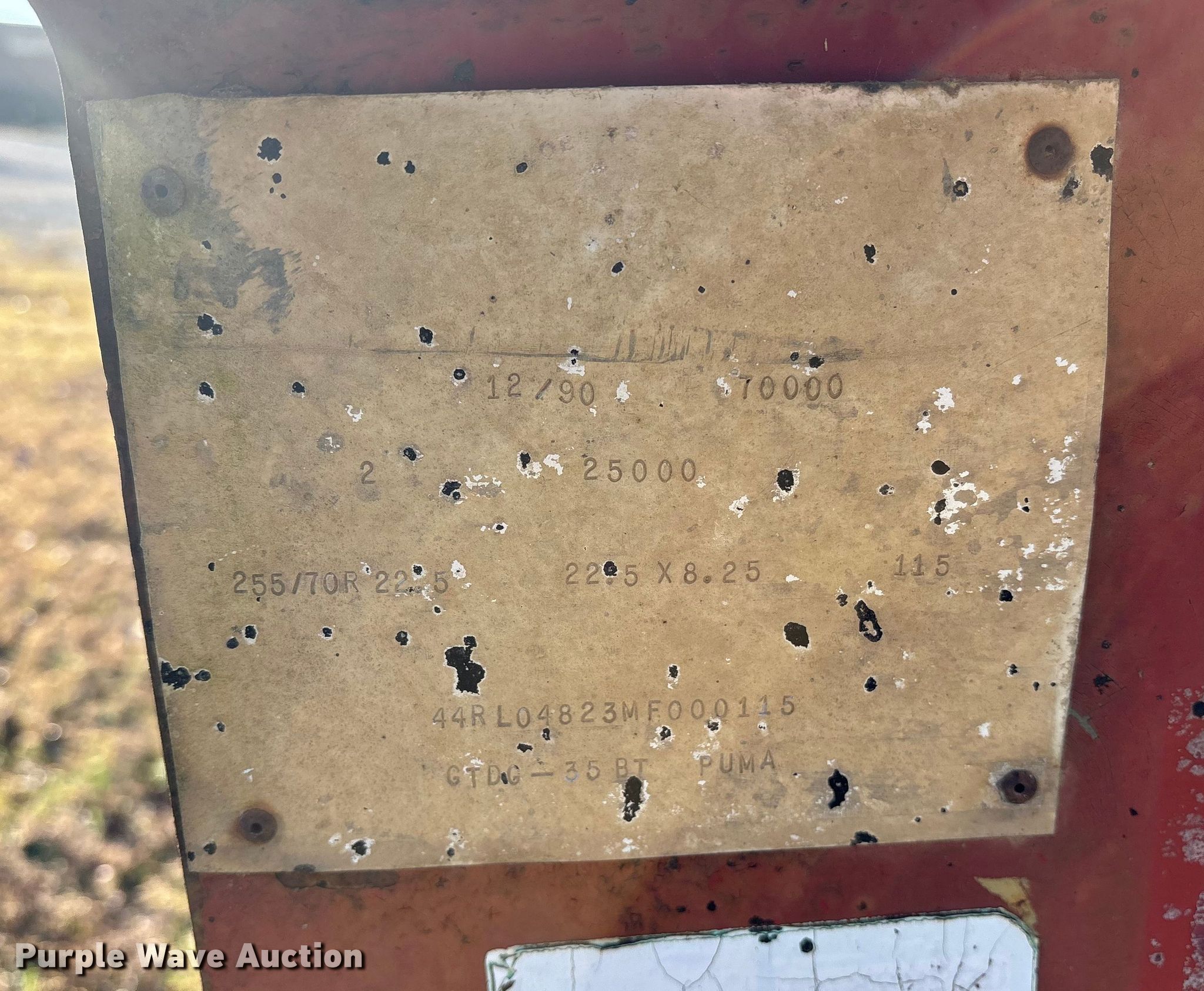 Purple Wave is selling a used Equip. Trailer in Oklahoma. This item is a 1991 Globe GTDG-35 BT Puma lowboy equipment trailer with the following: VIN: 44RL04823MF000115
