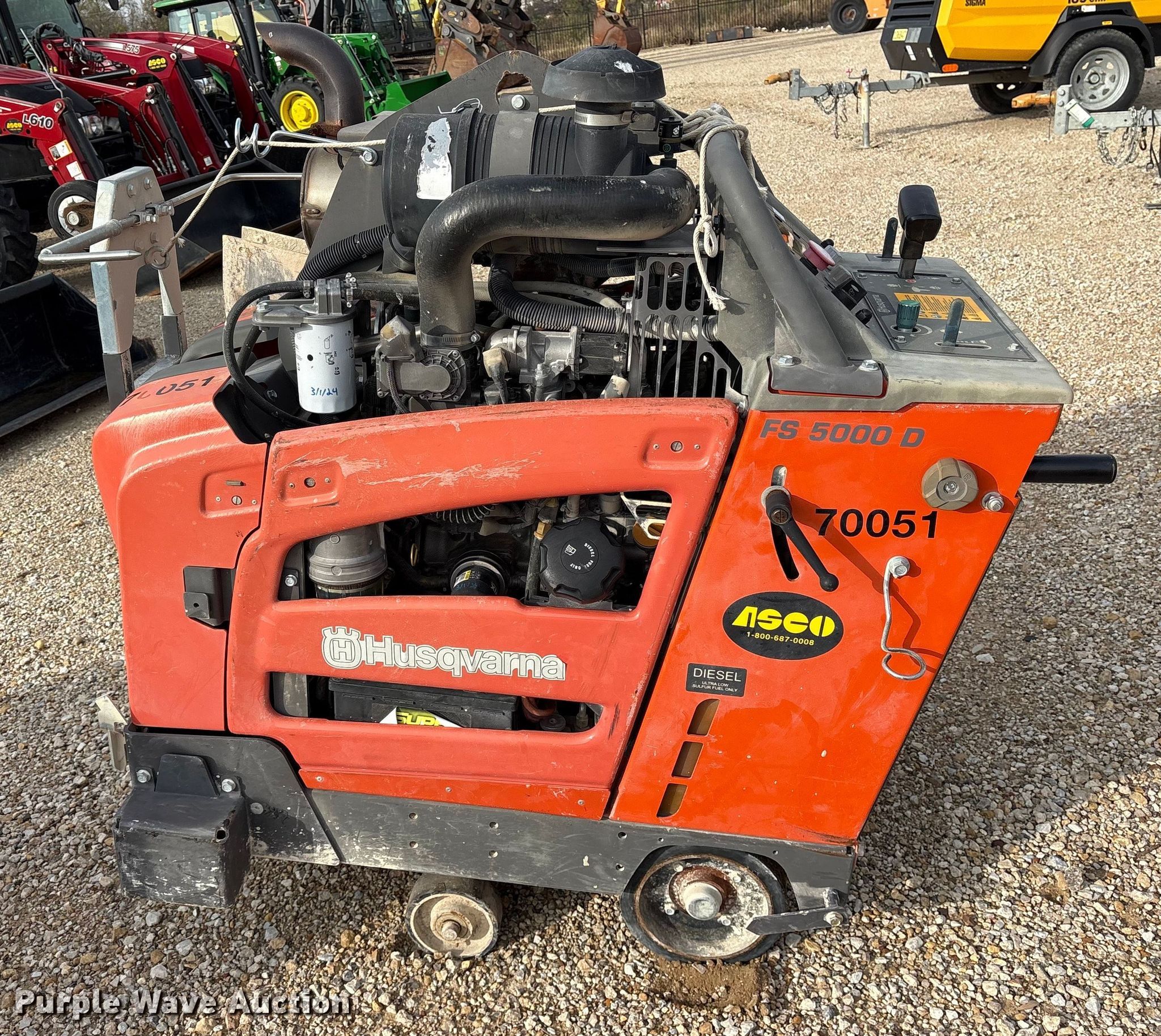 2016 Husqvarna FS 5000 D concrete saw. Hours: 298 on meter, Serial: 1391743002, Unit #: 70051. Engine Yanmar 4TNV88C-DHQ, Serial: 82751, Displacement: 2.190L, Cylinders: 4, Fuel type: Diesel. Transmission Hydrostatic. ASCO Equipment. Aubrey, TX 76227