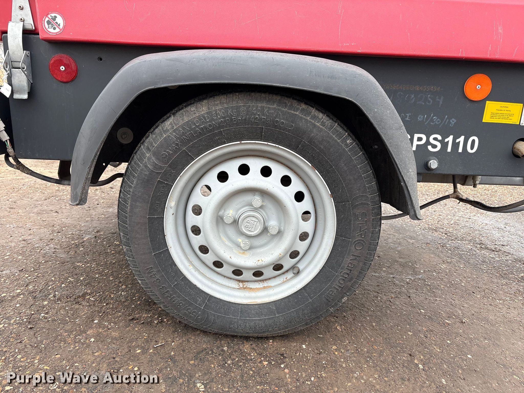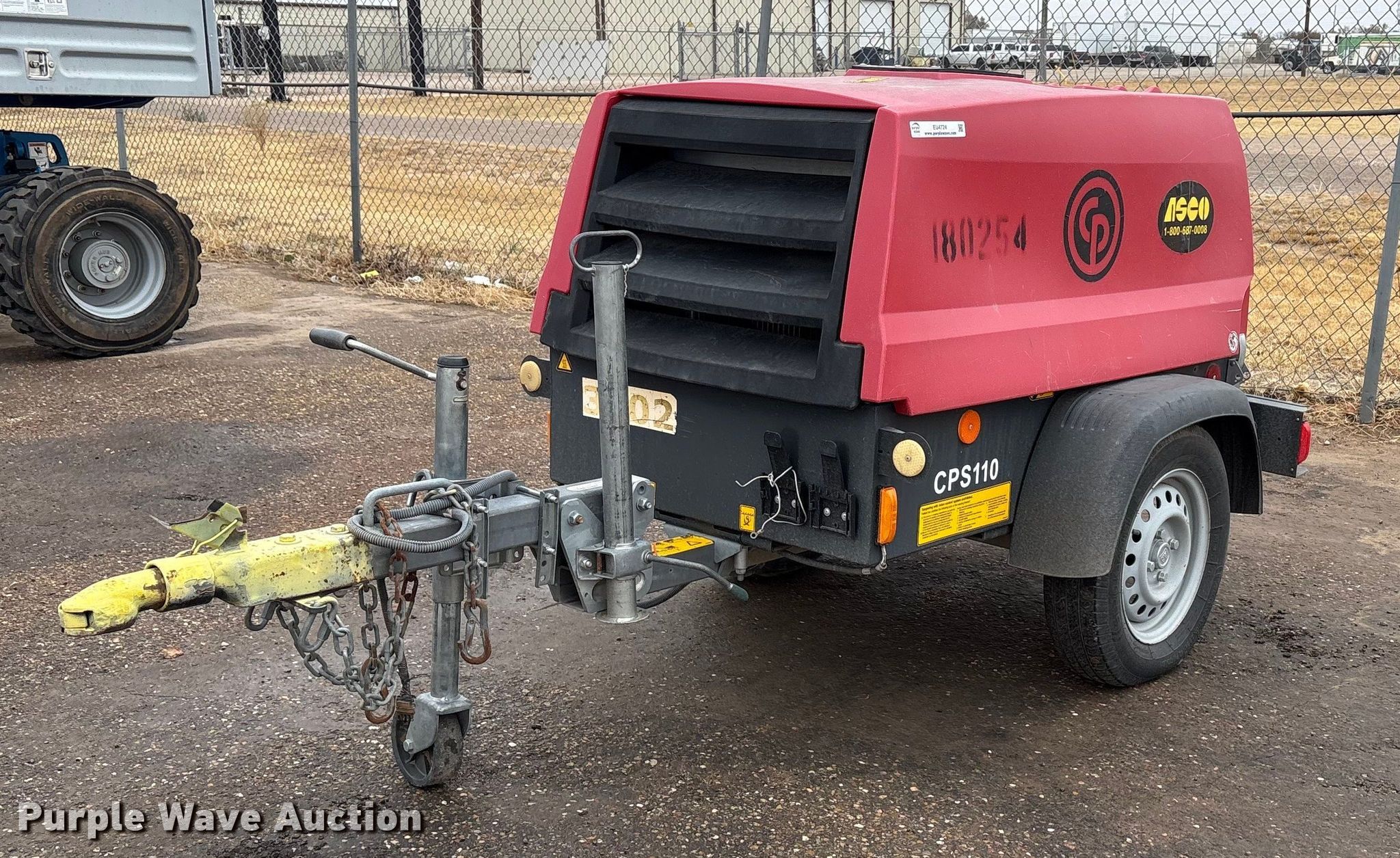 2017 Atlas Copco Airpower CPS110 air compressor. Hours: 1,148 on meter, VIN: YA3064288H0499494, Serial: APP499494. Engine Kubota D902, Serial: 4HR1323, Cylinders: 3, Fuel type: Diesel. Features Air compressor Chicago pneumatic CPS110, PSI: 100. Trailer Ball hitch size: 2", Axles: Single, Tire size: 155/80R13. Notes Non-operational hood struts. This is worksite support equipment and will not come with a title. Transfer of ownership documentation will be a bill of sale. ASCO Equipment. Lubbock, TX 79404