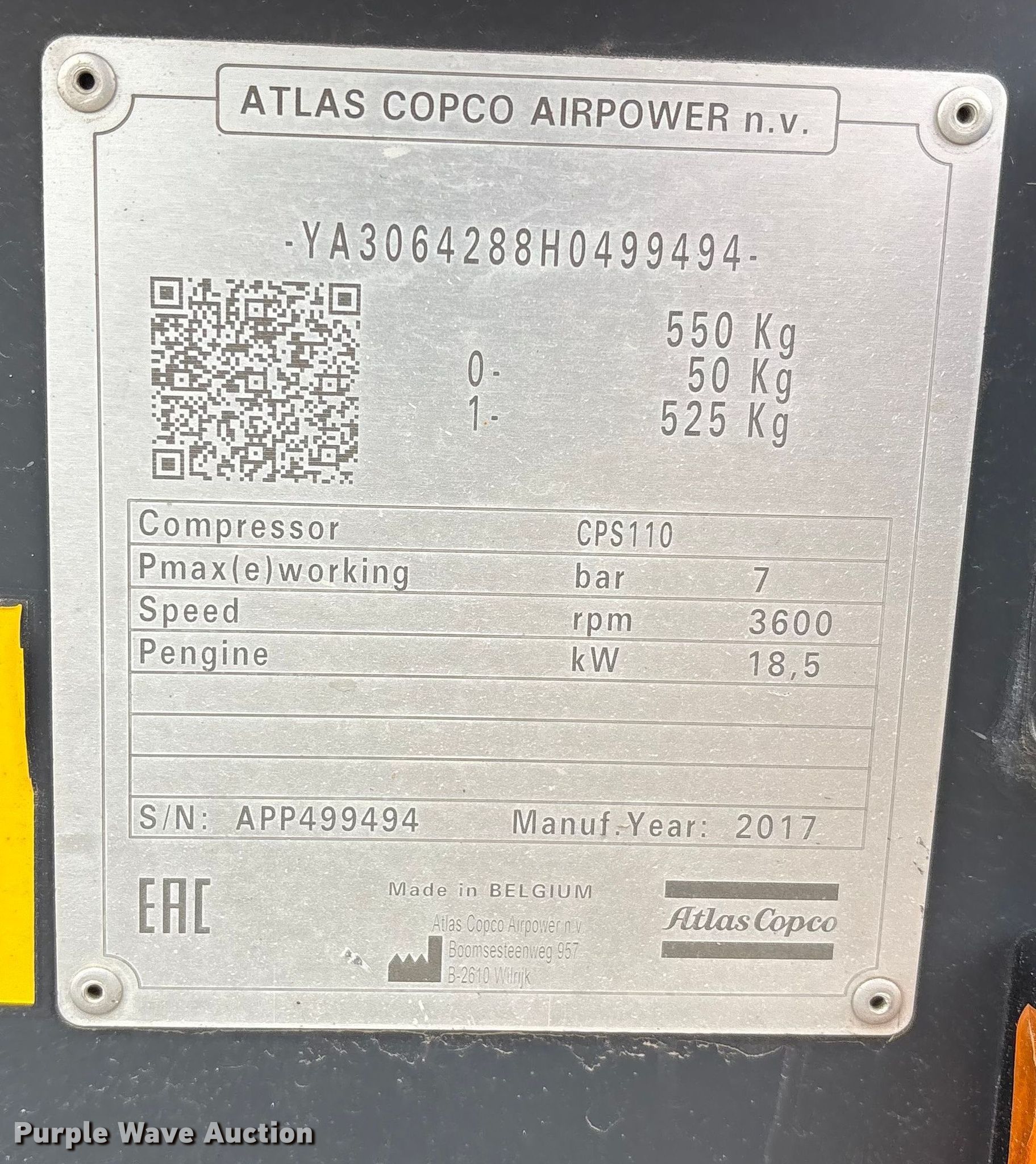 2017 Atlas Copco Airpower CPS110 air compressor | Wednesday December 31 Construction Equipment Auction