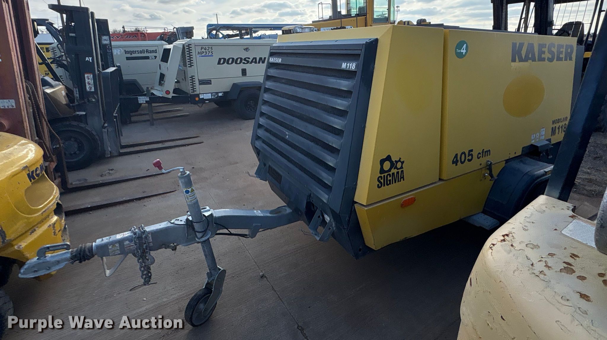 2022 Kaeser M118 air compressor. Hours: 1,429 on meter, VIN: WKAOF2203N8467107, Serial: 1055 - 8467107. Engine Deutz TCD 3.6, Serial: 12490792, Cylinders: 4, Fuel type: Diesel. Features Air compressor Kaeser Kompressoren M118, CFM: 405, PSI: 145. Trailer Ball hitch size: 2", Brakes: Hydraulic, Axles: Single, Tire size: 215/75R14, GVWR: 4,462 lbs, GAWR: 4,850 lbs. Notes Unknown operating condition. This is worksite support equipment and will not come with a title. Transfer of ownership documentation will be a bill of sale. ASCO Equipment. Lubbock, TX 79404