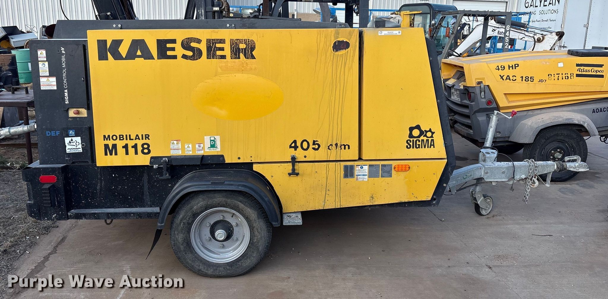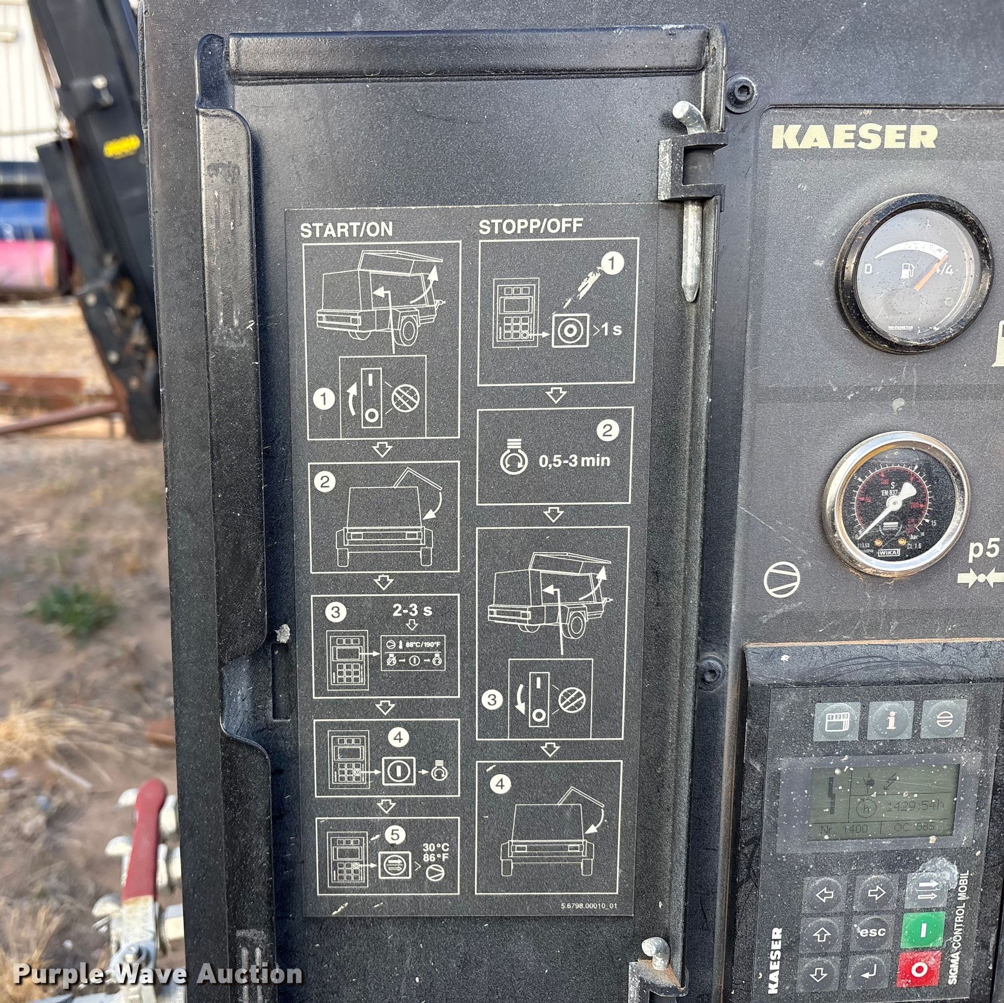 Purple Wave is selling a used Air Compressor in Texas. This item is a 2022 Kaeser M118 air compressor with the following: Hours: 1,429 on meter, VIN: WKAOF2203N8467107, Serial: 1055 - 8467107