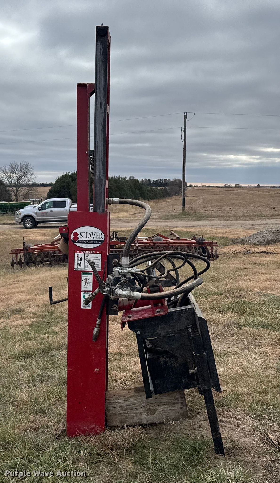 Purple Wave is selling a used Skid Steer Attach. in Nebraska. This item is a Shaver HD-10 skid steer post driver with the following: Serial: 31122, Post driver, Front and back tilt, Side tilt, Post size: 8 x 8