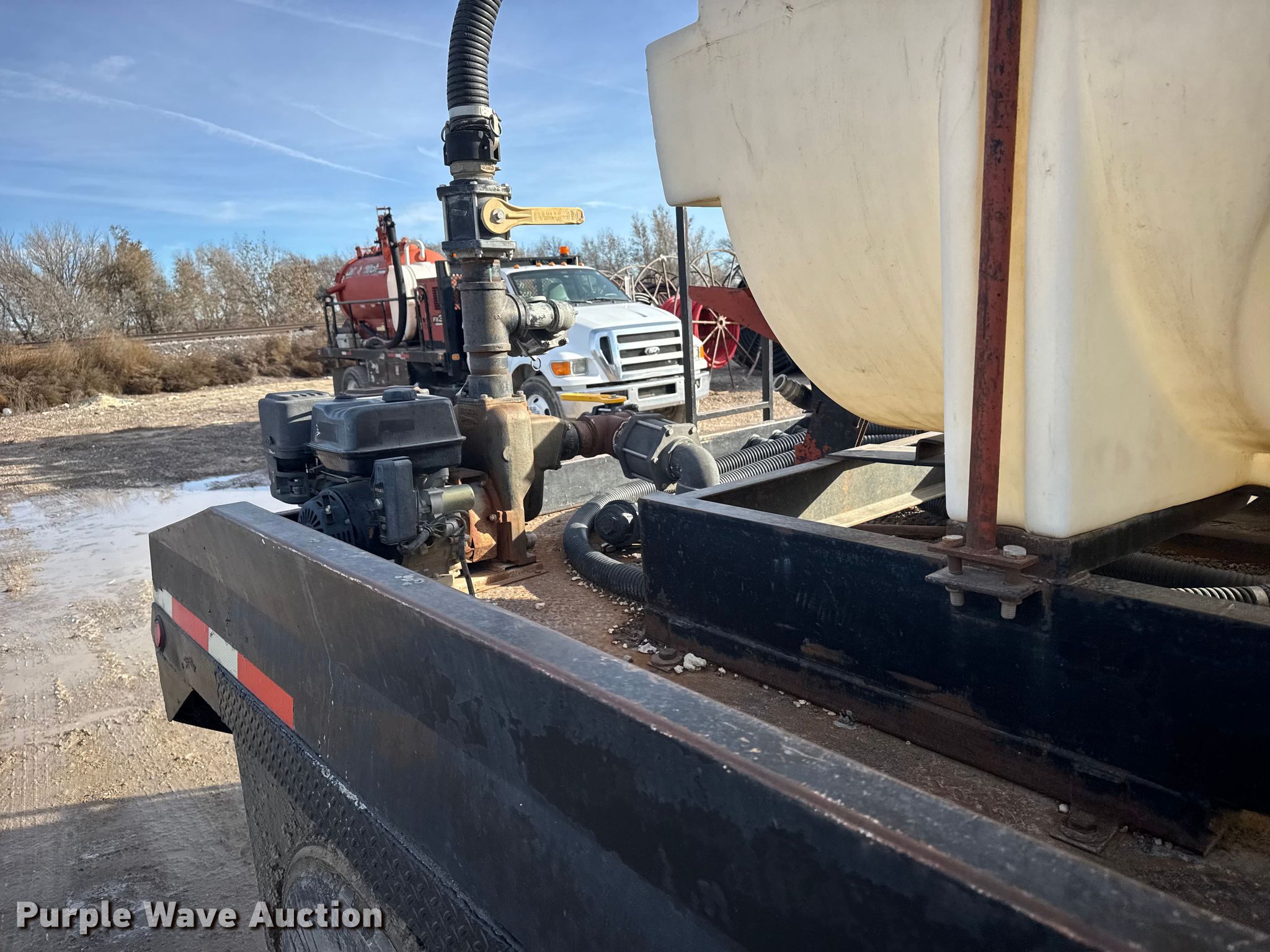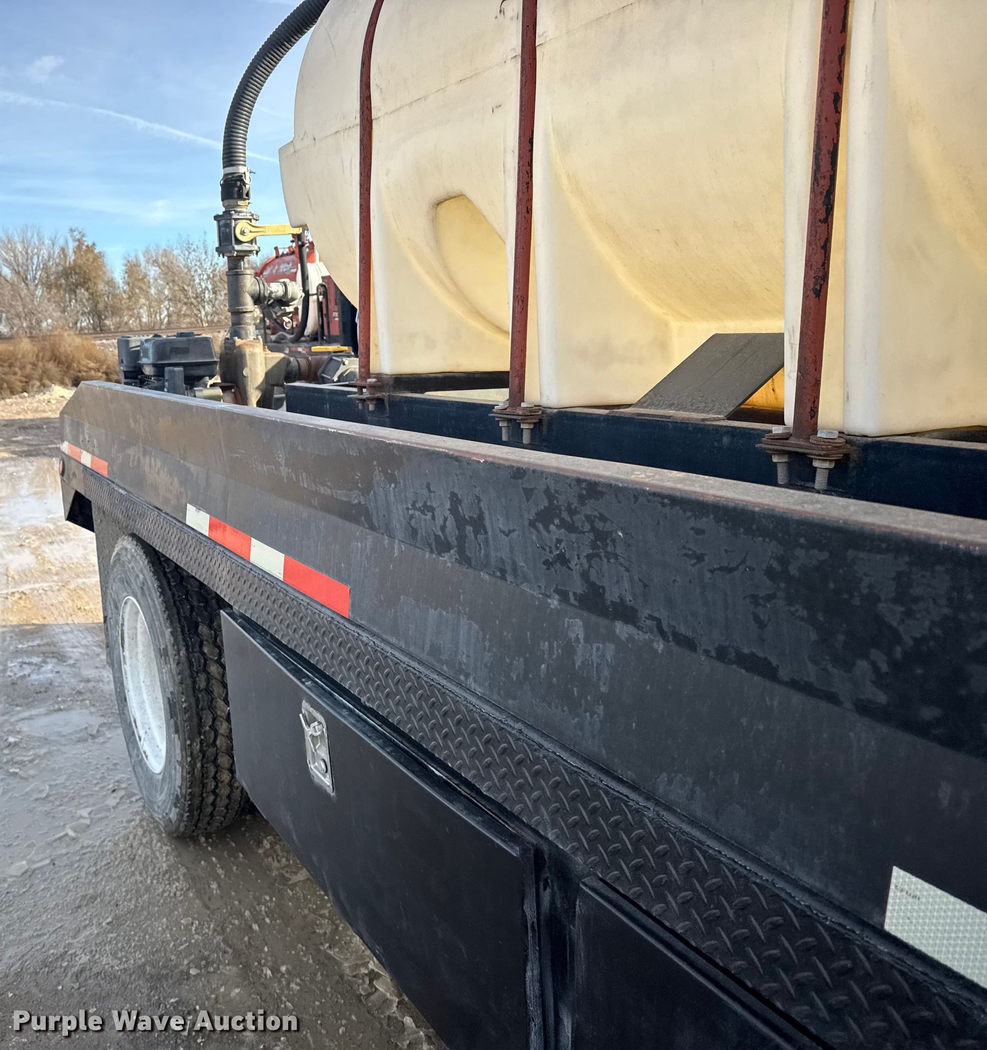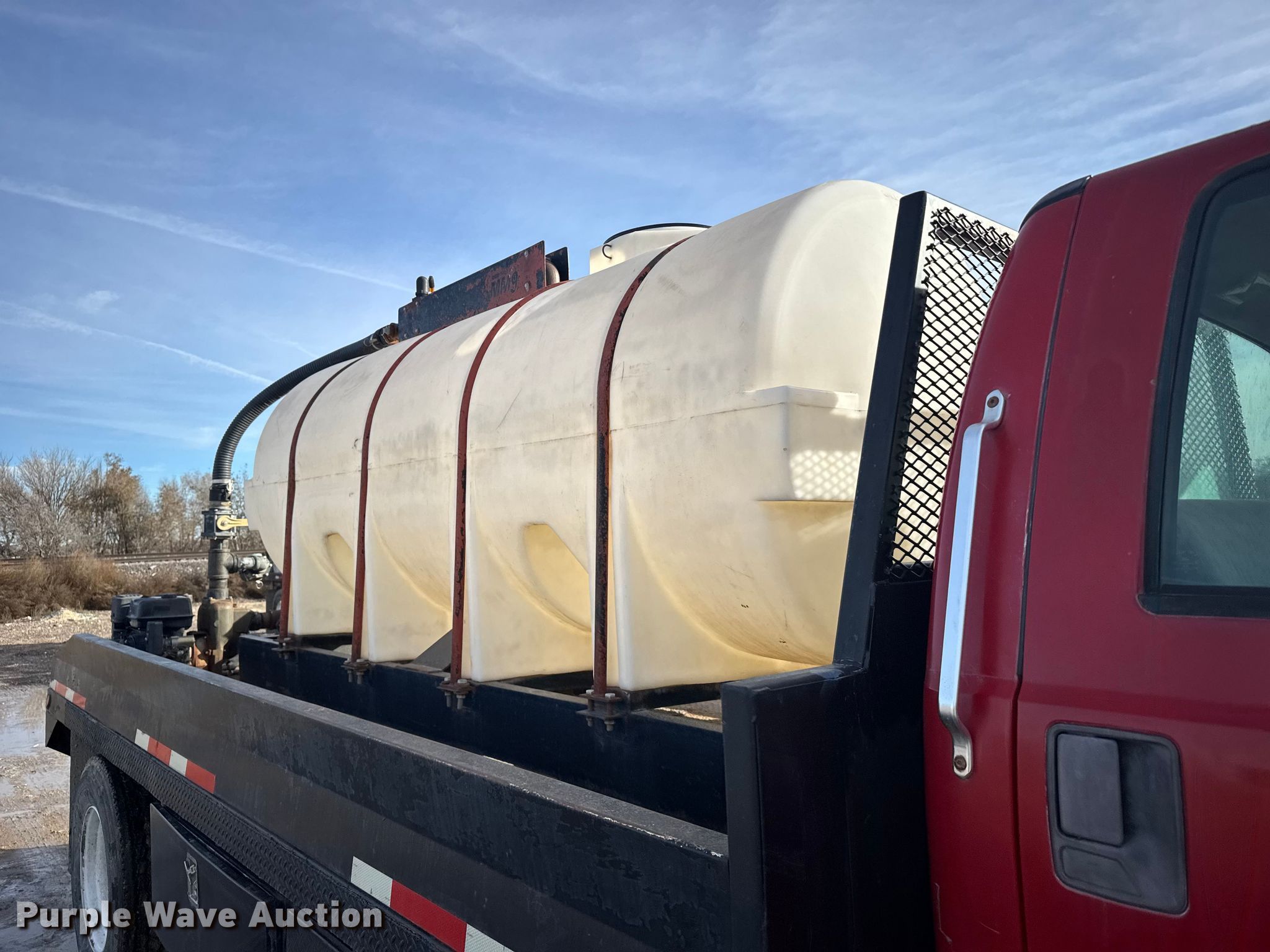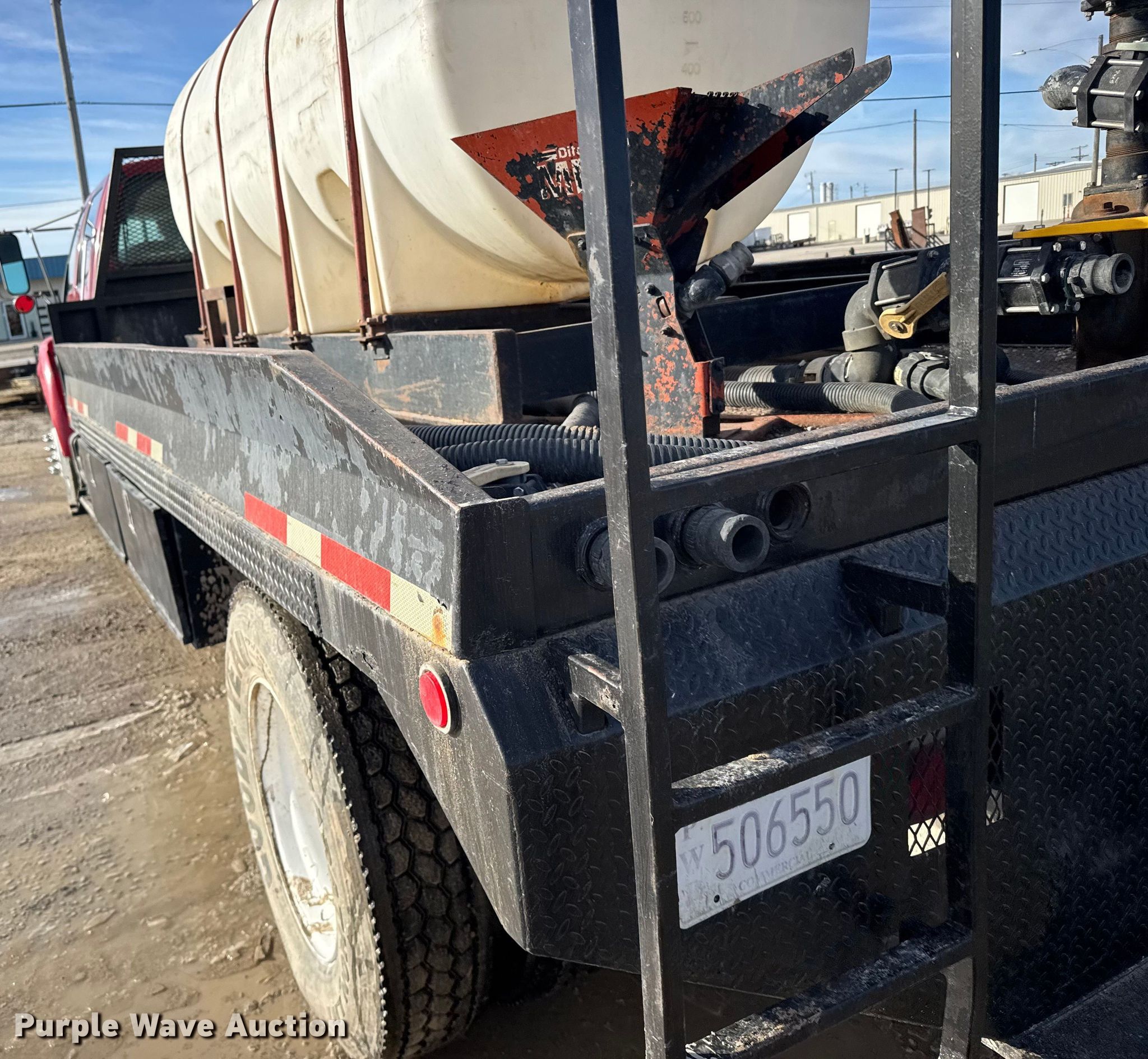 2000 Ford F650 Super Duty XL flatbed truck. Miles: 103,542 on odometer, VIN: 3FDNW65A0YMA03719. Engine Caterpillar, Displacement: 7.2L, Cylinders: 6, Fuel type: Diesel. Transmission Automatic. Chassis Axles: Single, Suspension: Spring, Brakes: Hydraulic. Interior AC, Heat, Power windows, Power locks, Brake controller. Features Bed Flatbed, Length: 16', Width: 95", Poly tank Capacity: 1000 gallons, Mud mixing pump. Tires Size: 275/80R22.5. Kansas title. Title distribution may be delayed up to 14 days from verification of funds. M&D of Hays, Inc. Hays, KS 67601