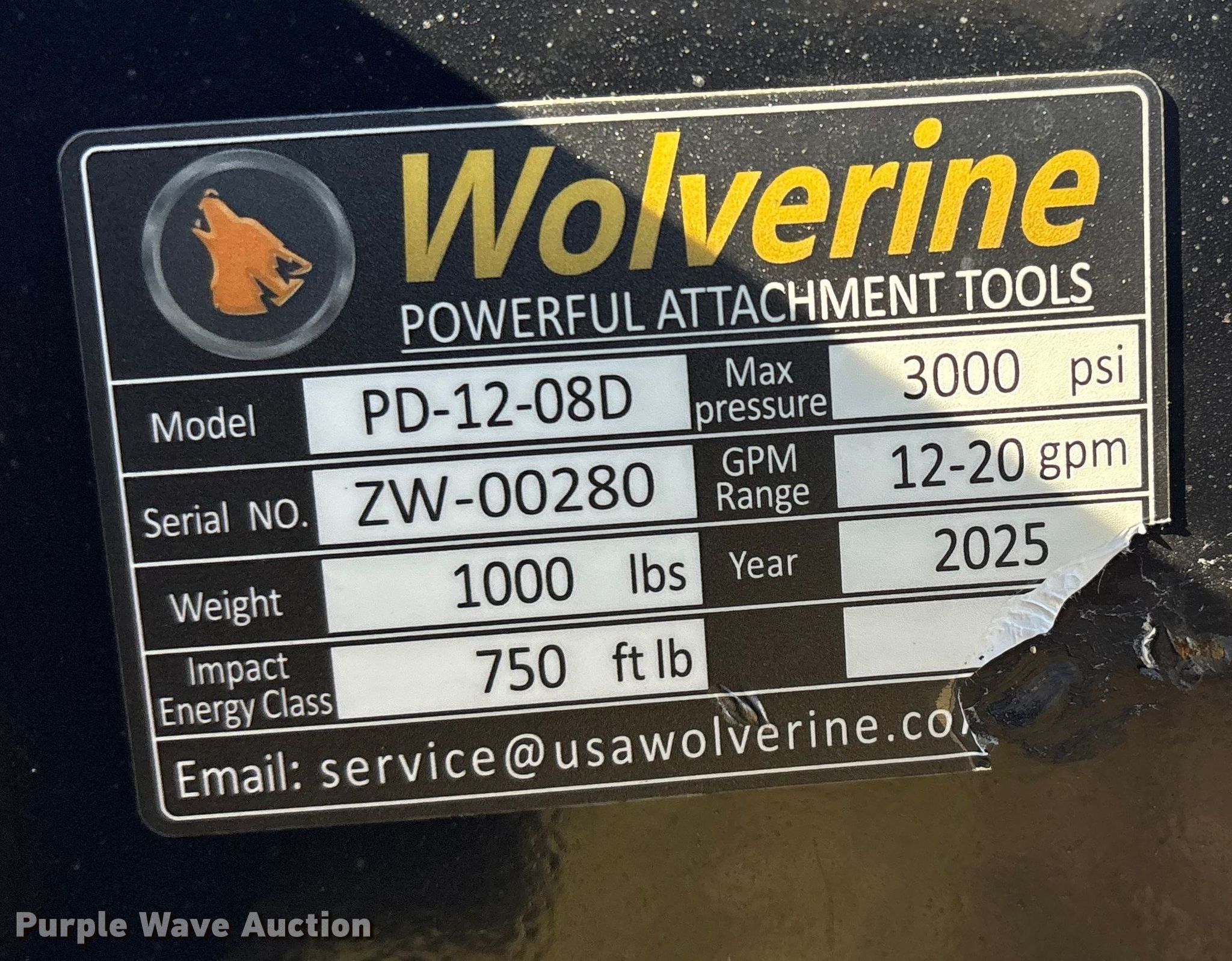 Purple Wave is selling a used Skid Steer Attach. in Oklahoma. This item is a 2025 Wolverine PD-12-08D skid steer post driver with the following: Serial: ZW-00280, Head diameter: 9"