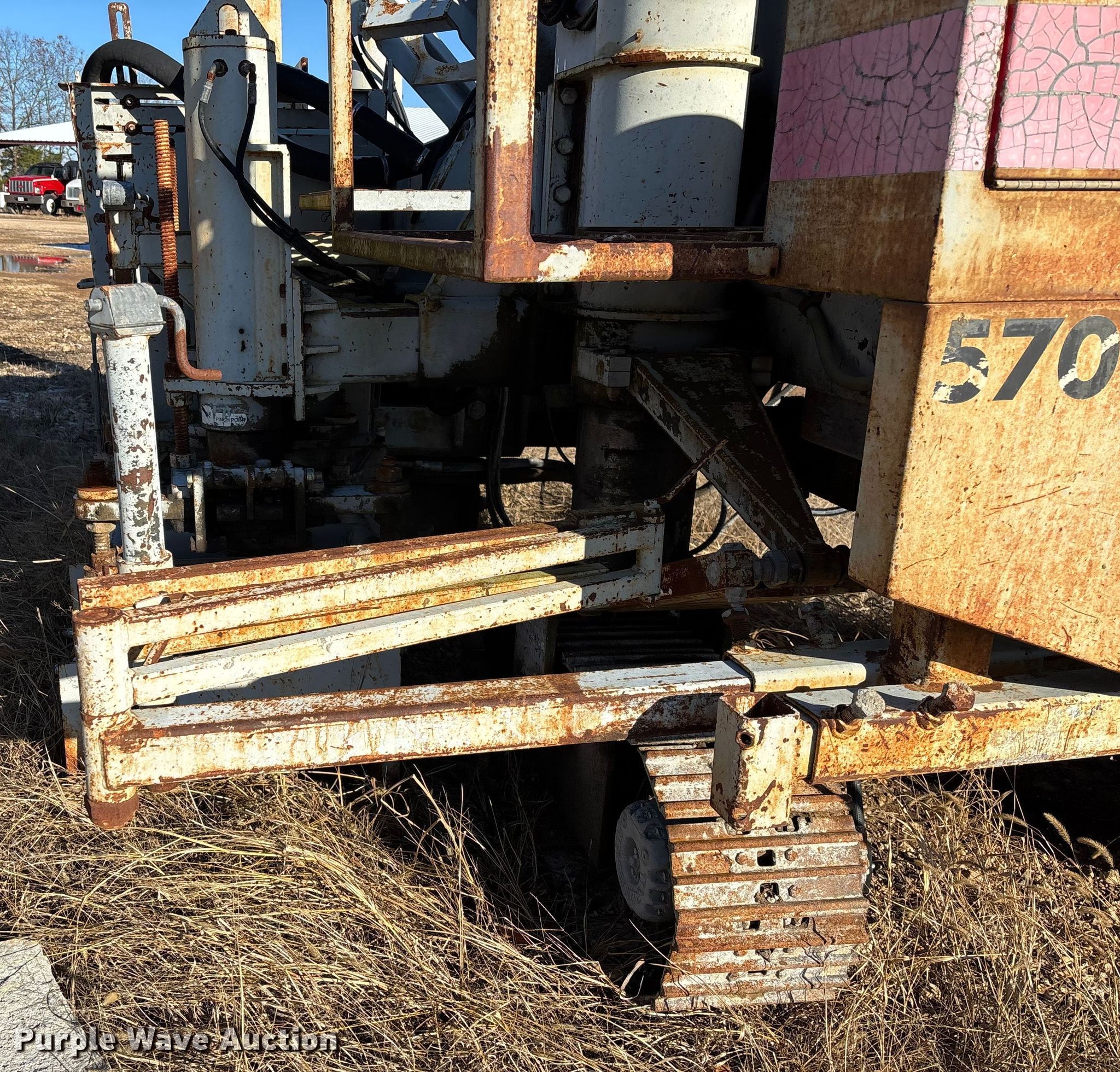 Power Curbers 5700-B curb machine. Hours: 3,469 on meter, Serial: 57169795. Engine Deutz, Cylinders: 4, Fuel type: Diesel. Transmission Hydrostatic. Features Molds: 1, Cutting head Width: 42", Hopper 32" L x 24" W, Water system Hose, Additional features Telescoping frame. Tracks Width: 12", Steel, Grouser pads: Triple. Notes Auger missing, Non-operational unit. Seven Valley's Concrete LLC. Cassville, MO 65625