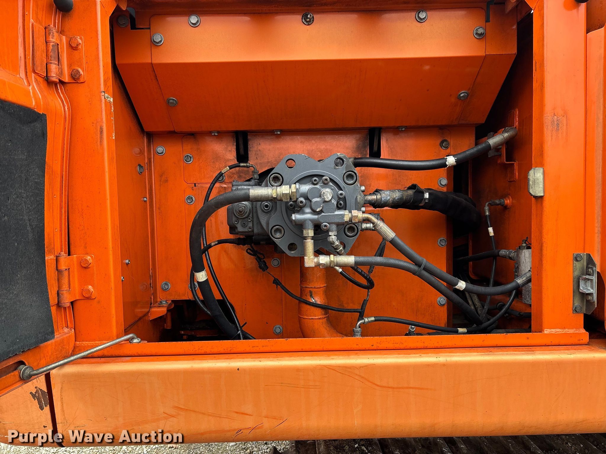 2006 Doosan DX300LC long reach excavator. Hours: 8,897 on meter, Serial: DHKHECG0L60005465. Engine Doosan DL08, Cylinders: 6, Fuel type: Diesel. Transmission Hydrostatic. Operators station Enclosed cab, AC, Heat, Pattern changer. Features Standard, Counter weights, Boom Standard, Stick Stick length: 20', Long reach, Bucket Width: 48", Teeth: 6. Tracks Width: 33.5", Steel, Grouser pads: Triple. Notes Warning indicator: Voltage, Oil pressure, Check engine, Key not included, Hydraulic issues, leak, Engine issues, oil leak , Non-operational Auto idol, Stick weld repair, Bucket tilt cylinder mount weld repair, Thumb mount damage, cracked weld. Kinder Brothers Excavating. Dexter, MO 63841