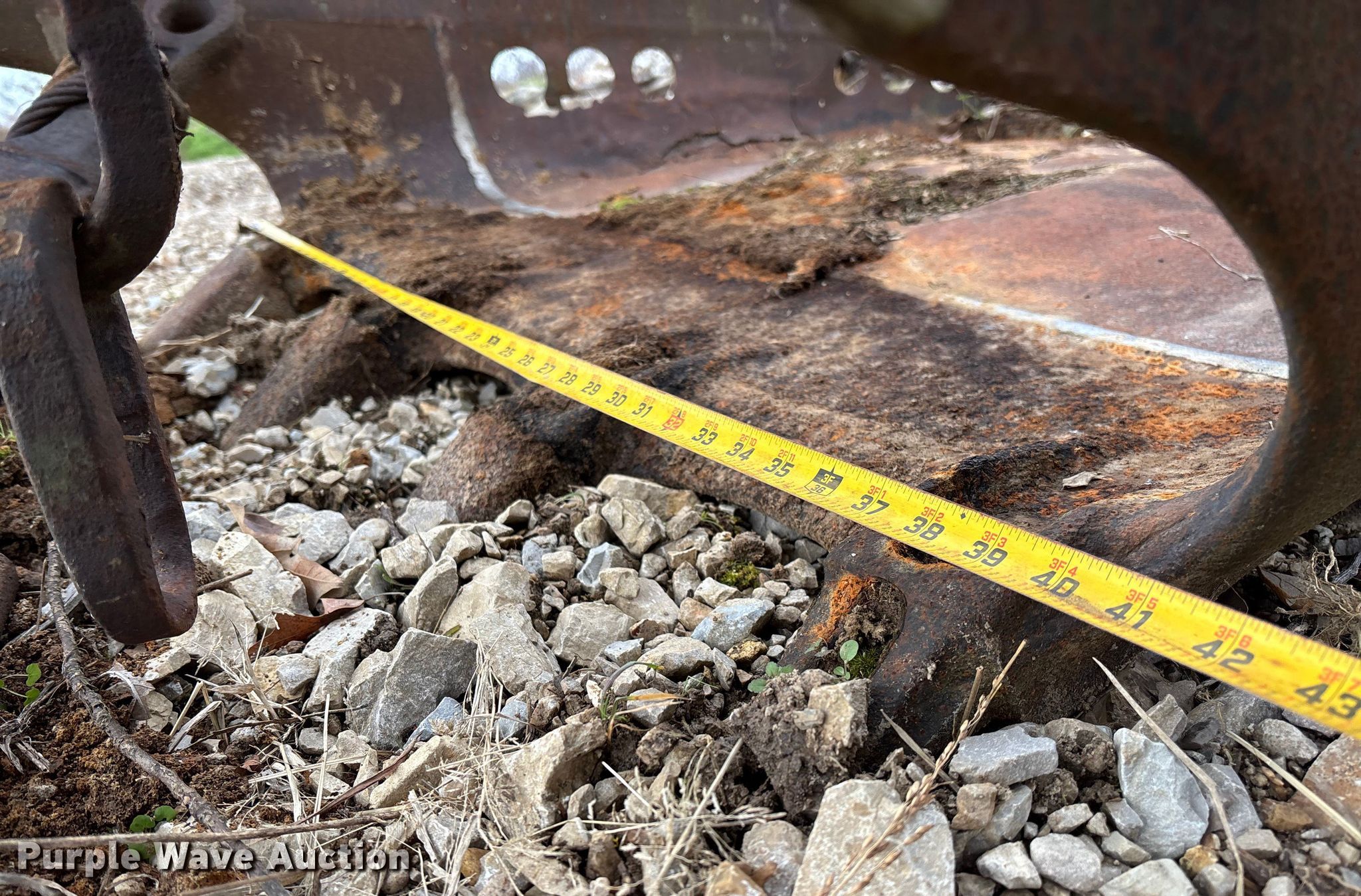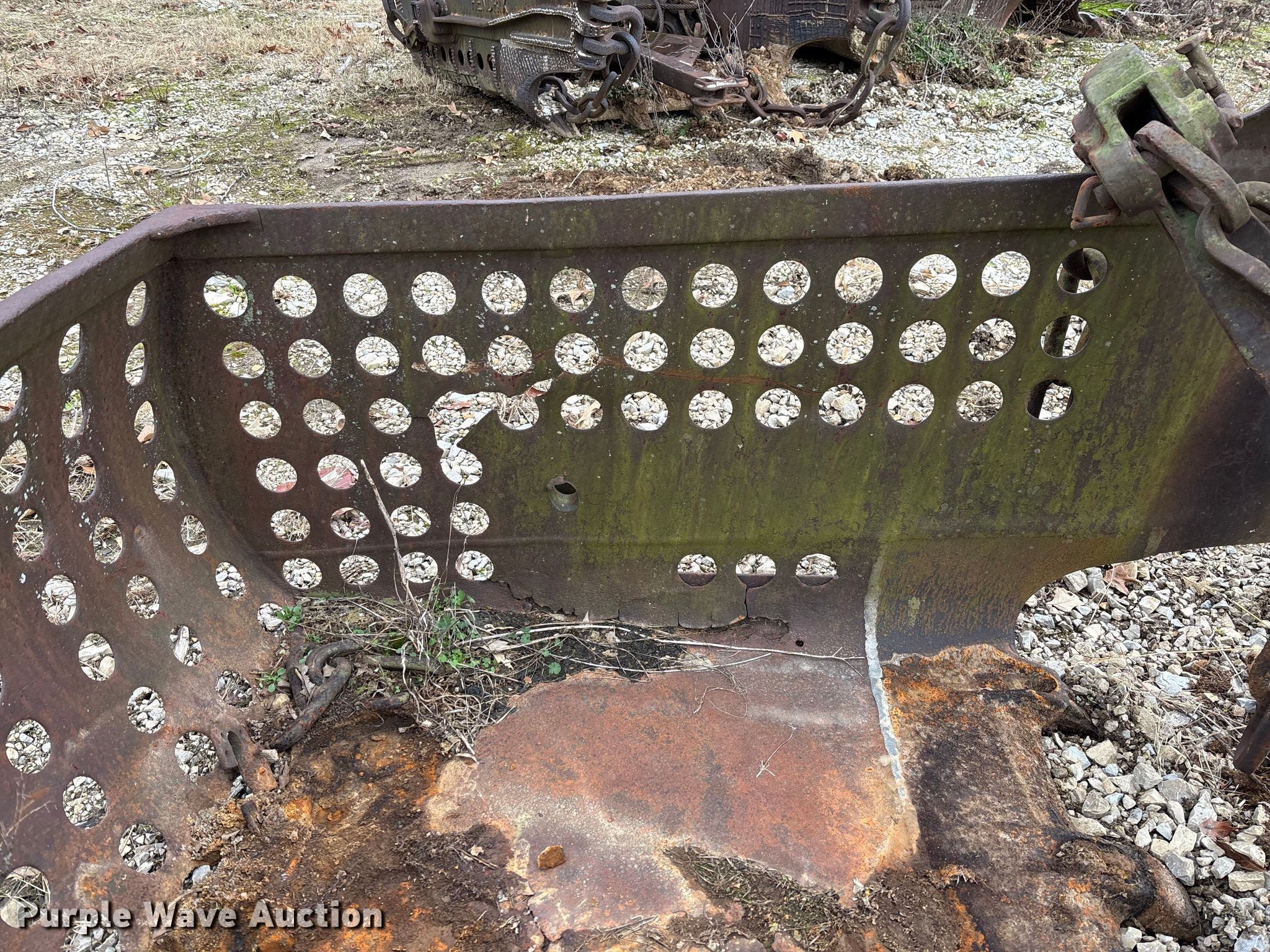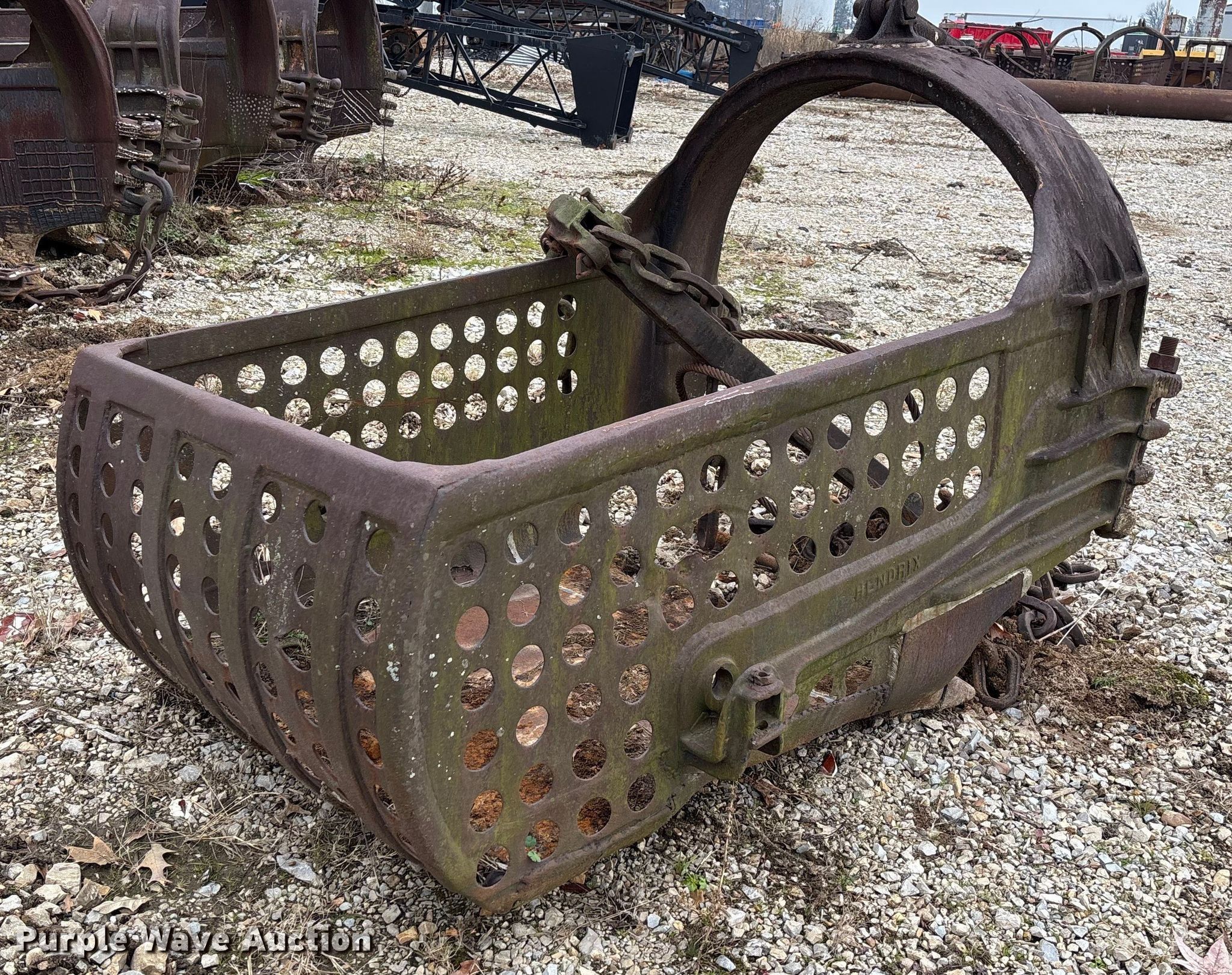 Purple Wave is selling a used Crane Attach. in Missouri. This item is a 42" W drag line bucket with the following: Metal damage, cracked