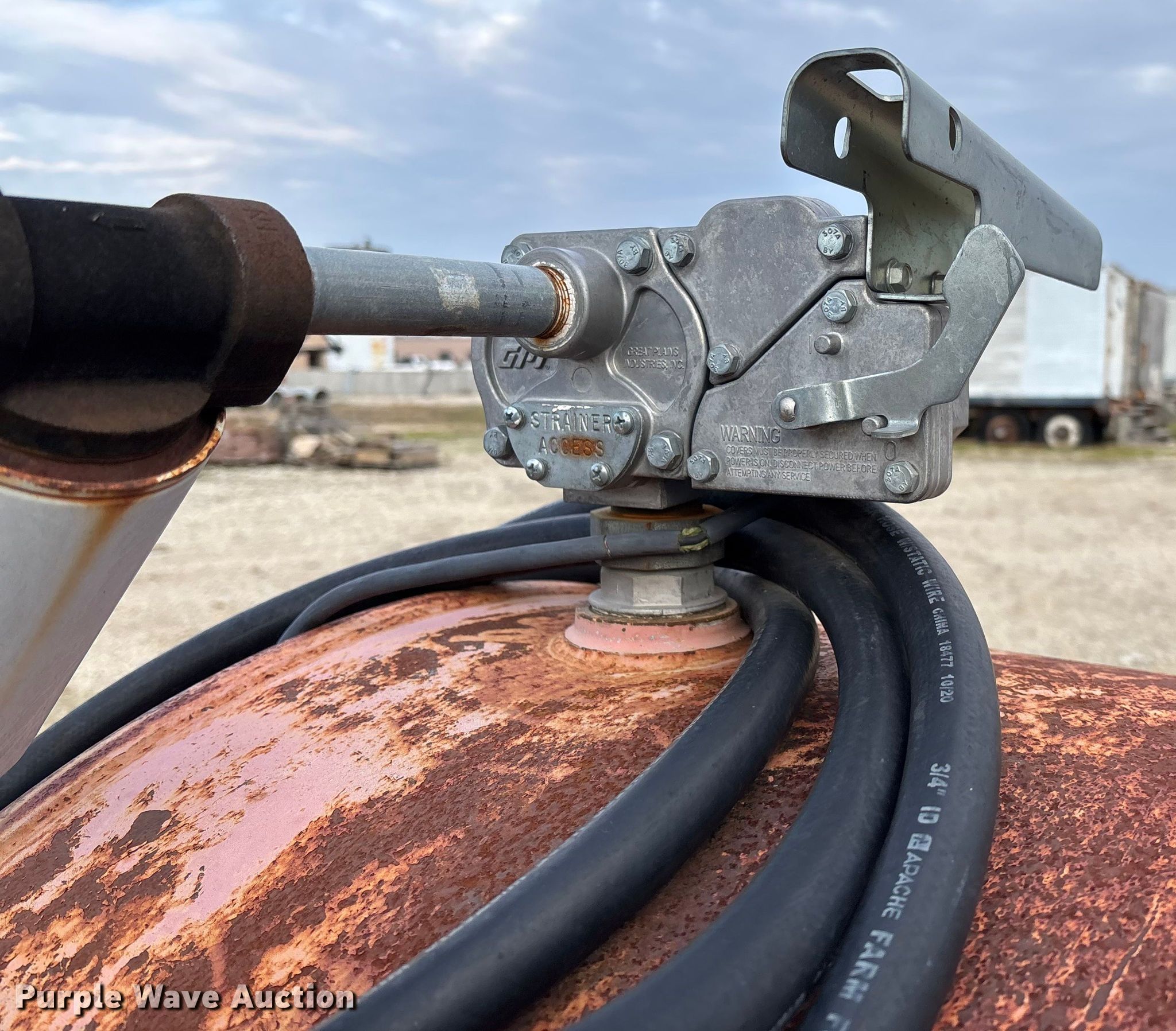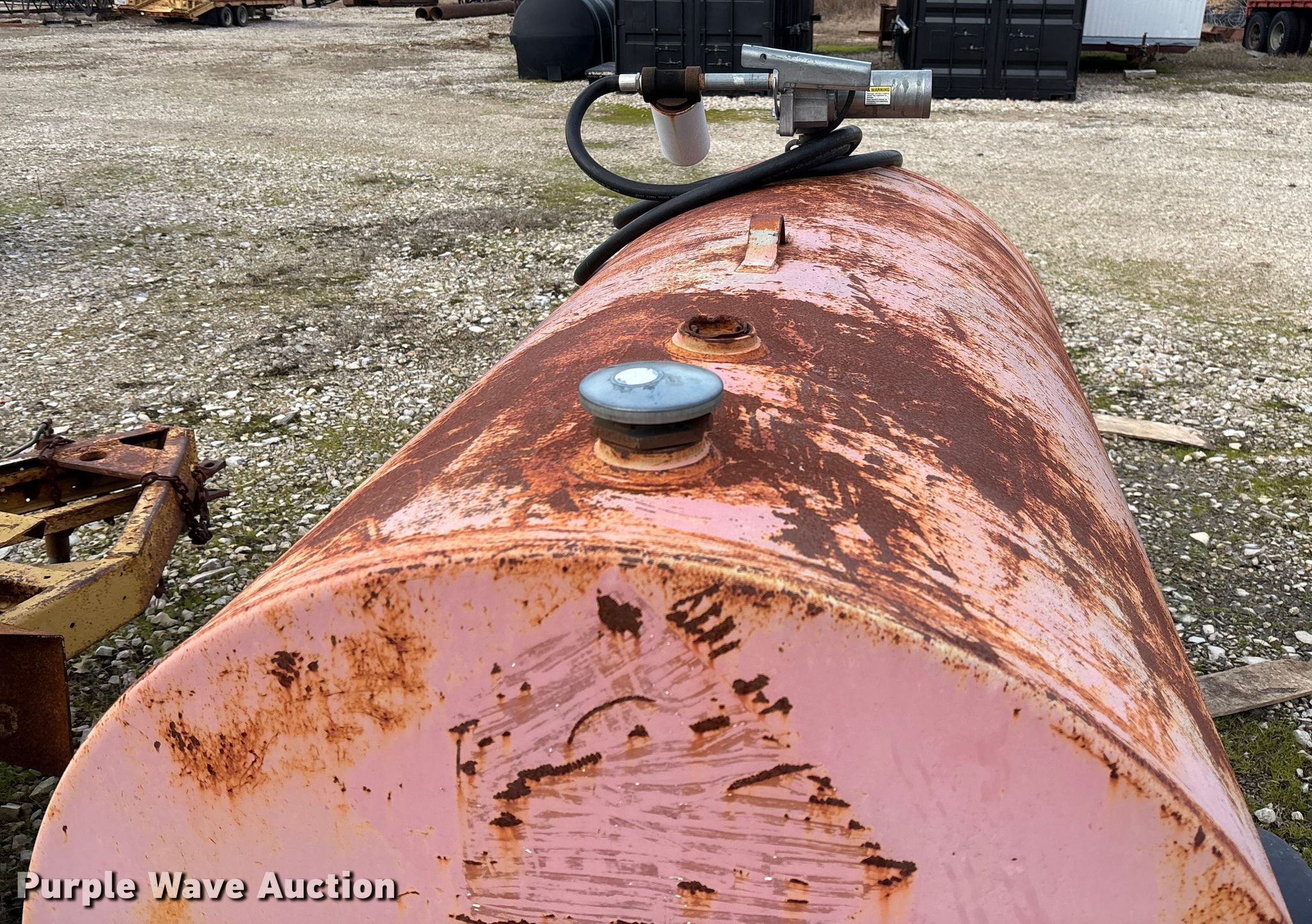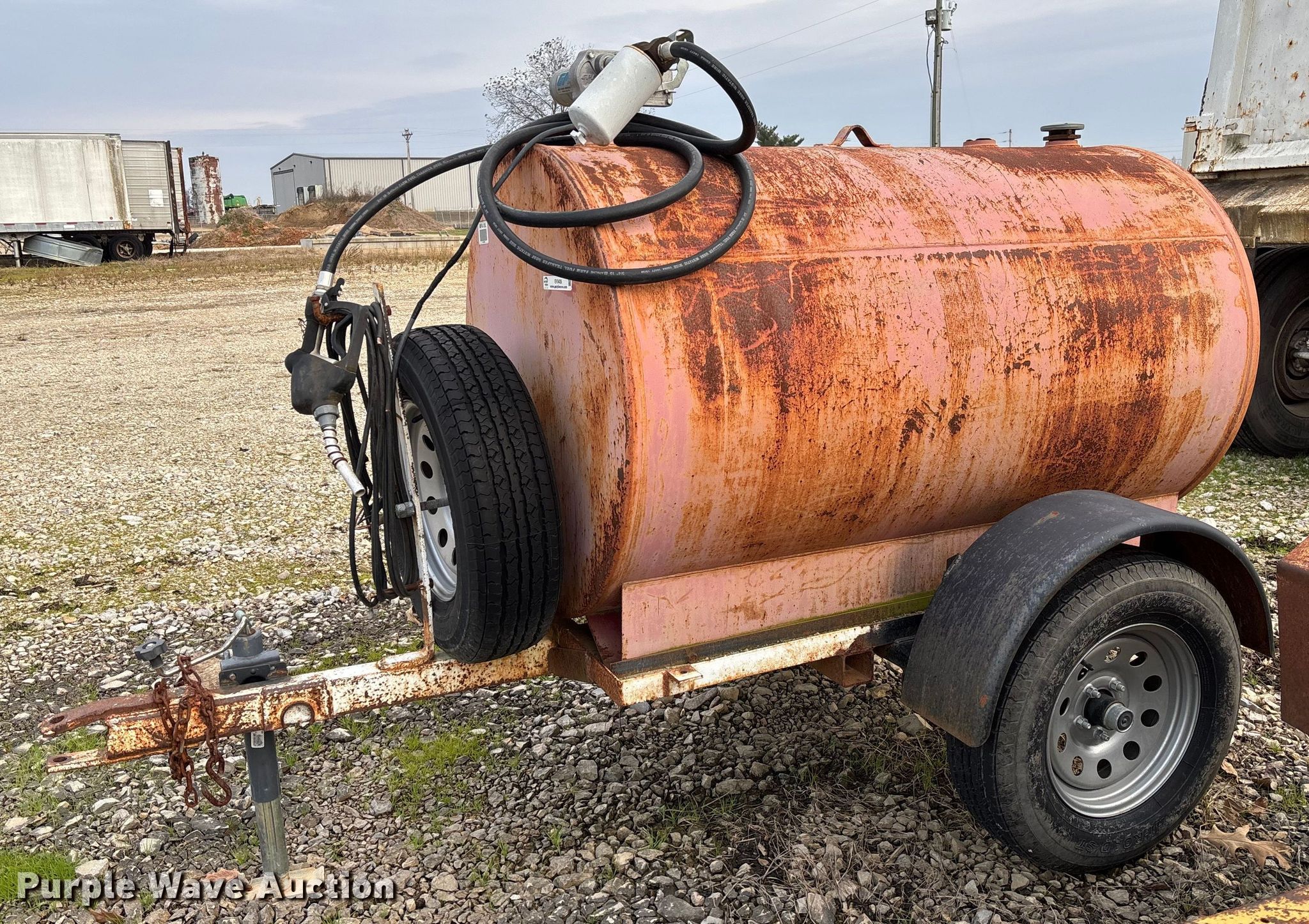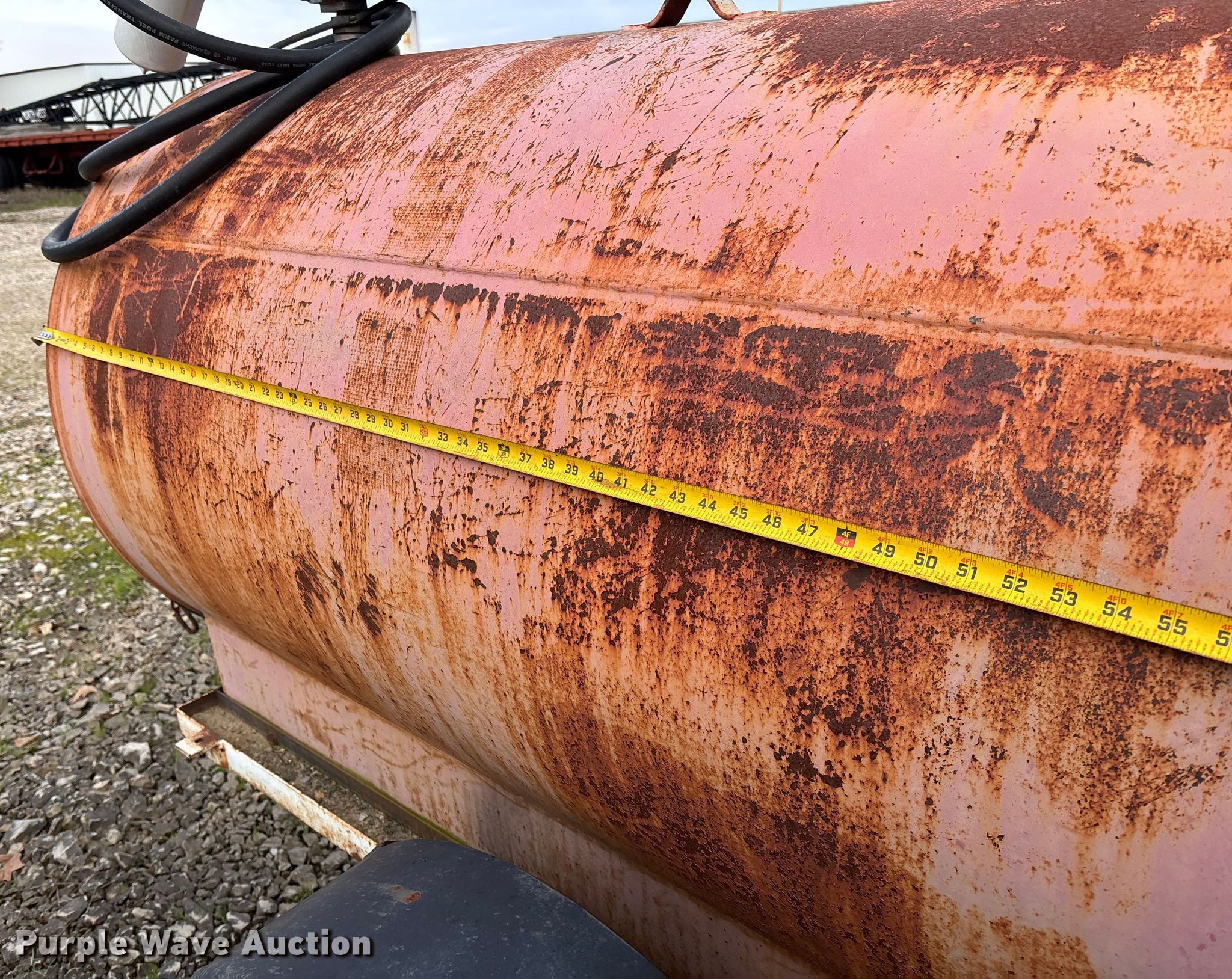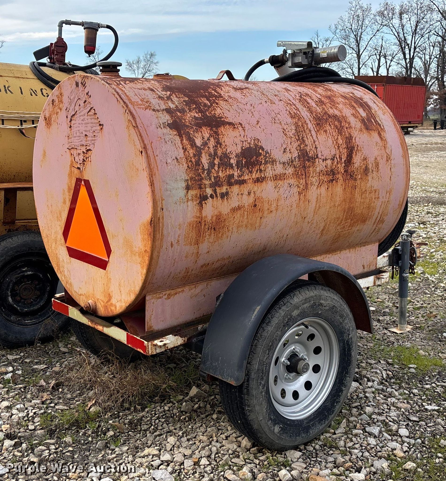Fuel trailer. Unit #:. Dimensions Overall Length: 9' 10", Width: 5' 10". Features Tank Size: 5 L x 48" W, Capacity: 300 gallons, Pump and nozzle, Suspension: Spring, Hitch: Pin. Tires Size: 225/75R15. Transfer of ownership documentation will be a bill of sale. Kinder Brothers Excavating. Dexter, MO 63841