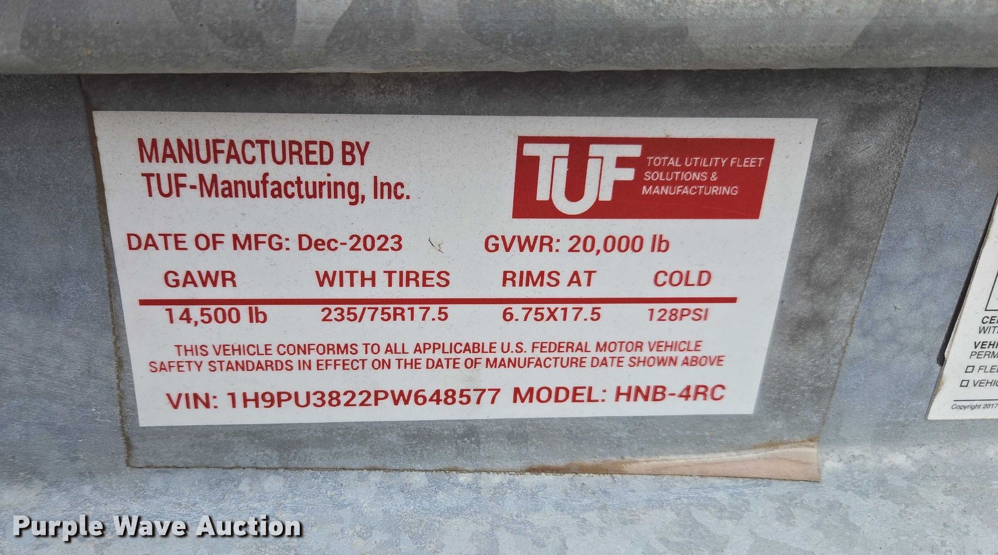 Take a look at this used 2023 TUF HNB-4RC reel trailer being sold on December 31st, 2025 in the Wednesday December 31 Construction Equipment Auction made by TUF. Take a look at all of the item information below or take a look at similar auctions for Trailers.