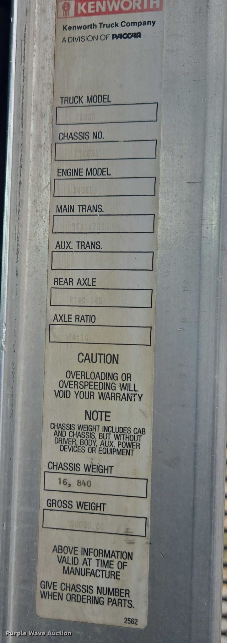 - VIN: 1XKDDB9X9TS724638