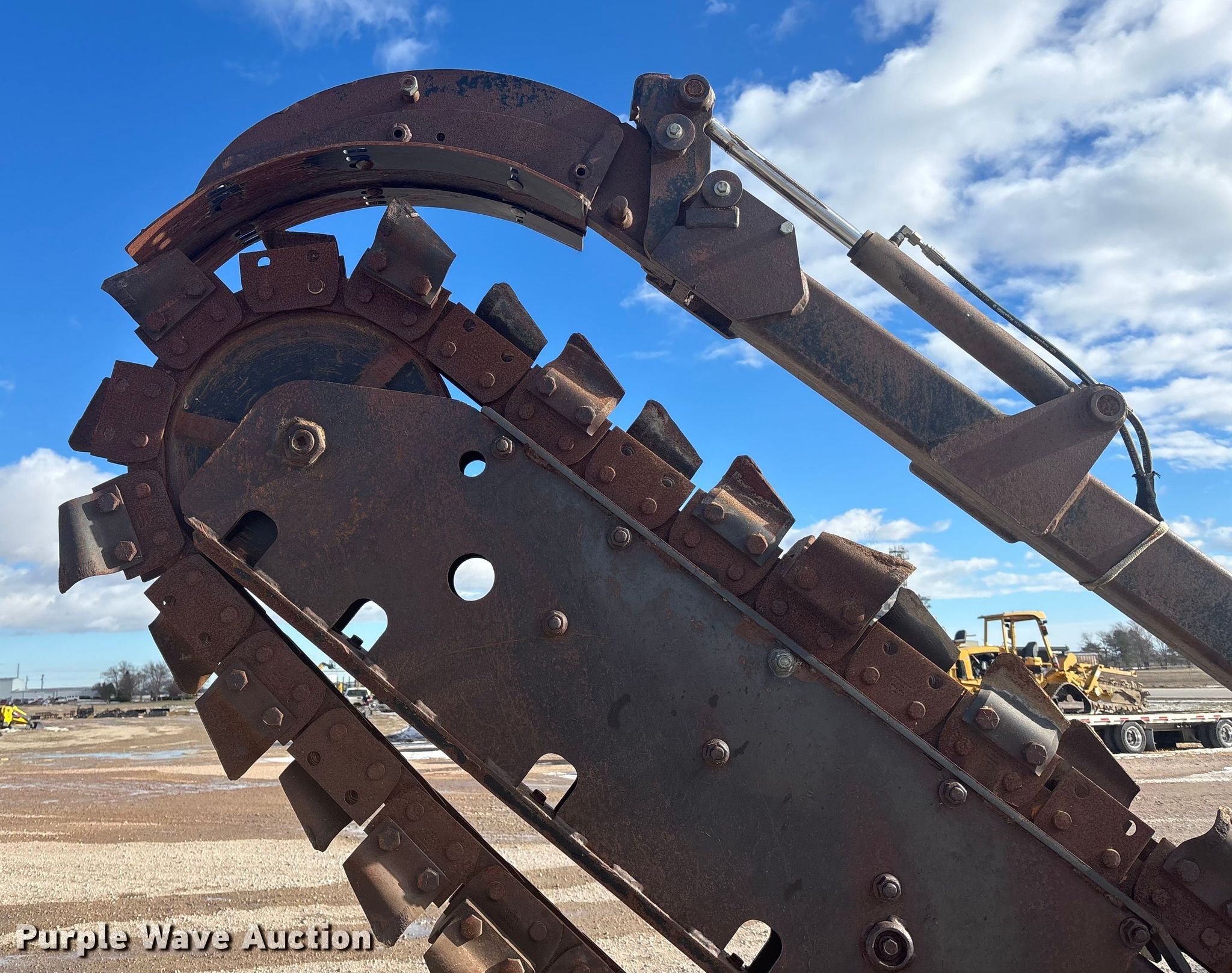 2002 Ditch Witch RT115 trencher. Hours: 102 on meter, Hours: Actual unknown, Serial: 5W0062, Unit #:. Engine John Deere, Displacement: 4.5L, Cylinders: 4, Fuel type: Diesel. Transmission Hydrostatic, Two speed travel. Chassis Four wheel drive, Differential lock, Four wheel steer, Tilt undercarriage. Features Combination unit, Trencher Model: H911, Serial: 5W1080, Estimated dig depth: 108", Cutting width: 10", Side shift, Teeth: Dirt, Crumber, Hydraulic crumber, Backfill blade Width: 80". Tires Size: 38x18R20. Notes Hole in floor, Hour meter replaced. Columbus, NE 68601