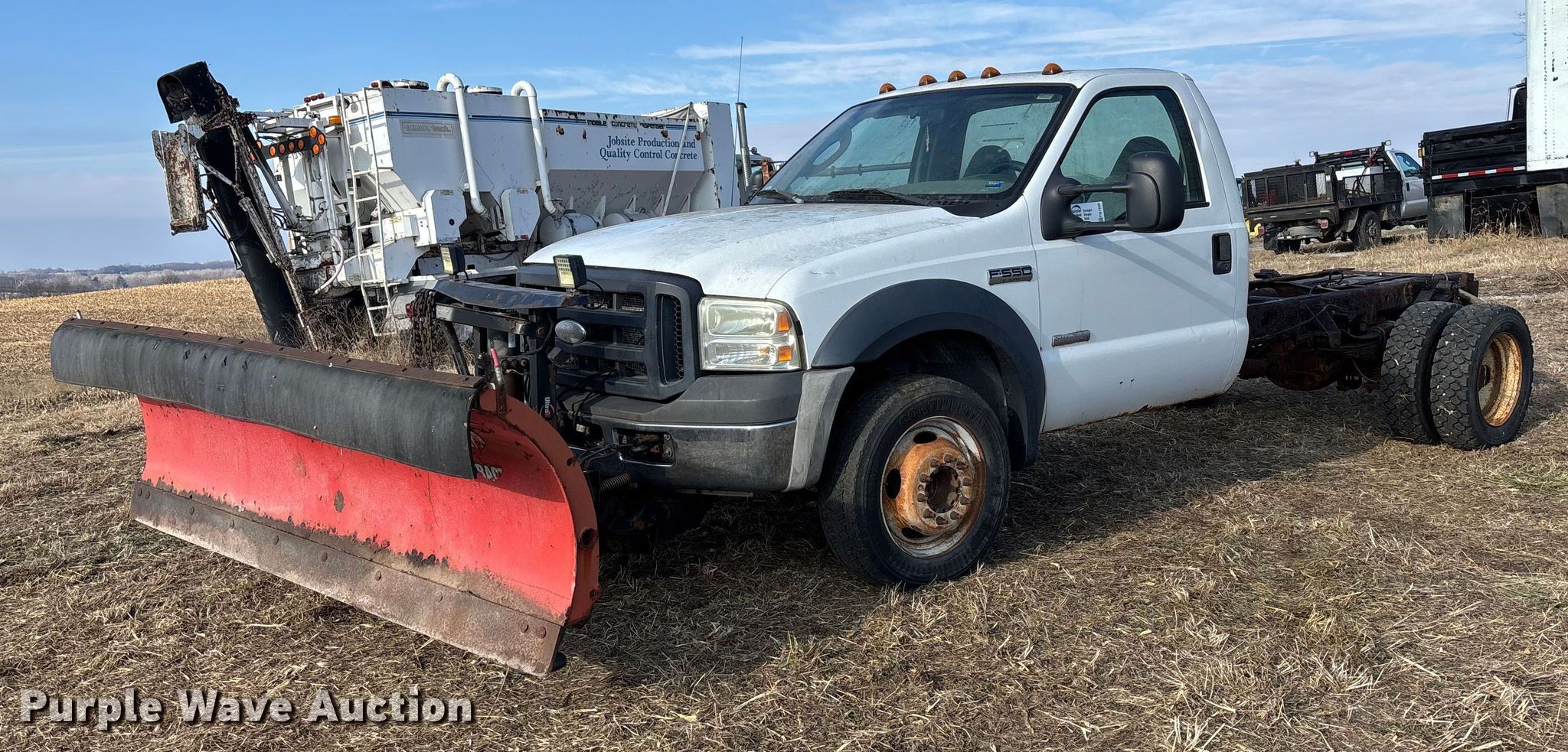 2006 Ford F550 truck cab and chassis. Miles: 139,583 on odometer, VIN: 1FDAF56P86EB73325. Engine Displacement: 6.0L, Cylinders: 8, Fuel type: Diesel. Transmission Automatic. Chassis Axles: Single, Suspension: Spring, Brakes: Hydraulic, Truck chassis: 9'. Interior AC, Heat, Cruise control, Auxiliary controls, Brake controller. Features Pro Plus Ultra finish snow plow. Tires Size: 225/70R19.5. Missouri title. Title distribution may be delayed up to 14 days from verification of funds. Agency, MO 64401