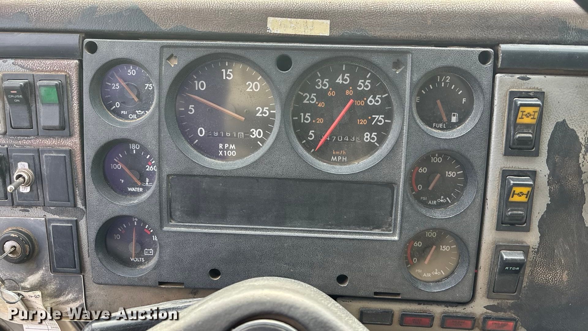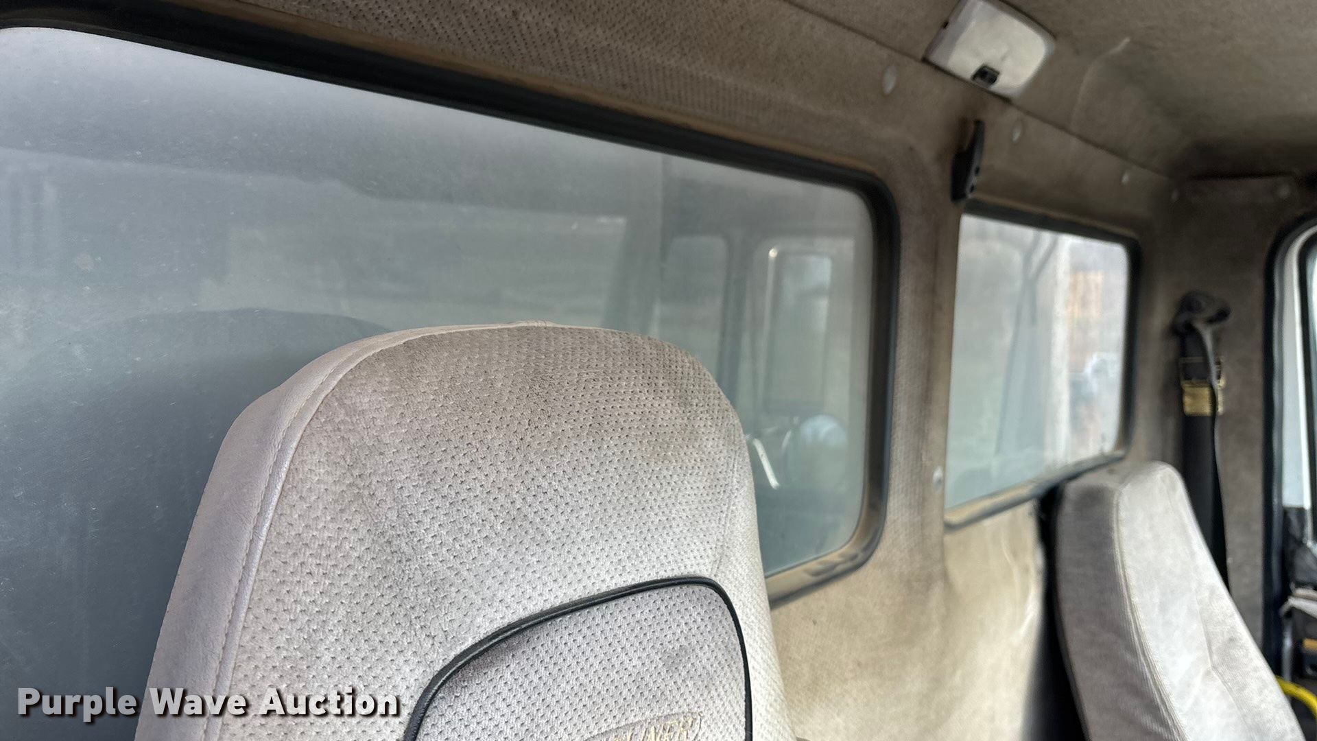 2000 Freightliner FL80 dump truck. Miles: 47,043 on odometer, Hours: 29,162 on meter, VIN: 1FV4JJBB9YXF86172. Engine Cylinders: 6, Fuel type: Diesel, Engine brake. Transmission Eaton Fuller 8LL, Manual, Speed: 10. Chassis Axles: Triple, Pusher axle, Differential lock: Full, Suspension: Spring Dump valves, Brakes: Air, PTO, GVWR: 64,410 lbs. Interior AC, Heat, Heated mirrors, Cruise control. Features Bed Dump bed, Length: 18', Width: 95", Side height: 60", Bed type: Steel, Roll tarp, Ram: Single, End gate: Air operated. Tires Front: 315/80 R 22.5, Rear: 11R22.5, Lift axle: 11R22.5. Missouri title. Title distribution may be delayed up to 14 days from verification of funds. Agency, MO 64401