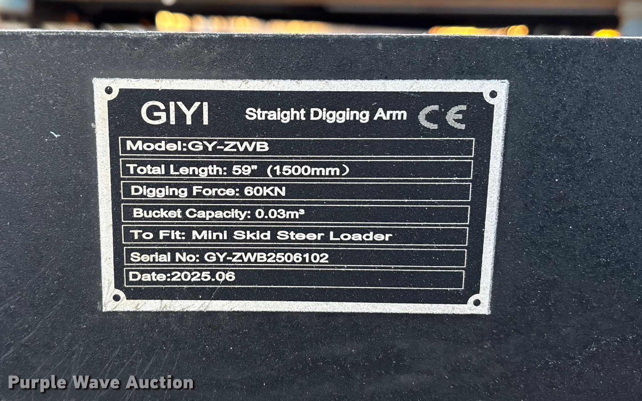 Purple Wave is selling a used Skid Steer Attach. in Nebraska. This item is a 2025 GIYI GY–ZWB compact utility loader backhoe with the following: Serial: GY-ZWB2506102, Width: 12", Estimated dig depth: 48"