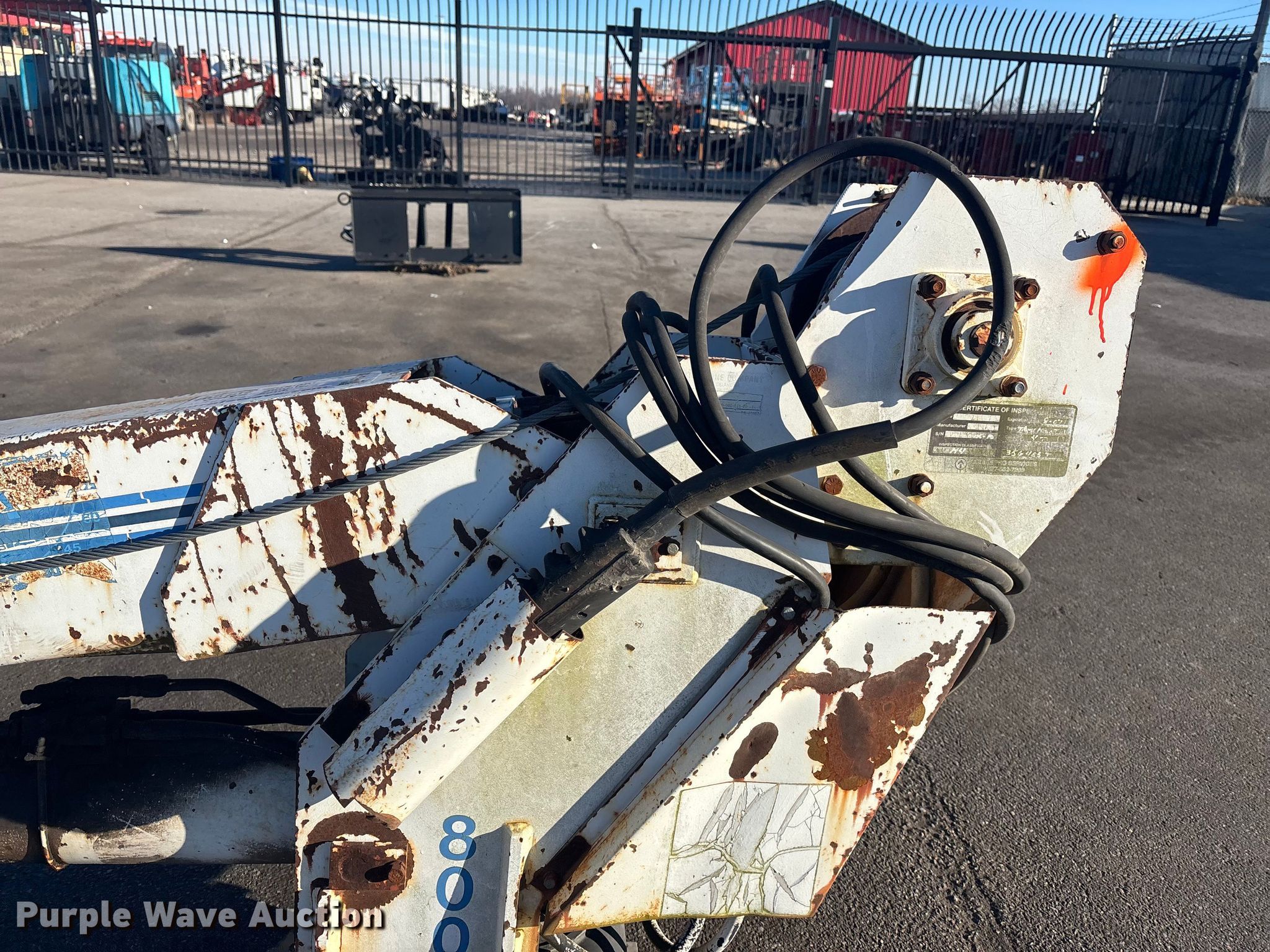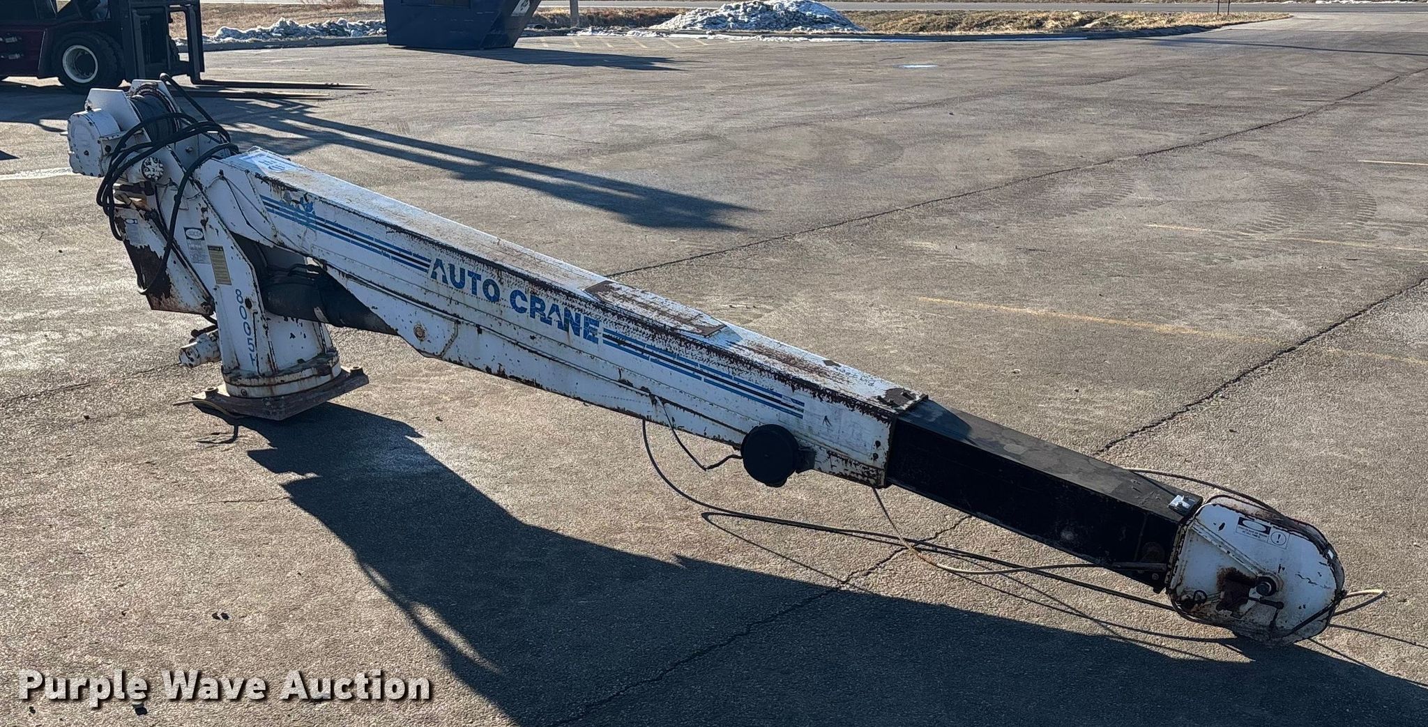 Auto Crane 8005H crane. Serial: 480000–002–125–FO–11–9. Features Boom Telescopic, Maximum boom length: 28', Sections: 2, Maximum lift capacity: 8,000 lbs. Notes Unknown operating condition. Jordan Truck and Equipment. Waterloo, NE 68069