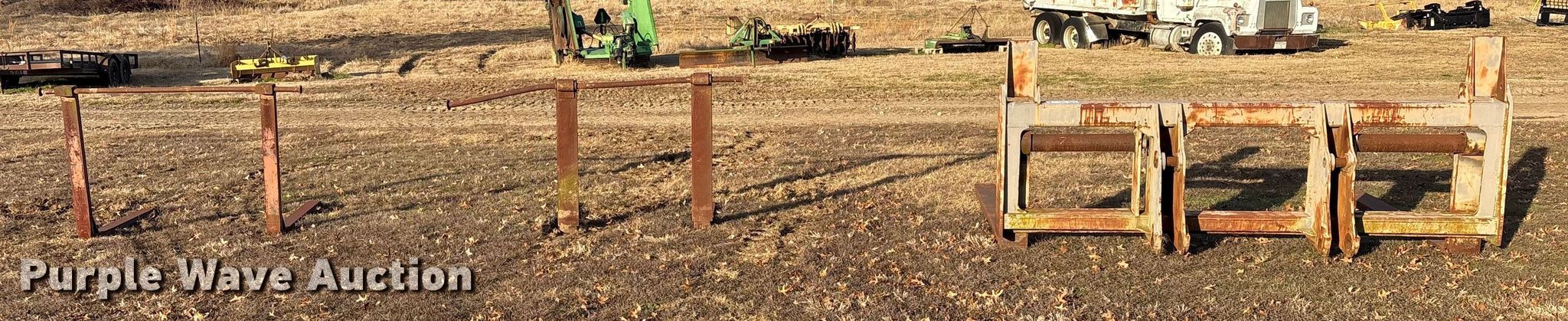 Purple Wave is selling a used Bucket or Loader Attach. in Oklahoma. This item is a 8'L L90B loader forks with the following: Overall, Length: 9' 6", Width: 121", Height: 4' 7", (2) 4' L excavator forks