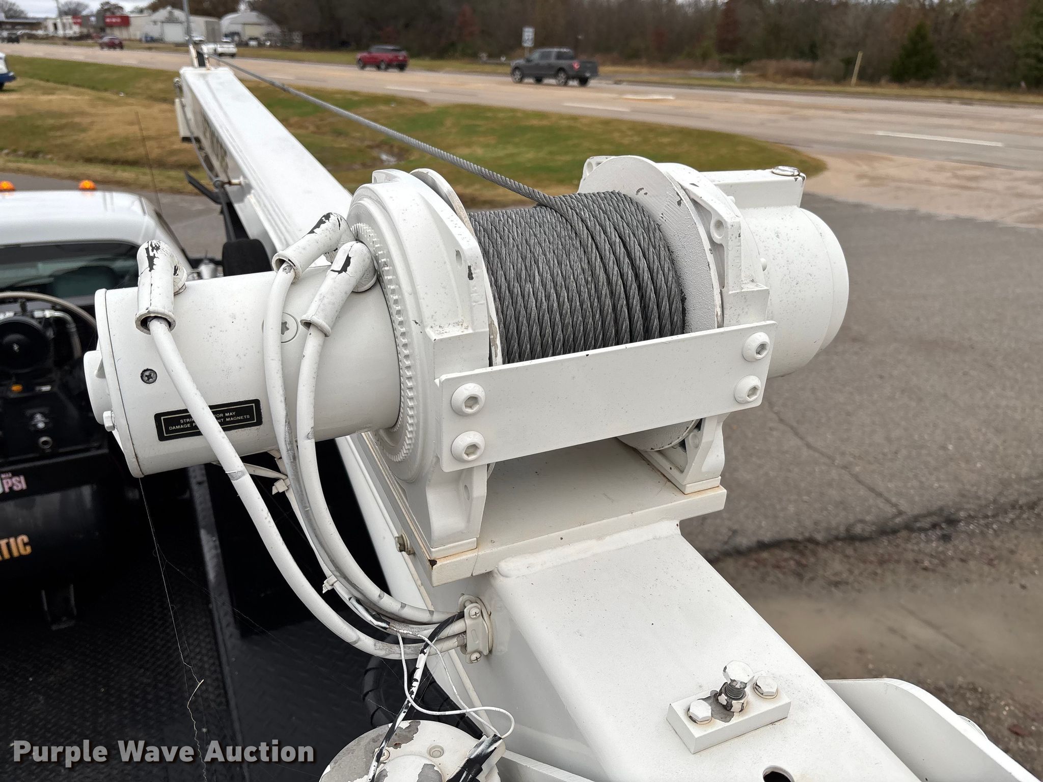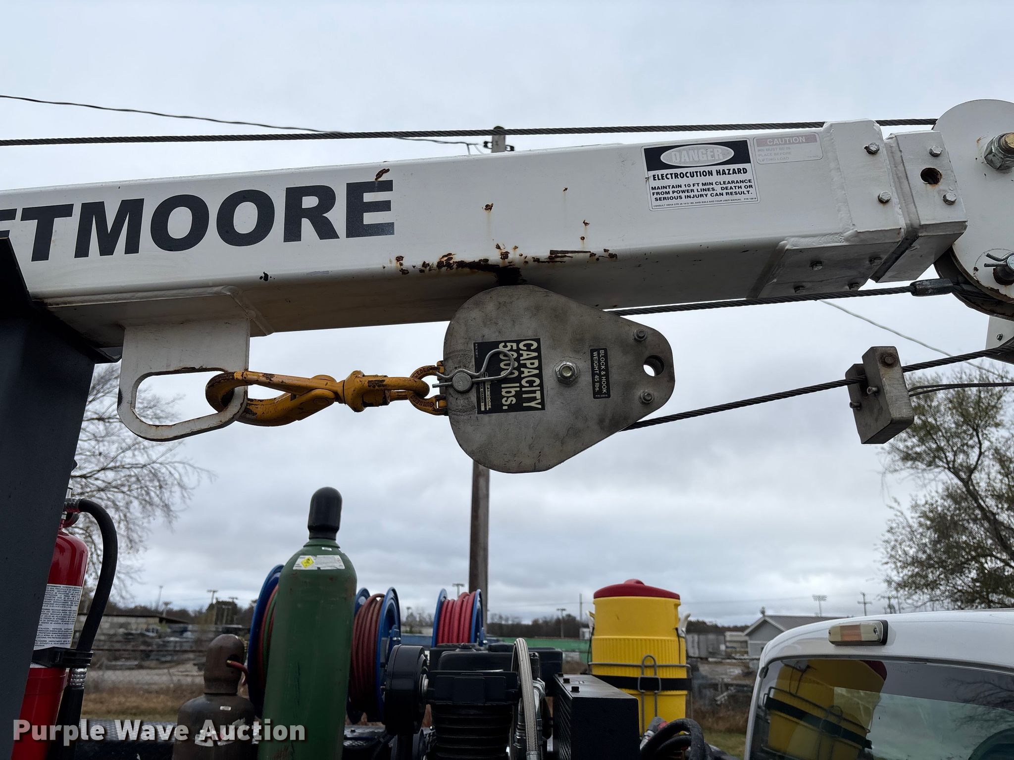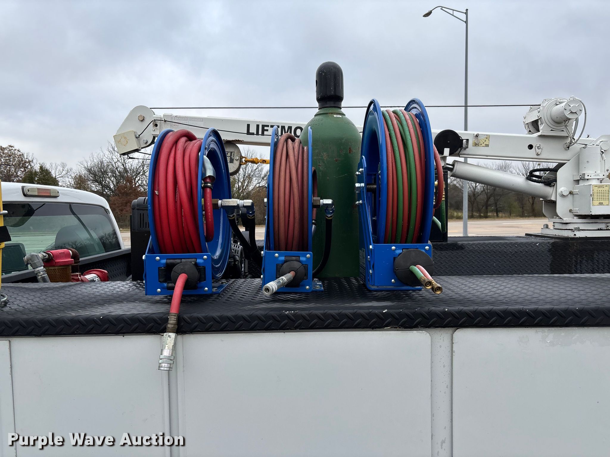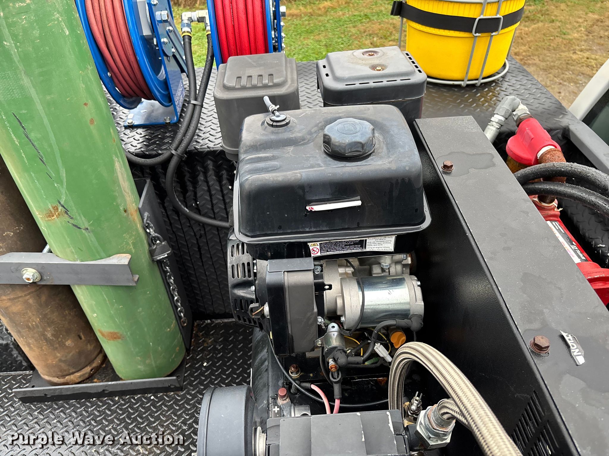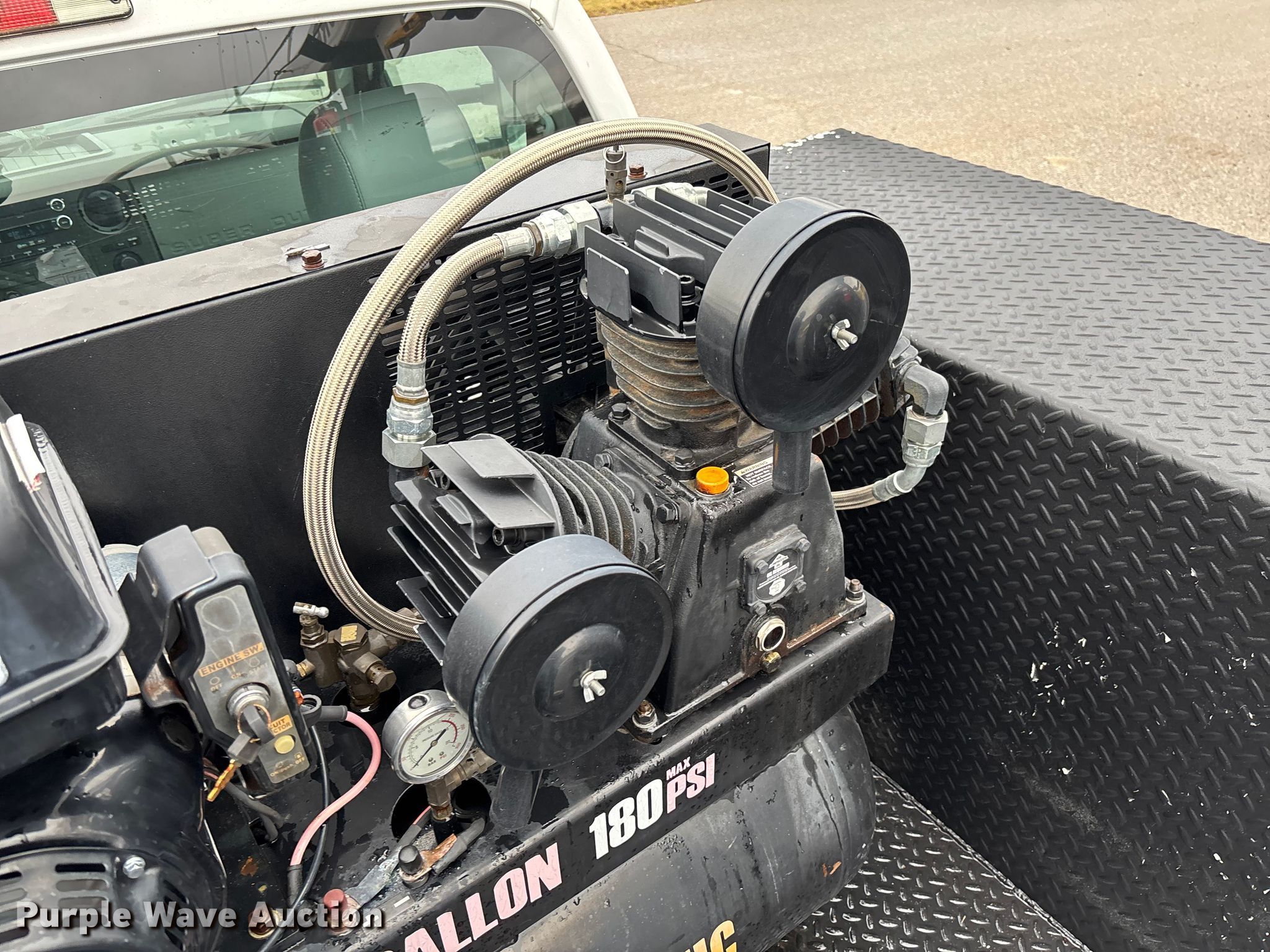 2012 Ford F550 Super Duty utility / service truck. Miles: 183,884 on odometer, Hours: 5,642 on meter, VIN: 1FDUF5HT4CEC76163. Engine Displacement: 6.7L, Cylinders: 8, Fuel type: Diesel. Transmission Automatic. Chassis Four wheel drive, Axles: Single, Suspension: Spring, Brakes: Hydraulic, GVWR: 19,500 lbs, Wheelbase: 165". Interior AC, Heat, Power windows, Power locks, Cruise control, Auxiliary controls. Features Bed Utility bed, RKI, Length: 11', Width: 7' 10", Torch bottle rack, Generator Tsurumi TPG3-6000HDX, Fuel type: Gas, 240V outlets: 2, 120V outlets: 4, Air compressor, Hours: 26 on meter Central Pneumatic, Predator, Oil/lube system Hose reels, Reservoirs, Fuel tank Nozzles, Pump, Crane Lift Moore 5000W, Maximum boom length: 20' Maximum lift capacity: 5,000 lbs.. Tires Size: 225/70R19.5. Oklahoma title. Title distribution may be delayed up to 30 days from verification of funds. Millers Southern Estates INC.. Pryor, OK 74361