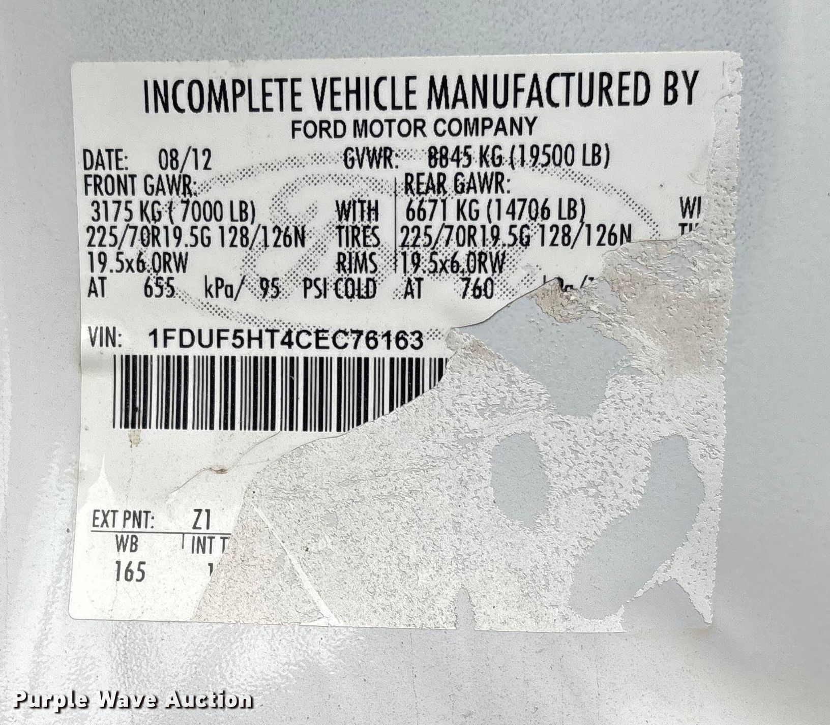 - VIN: 1FDUF5HT4CEC76163