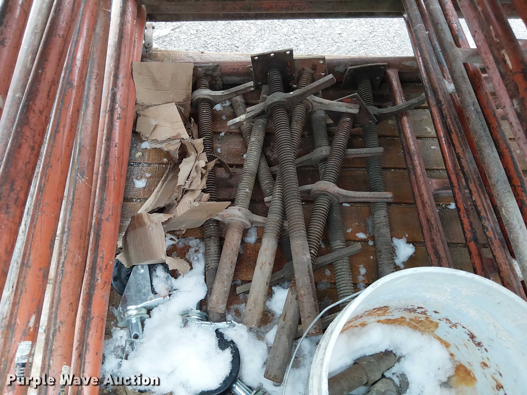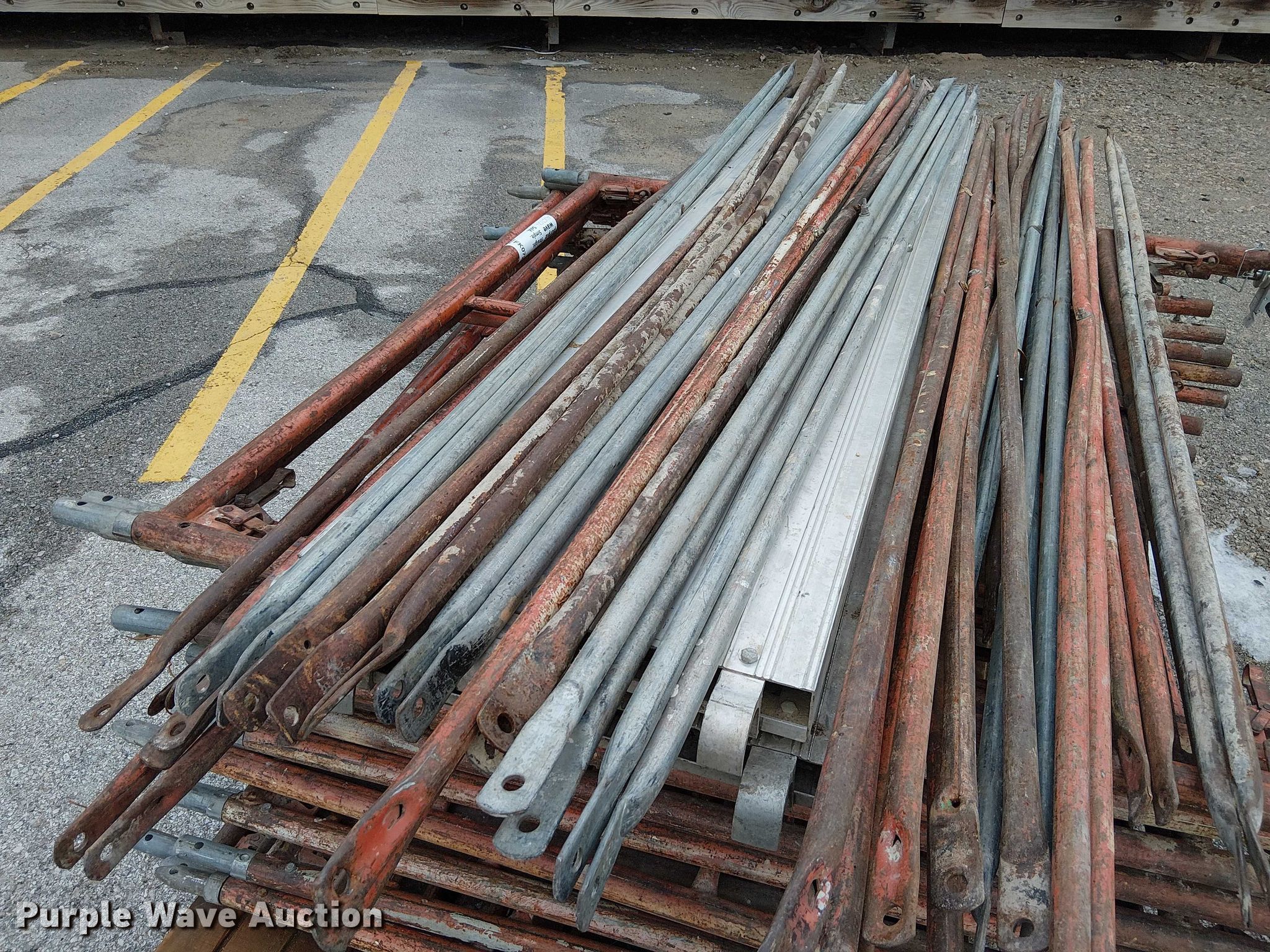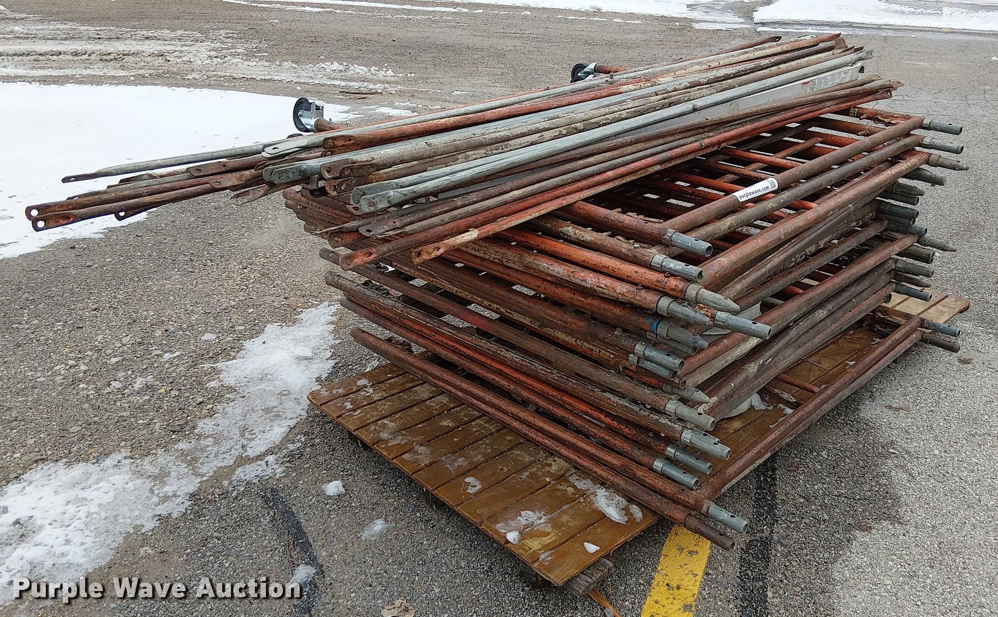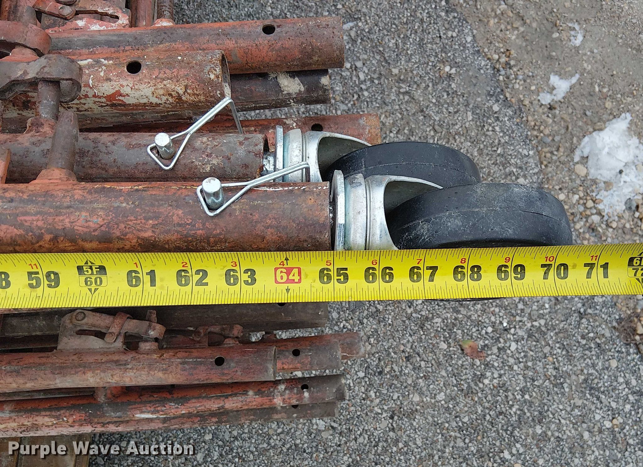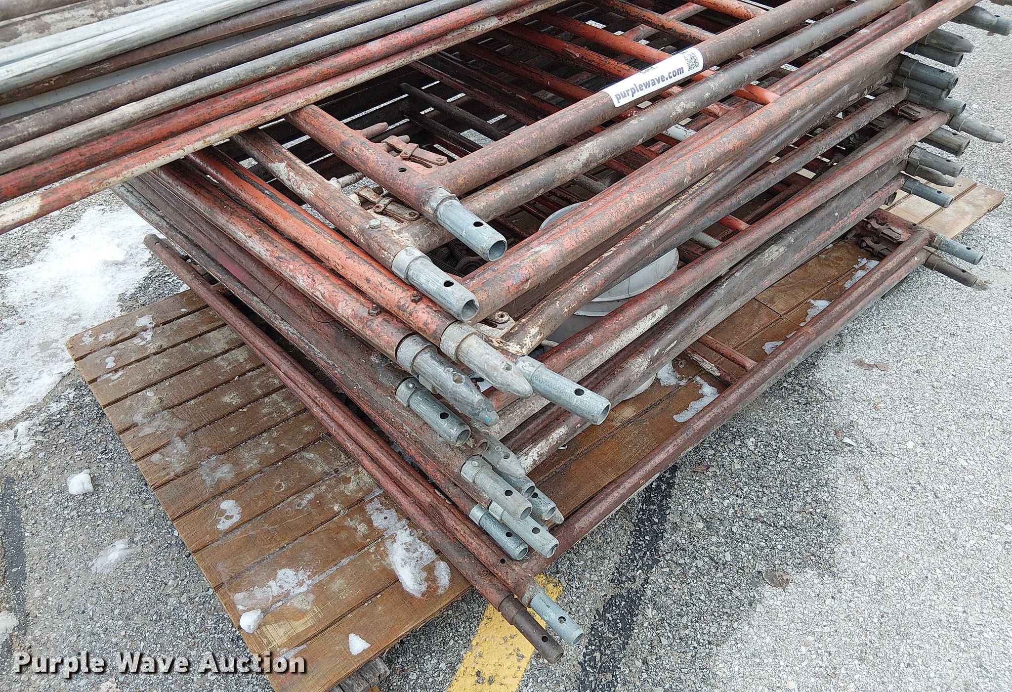 Purple Wave is selling a used Tools in Kansas. This item is a Scaffolding with the following: (20) uprights, 61 1/2" W x 65" H, (40) crossbars, (2) aluminum cross walk panels, (8) leveling Jacks
