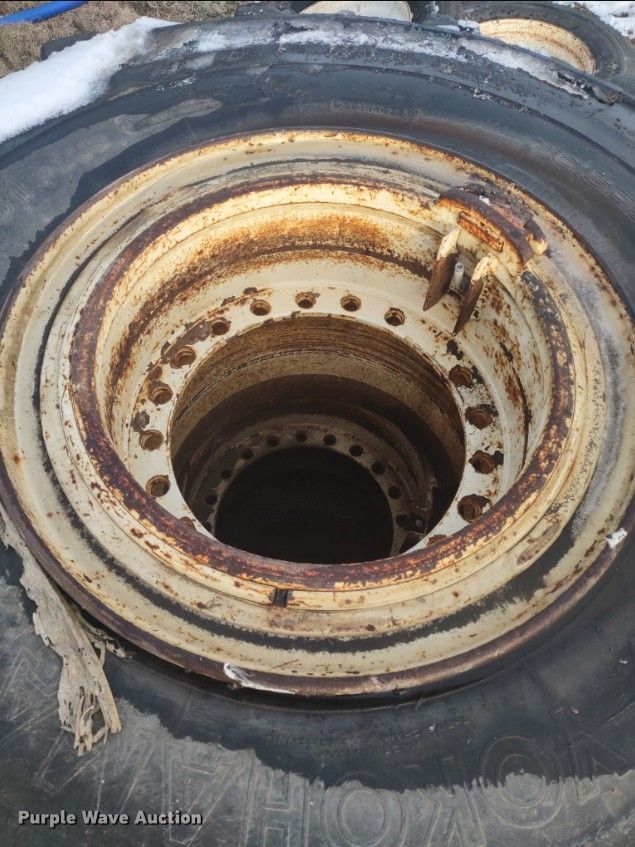 Shop Built end dump trailer. Dimensions. Overall Length: 28', Width: 10' 4". Features Deck type: Steel. Chassis Hitch: Pintle, Landing gear: Single, Suspension: Walking beam, Brakes: Hydraulic, Axles: Tandem. Tires Steel wheels, Size: 26.5R25. Notes (3) additional tires (2) wheels. This is worksite support equipment and will not come with a title. Transfer of ownership documentation will be a bill of sale. Farmer Excavating Inc.. Oskaloosa, KS 66066