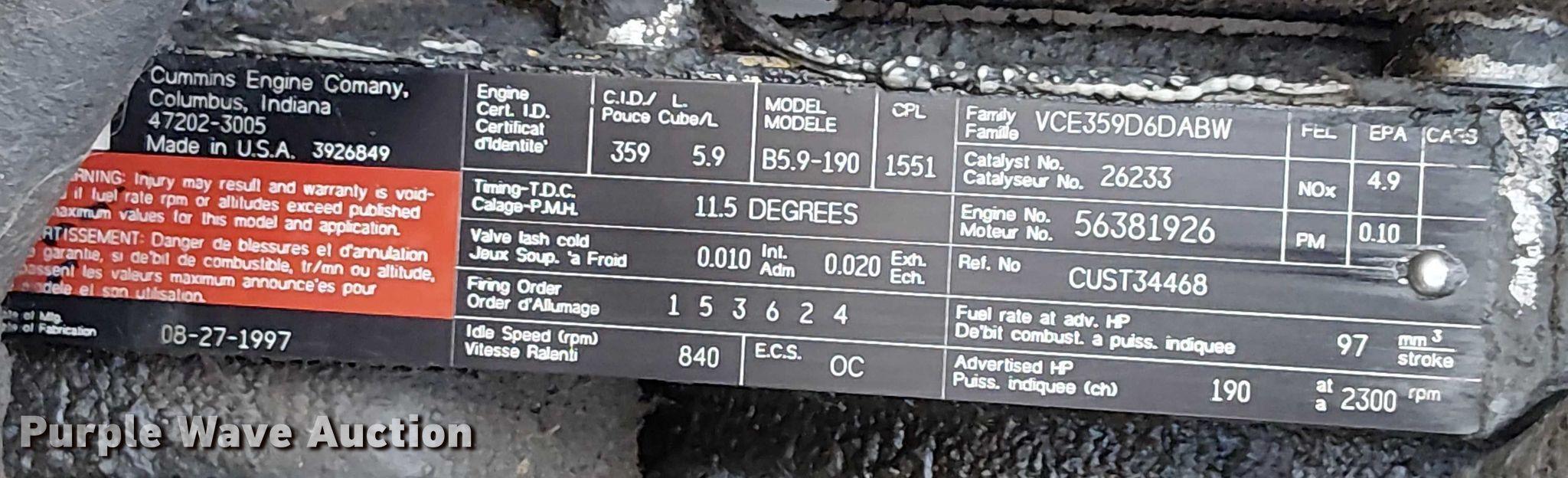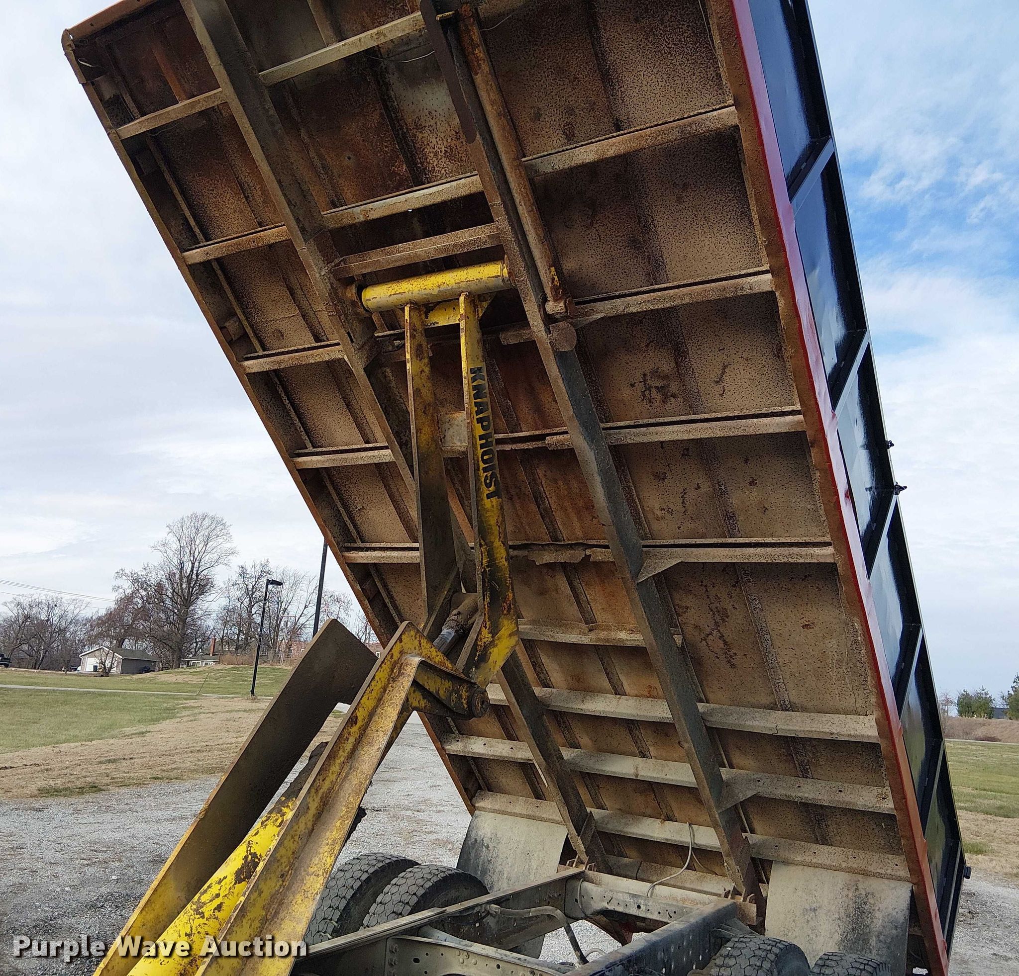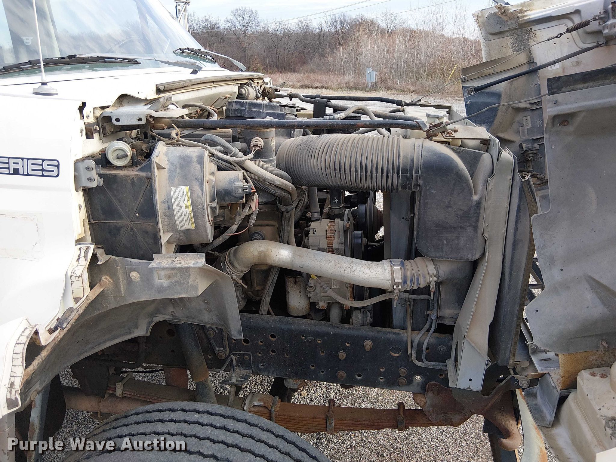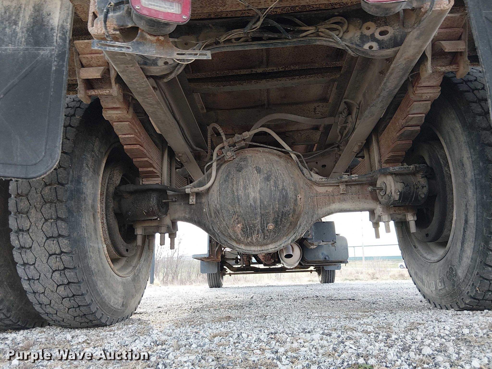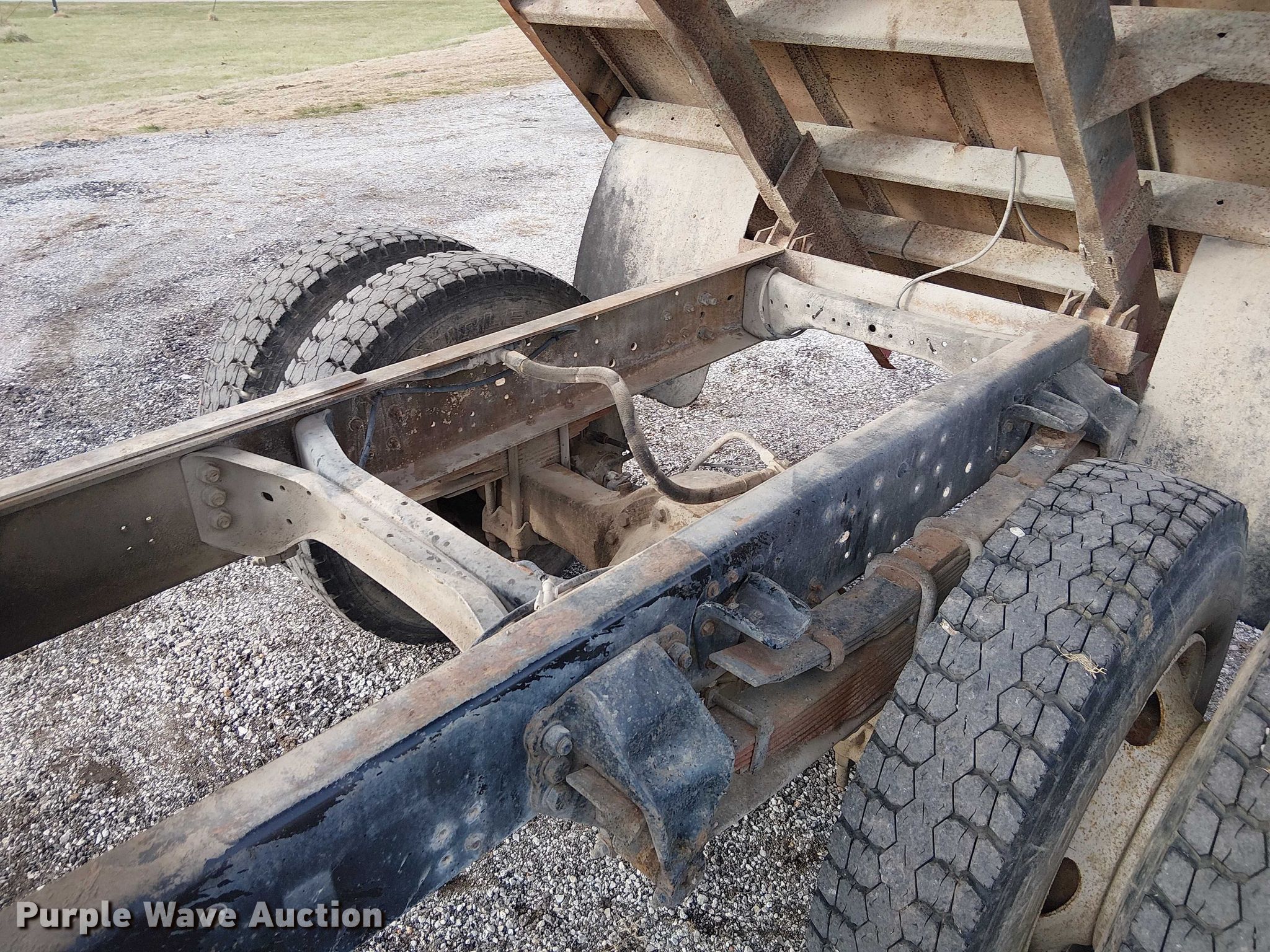 1998 Ford F800 dump flatbed truck. Miles: 80,374 on odometer, VIN: 1FDNF80C6WVA28115. Engine Cummins, Cylinders: 6, Fuel type: Diesel. Transmission Manual, Speed: 5. Chassis Axles: Single, Suspension: Spring, Brakes: Air, PTO, GVWR: 26,000 lbs FAWR: 8,500 lbs, RAWR: 17,500 lbs. Interior AC, Heat. Features Bed Dump flatbed, Side height: 25", Bed type: Steel, Ram: Single. Tires Size: 10R22.5. Notes Dash warning indicator: Brake. Missouri title. Title distribution may be delayed up to 14 days from verification of funds. Smithville, MO 64089