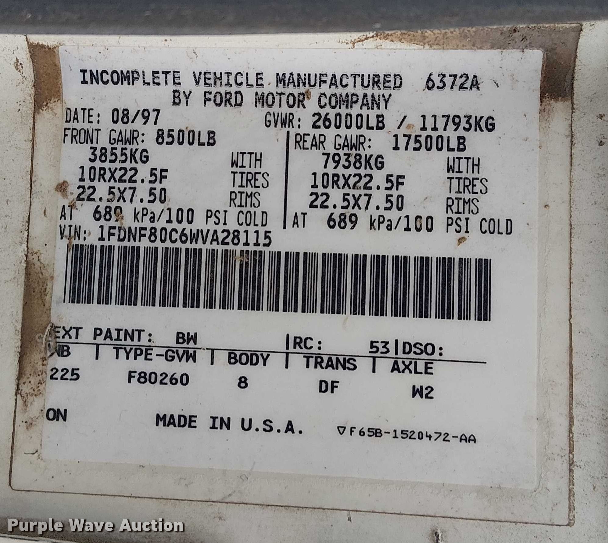 Purple Wave is selling a used Flat Bed Truck in Missouri. This item is a 1998 Ford F800 dump flatbed truck with the following: Miles: 80,374 on odometer, VIN: 1FDNF80C6WVA28115