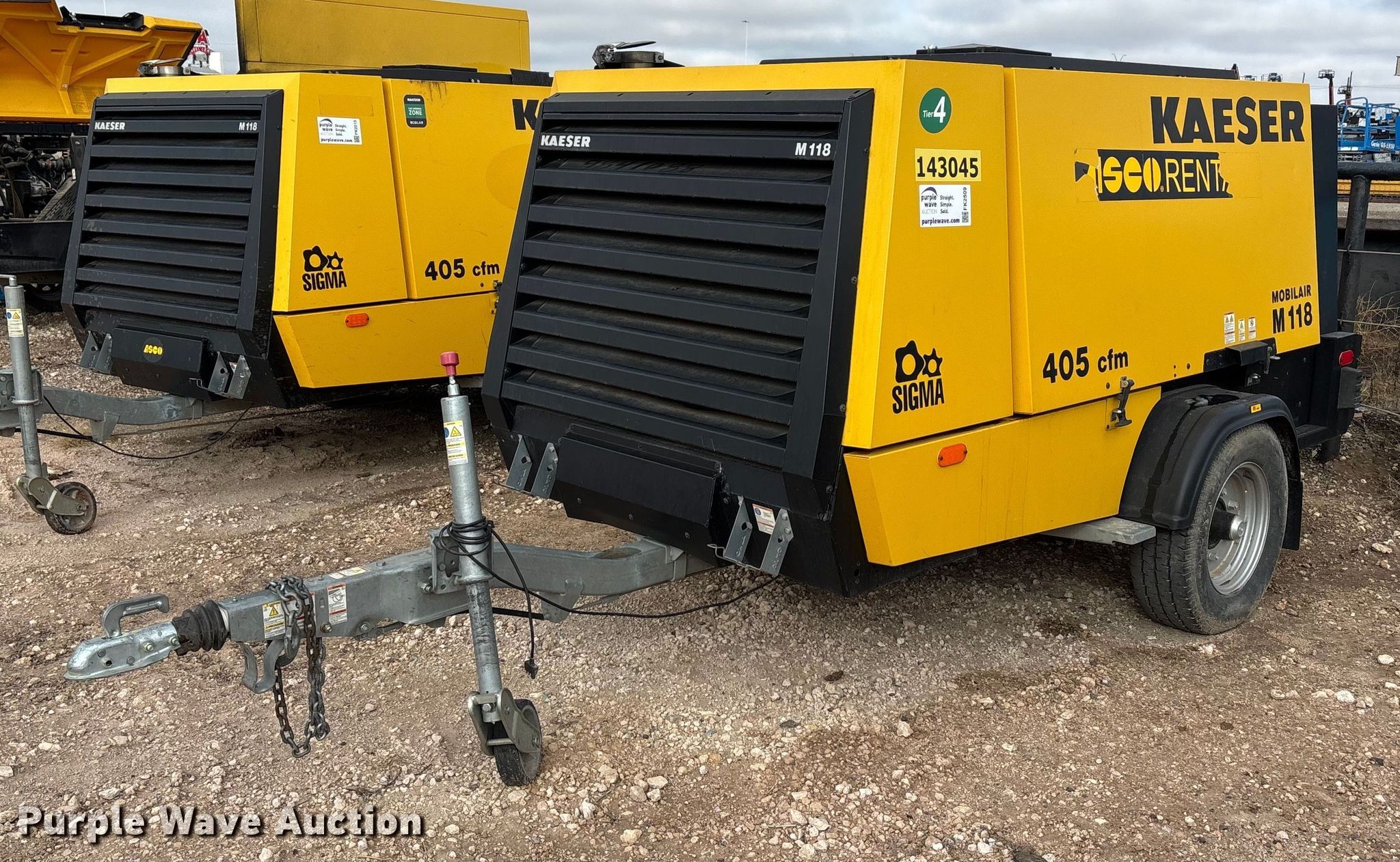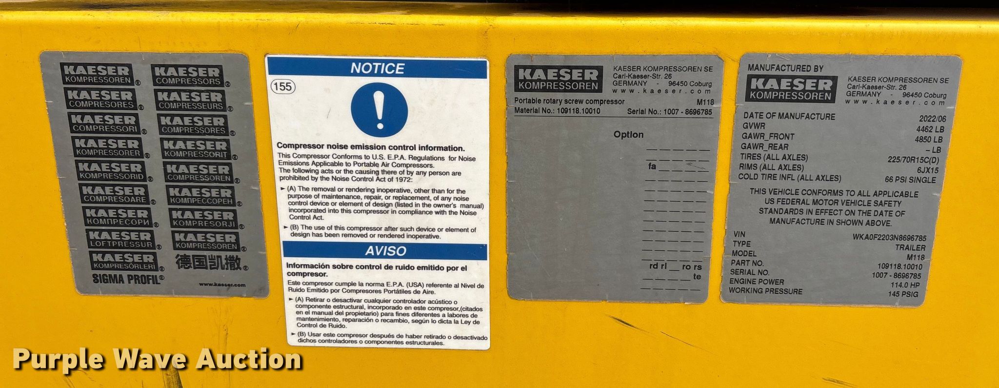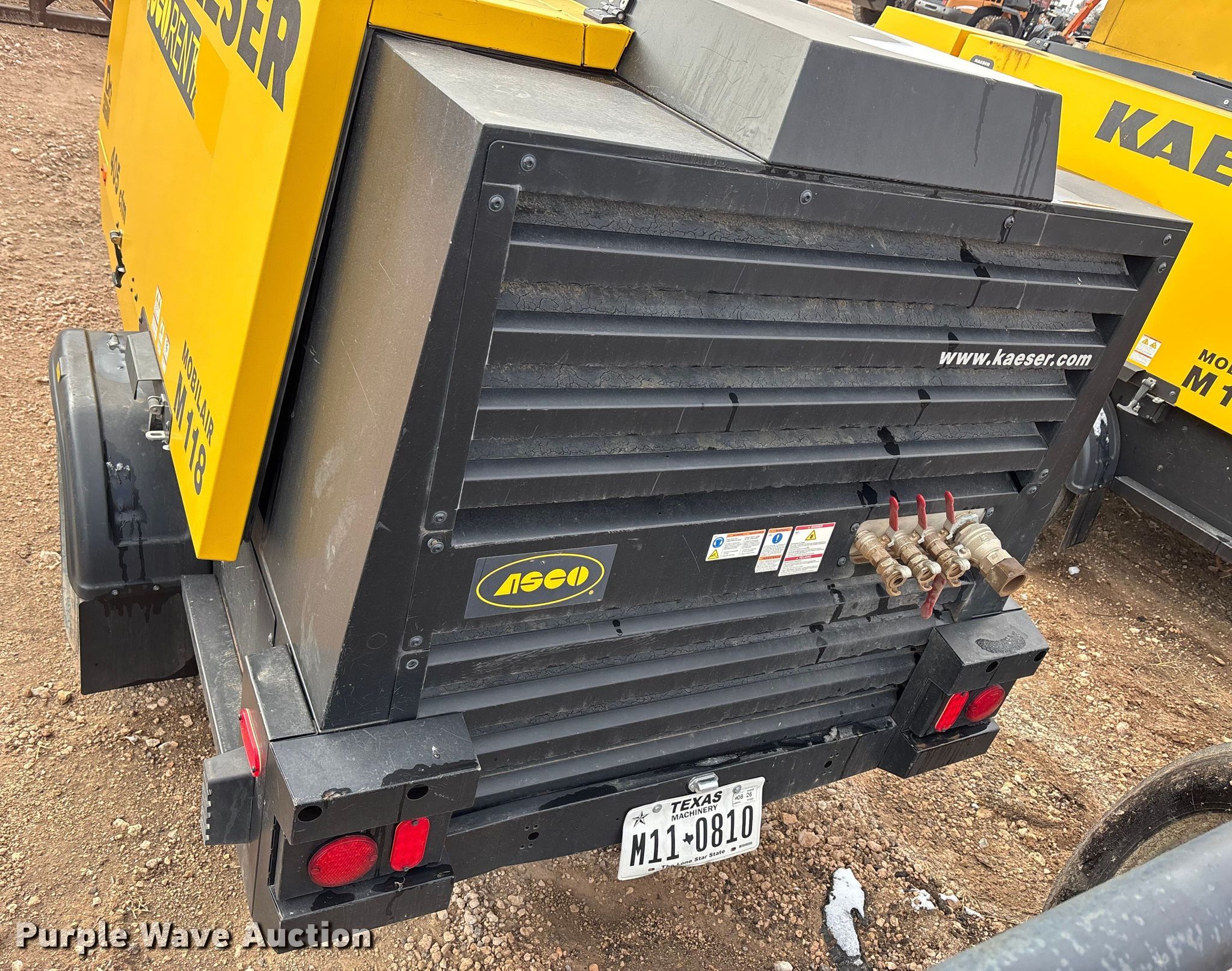 Purple Wave is selling a used Air Compressor in Texas. This item is a 2022 Kaeser Mobilair M118 air compressor with the following: Hours: 1,609 on meter, VIN: WKA0F2203N8696785, Unit #: 143045