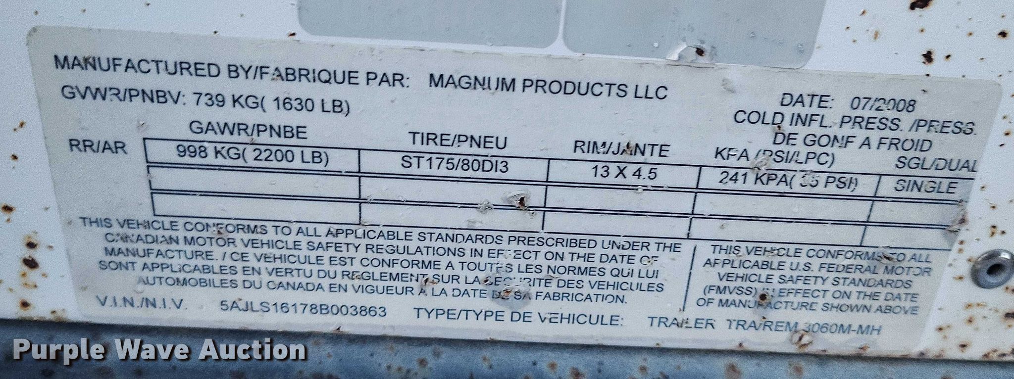 Purple Wave is selling a used Light Plant in Colorado. This item is a 2008 Magnum light plant with the following: Hours: 3,702 on meter, VIN: 5AJLS16178B003863, Unit #: LT07
