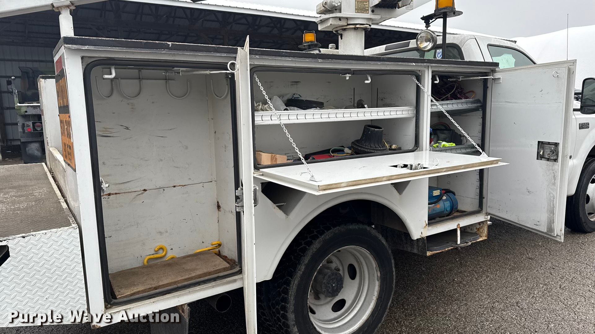 Purple Wave is selling a used Bucket Truck in Kentucky. This item is a 2003 Ford F550 bucket truck with the following: Miles: 110,844 on odometer, VIN: 1FDAF56F33EA36196